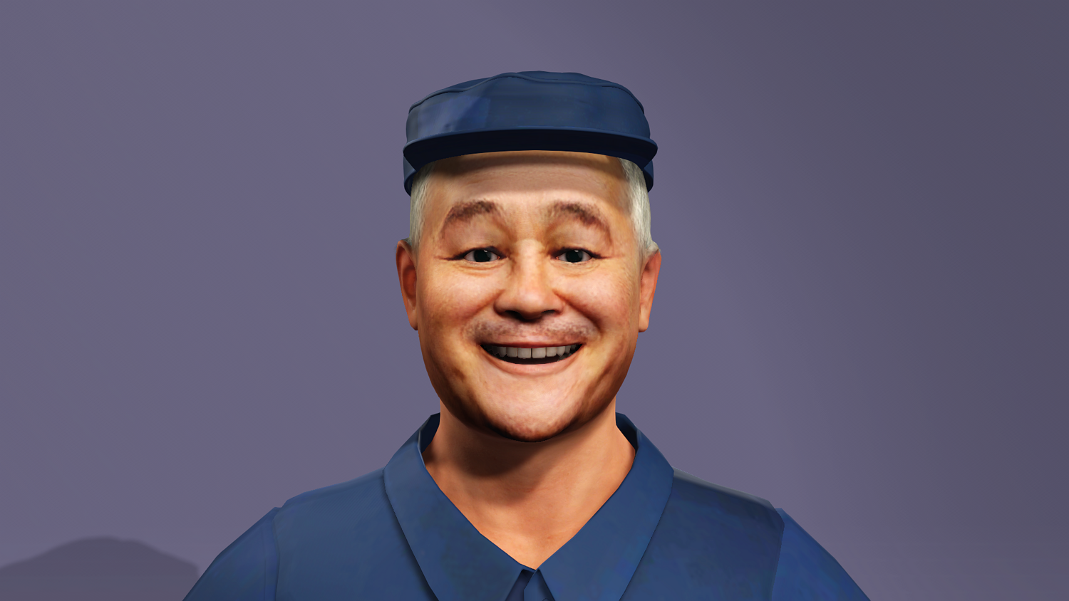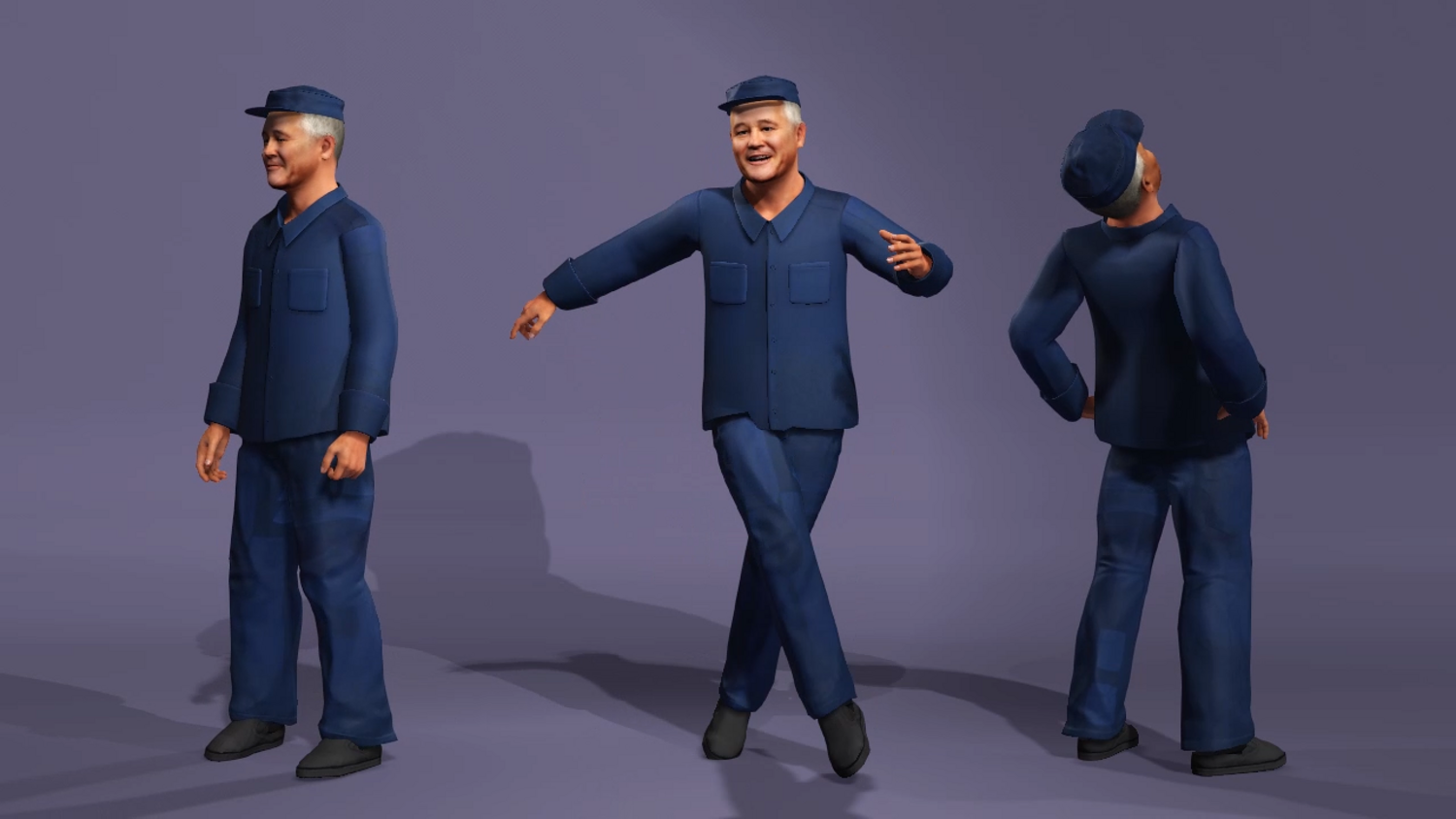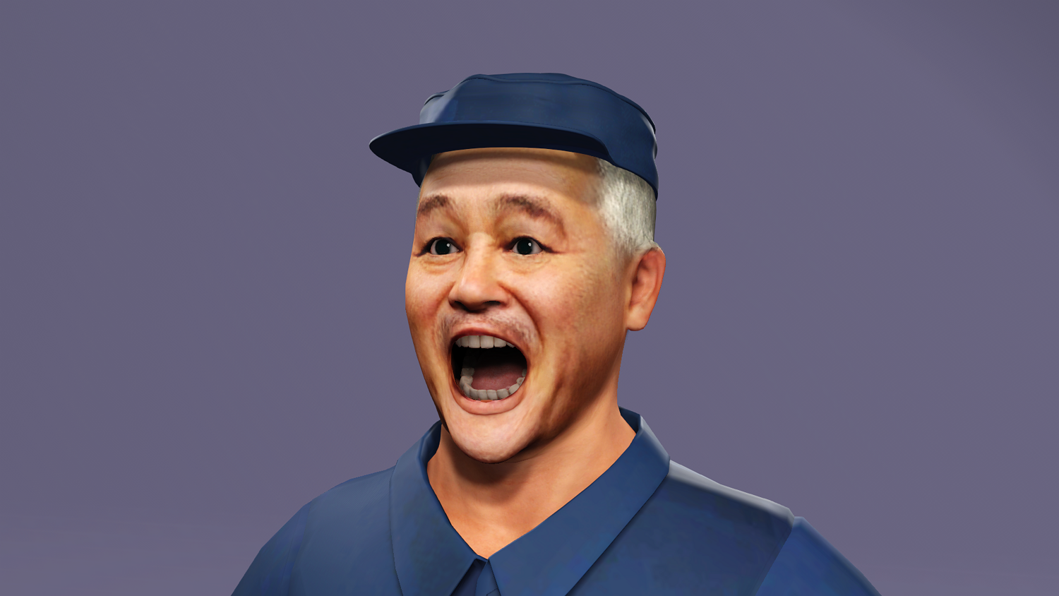This is a realistic 3D model of a comedy character, inspired by Zhao Benshan’s iconic look from the sketch “Yesterday, Today, Tomorrow.”