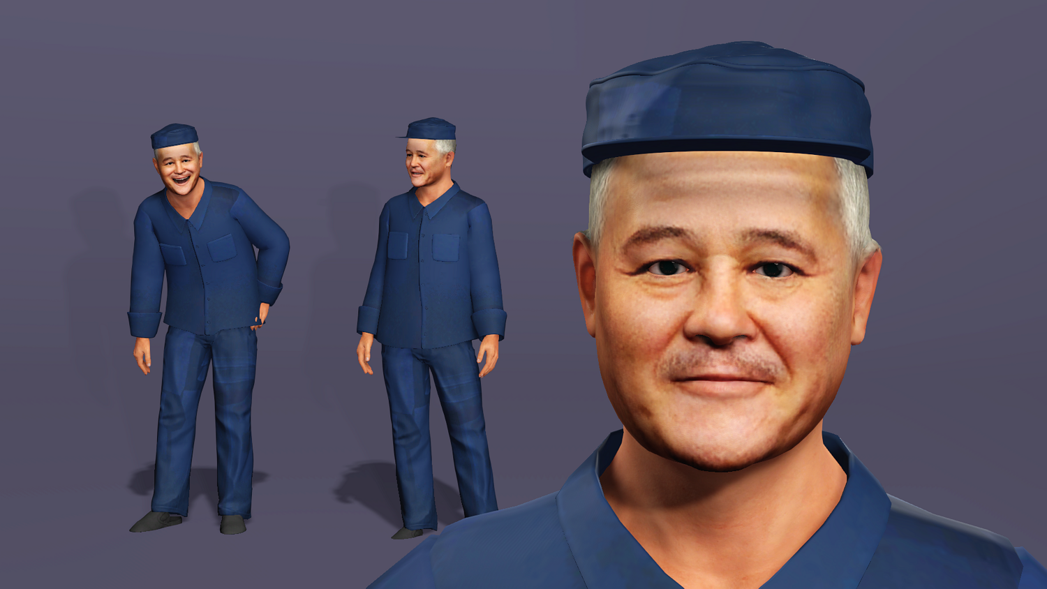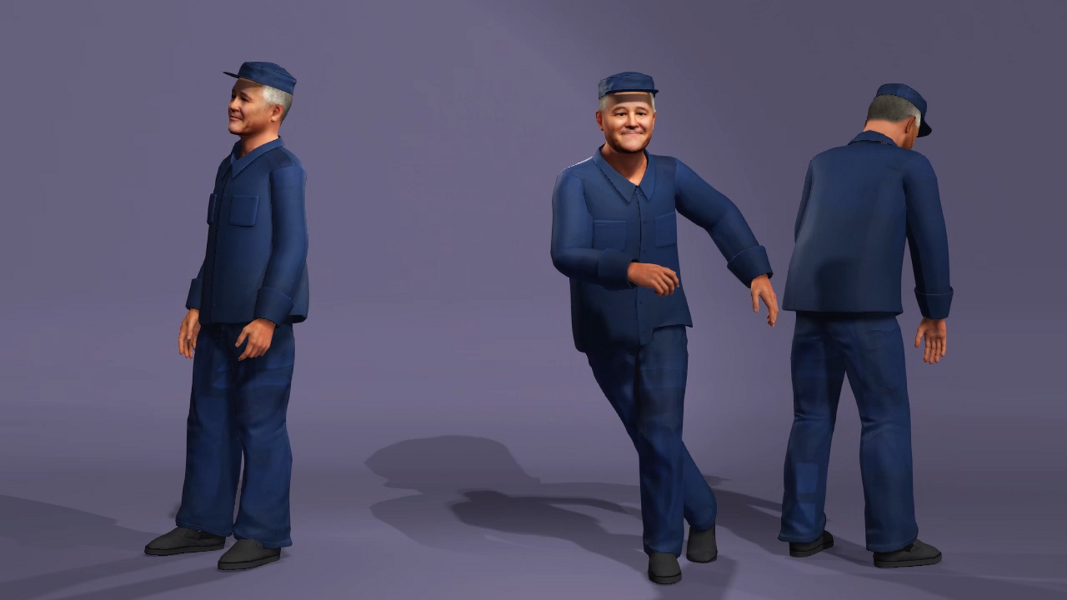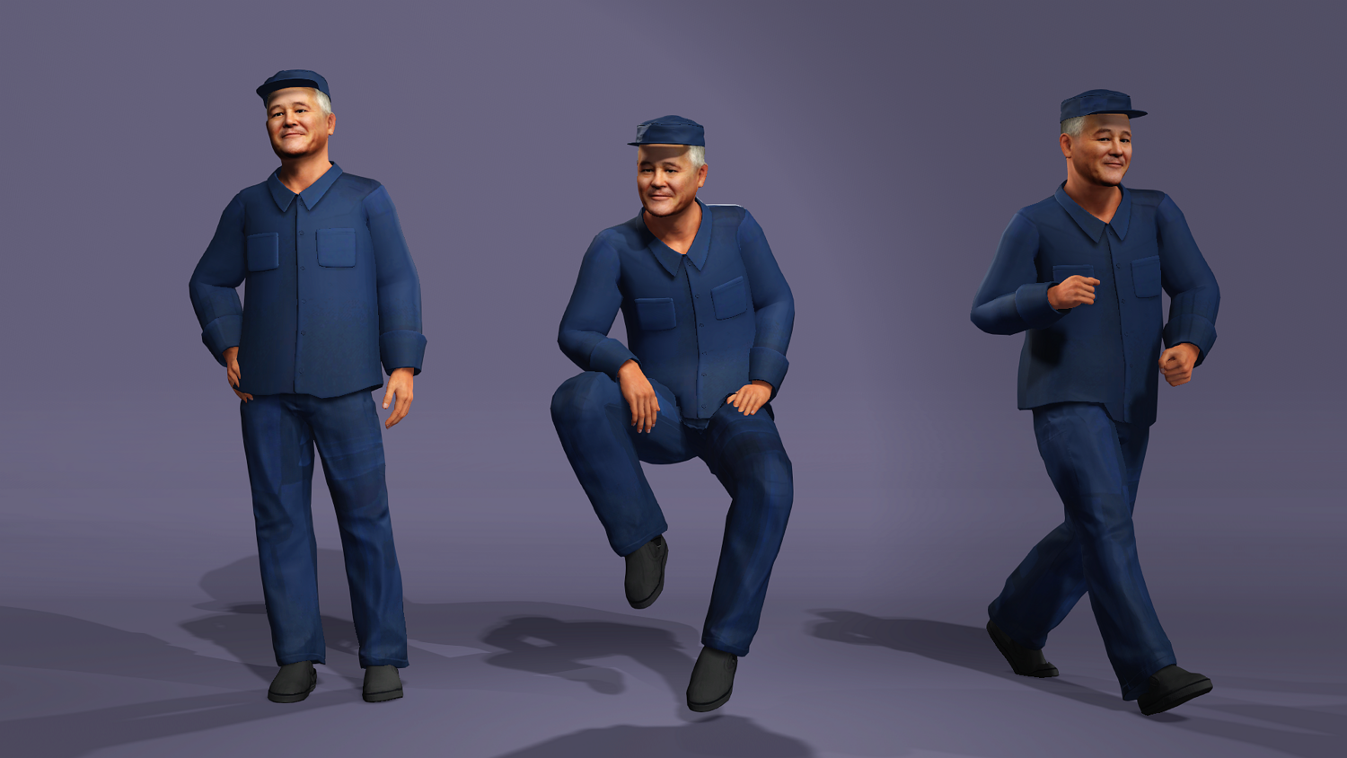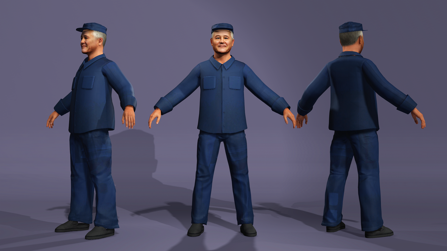 This is a realistic 3D model of a comedy character, inspired by Zhao Benshan’s iconic look from the sketch “Yesterday, Today, Tomorrow.”