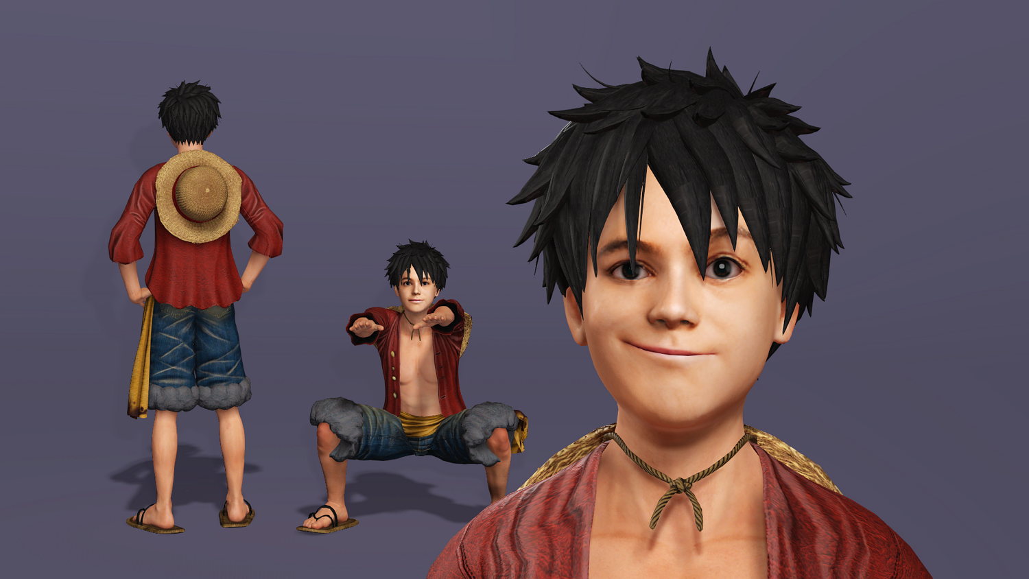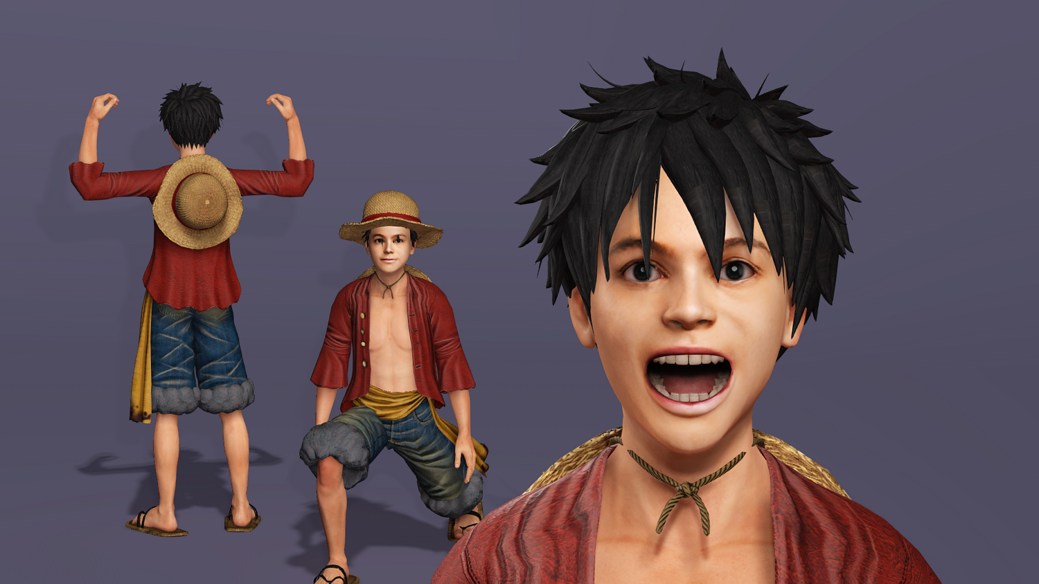 Created with high-resolution sculpting and PBR textures, it faithfully represents Luffy’s iconic hat, vibrant facial features, and lively physique.