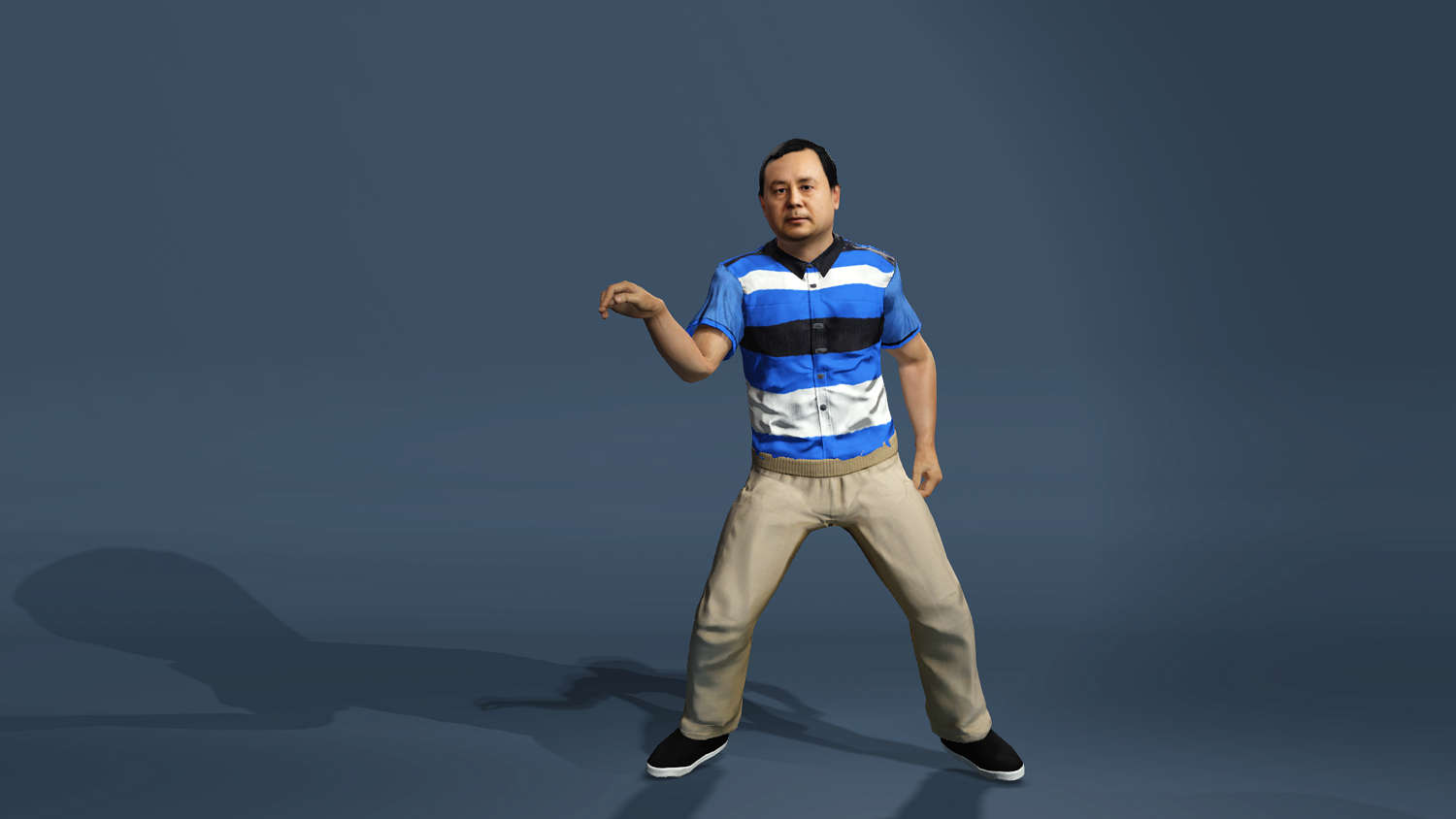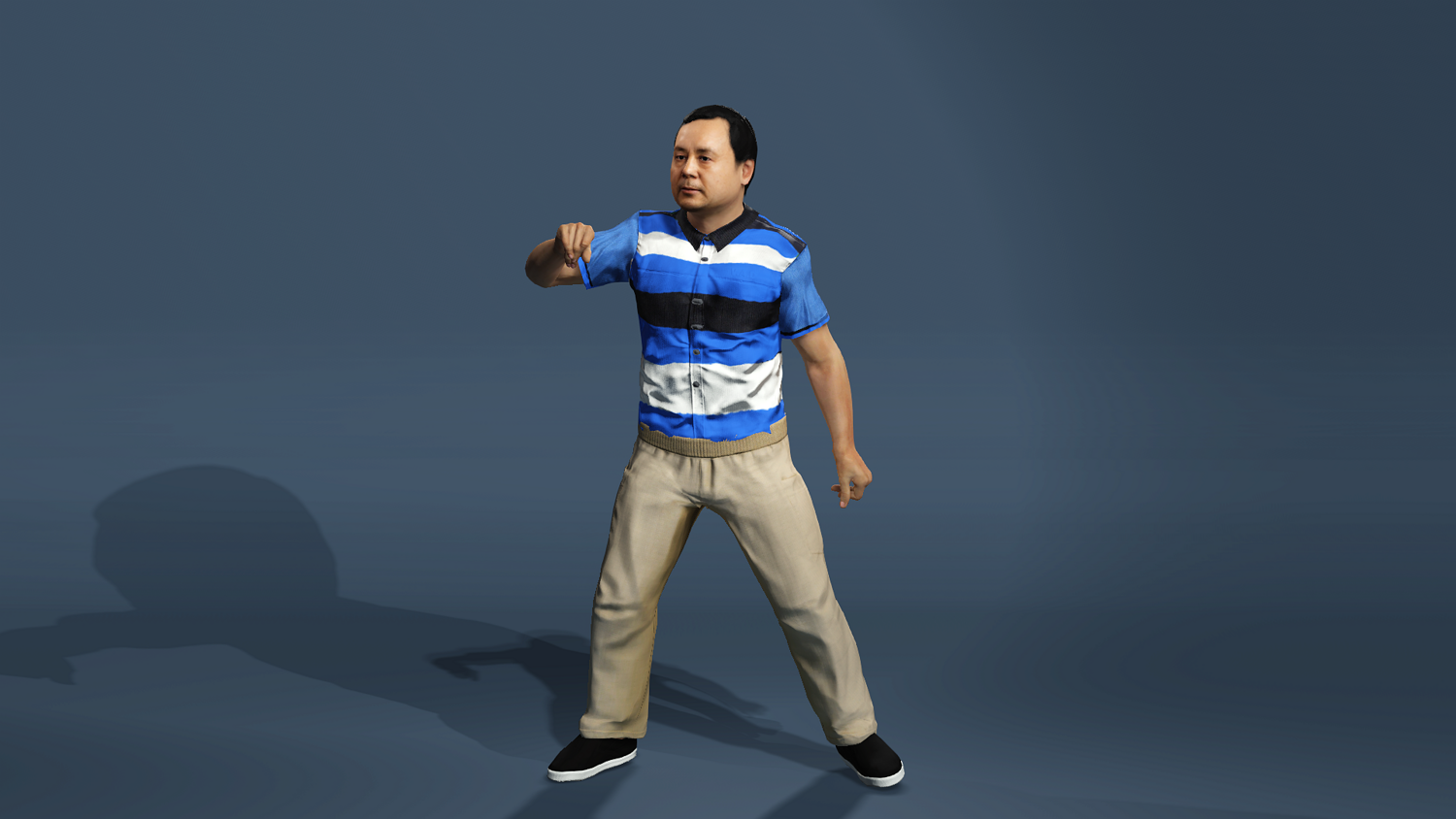 产品概述: 本产品提供基于马保国形象制作的高精度 3D 角色模型。模型具备合理的布线逻辑、完整的全身骨骼绑定及丰富的面部表情控制,并内置一段标志性的“闪电五连鞭”动画序列。