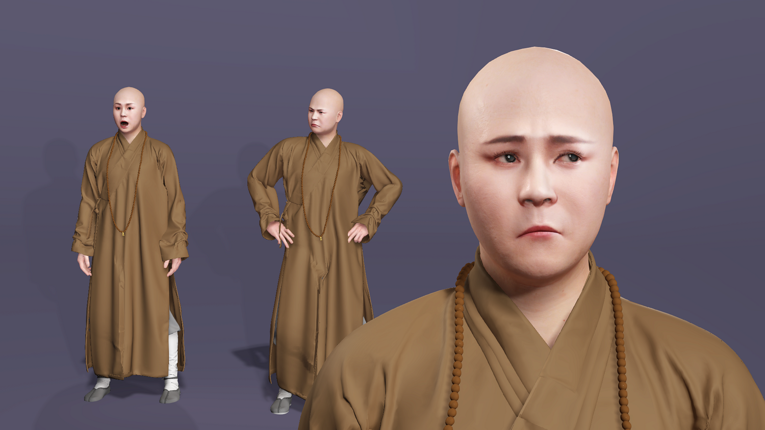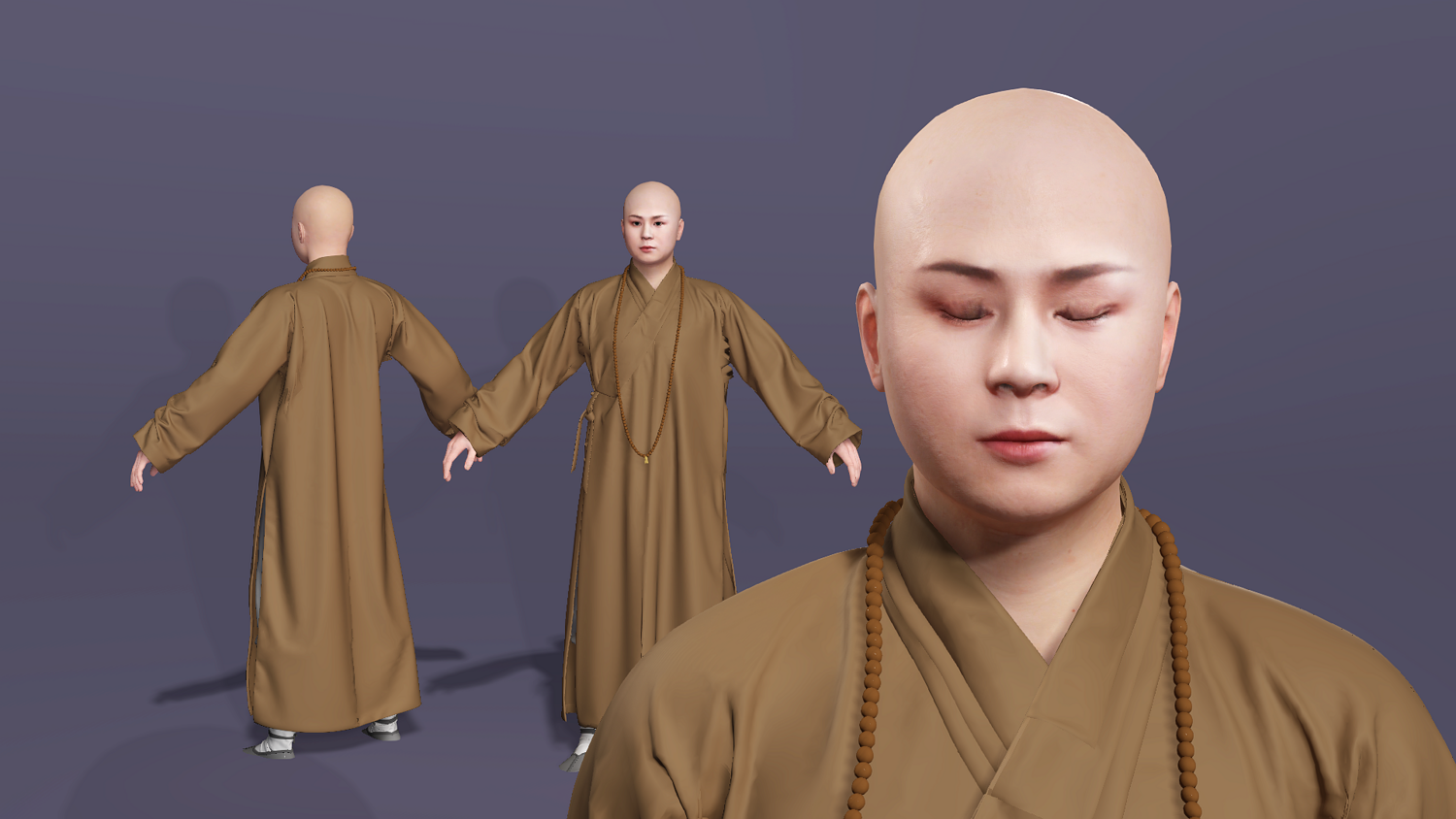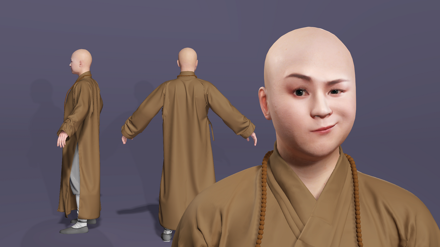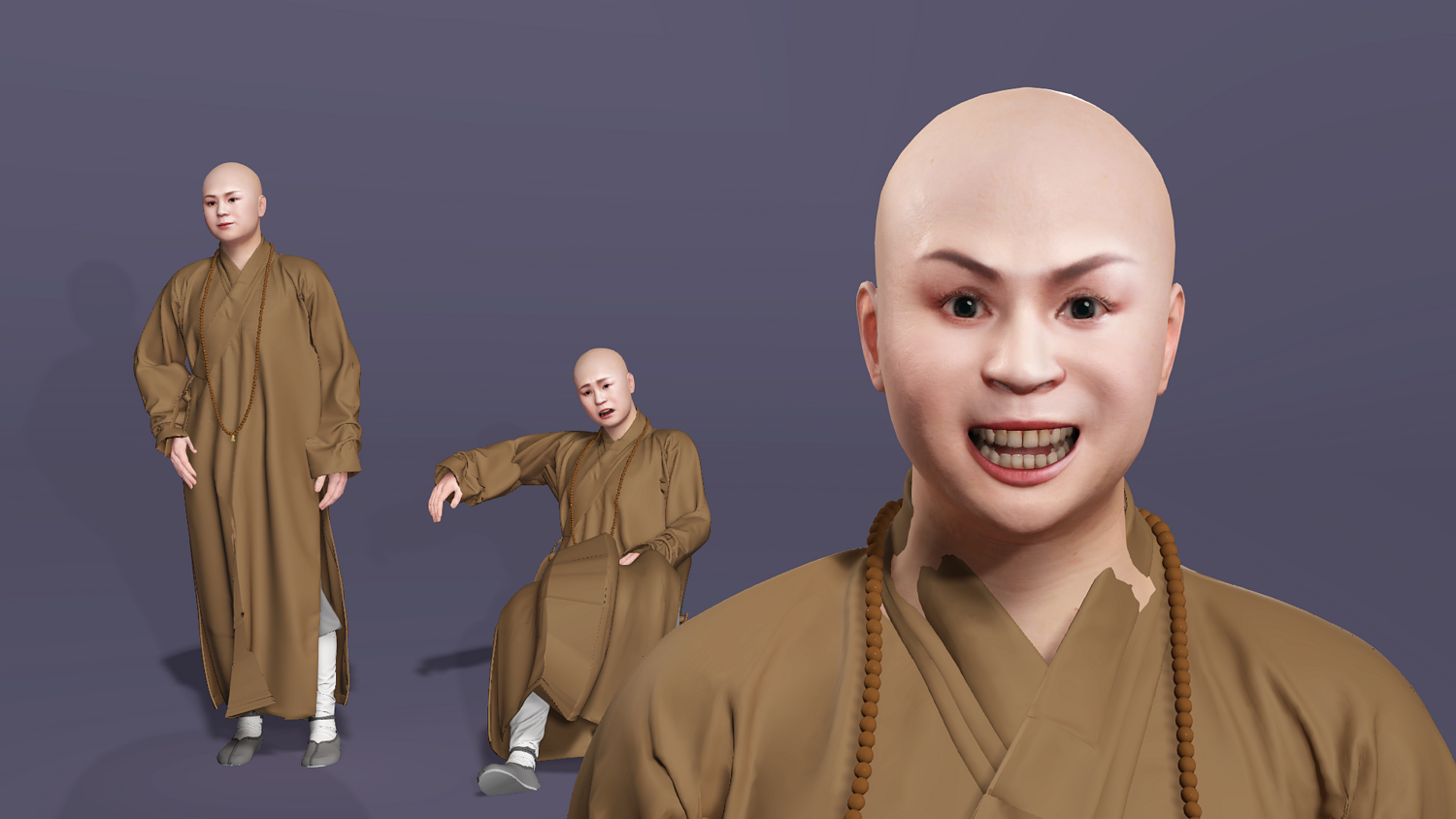 这是一个高质量写实的唐僧(玄奘)3D 模型。模型基于经典形象设计,拥有严谨的骨骼结构和专业的面部控制器,完美适配现代游戏开发与影视动画制作流程。