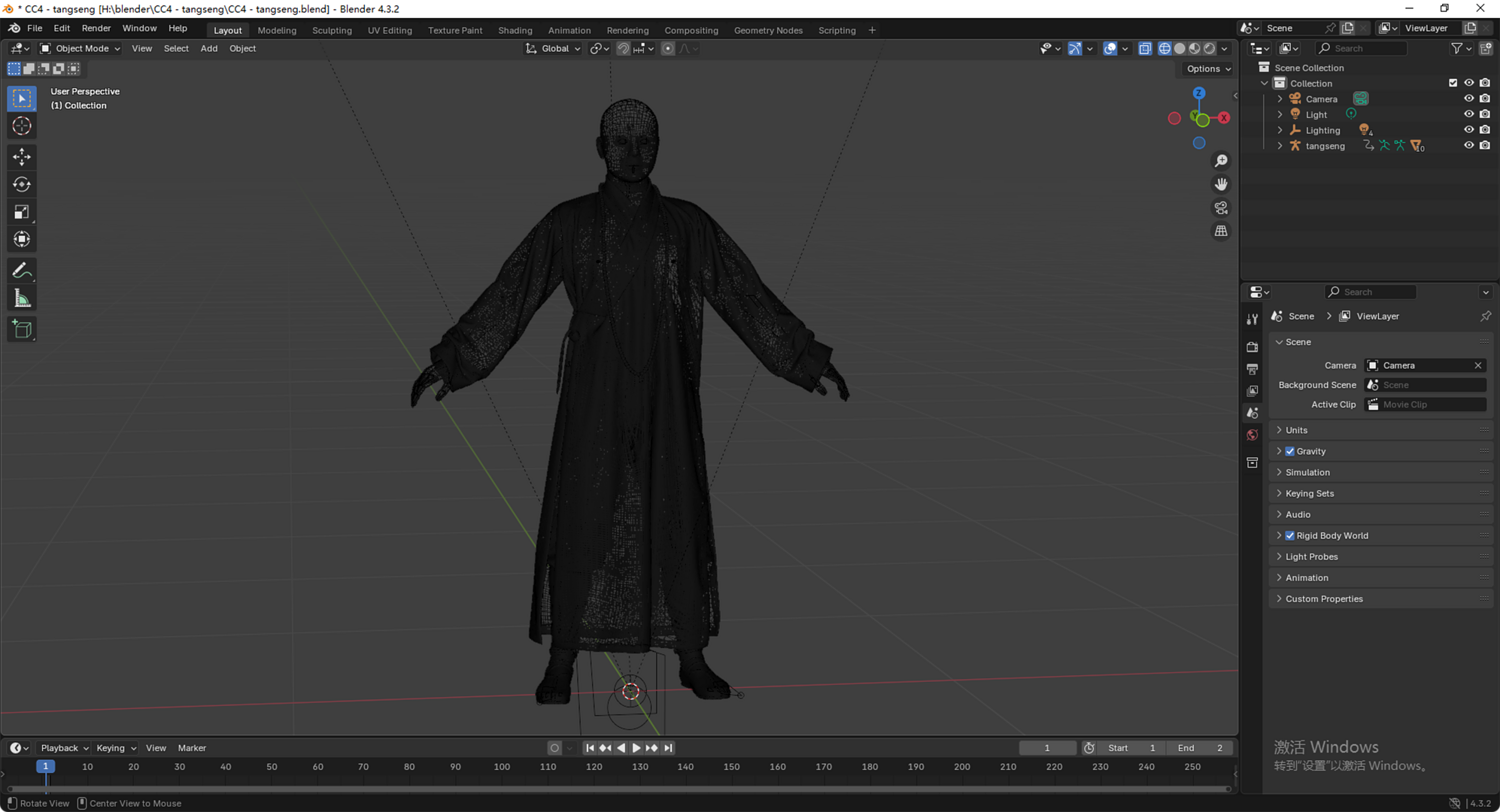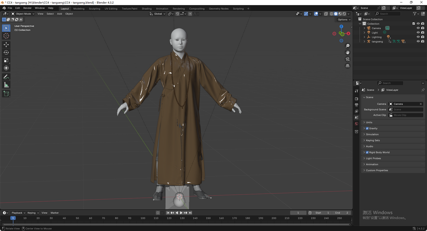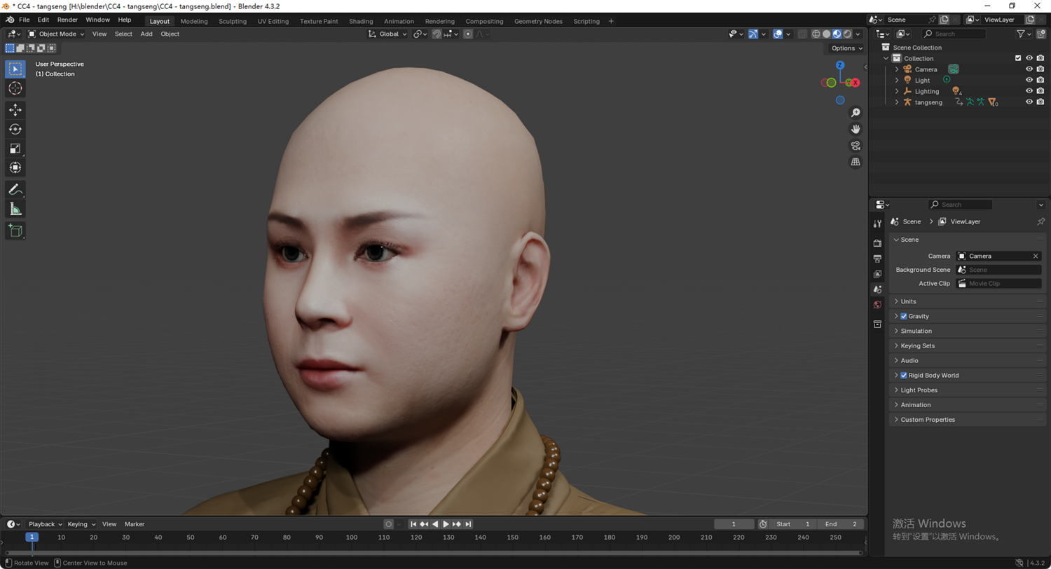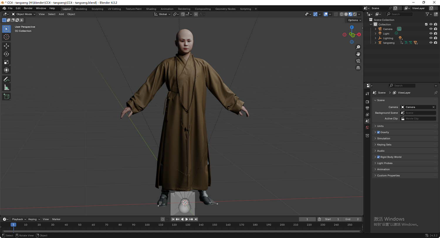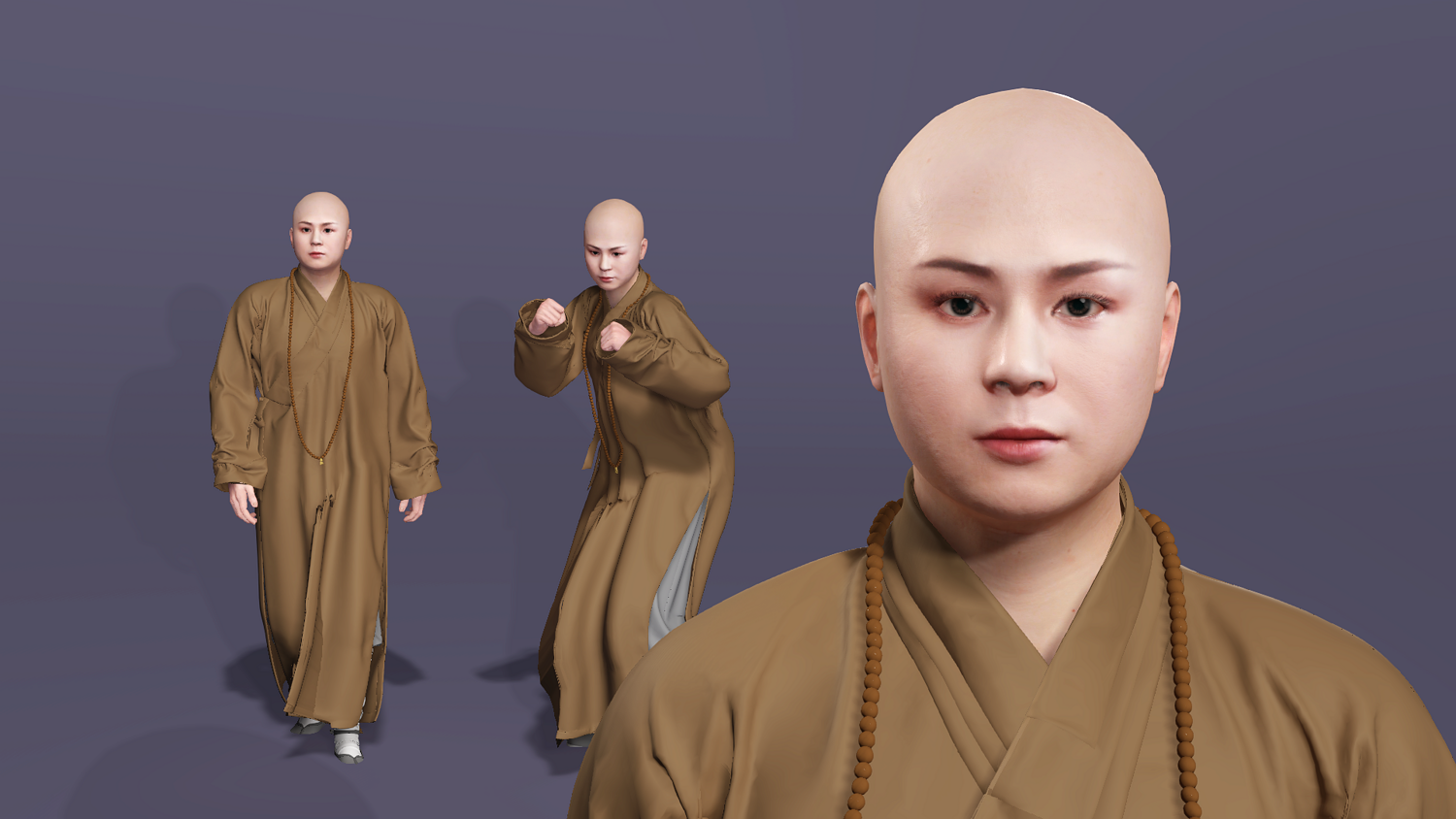 这是一个高质量写实的唐僧(玄奘)3D 模型。模型基于经典形象设计,拥有严谨的骨骼结构和专业的面部控制器,完美适配现代游戏开发与影视动画制作流程。