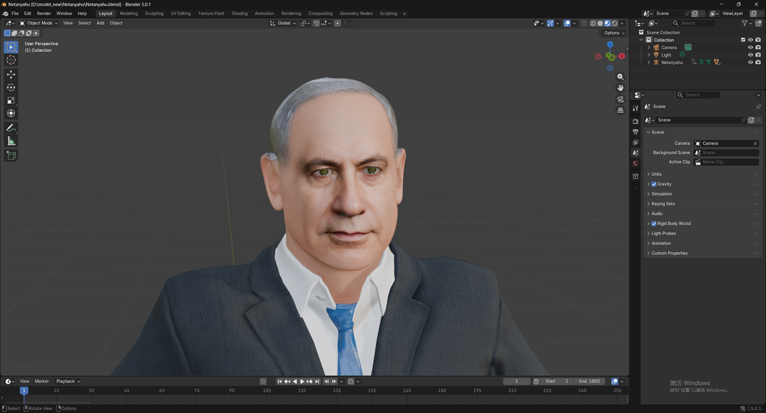 Realistic Benjamin Netanyahu 3D Model - Fully Rigged (Body & Face) | UE Compatible 以色列总理内塔尼亚胡