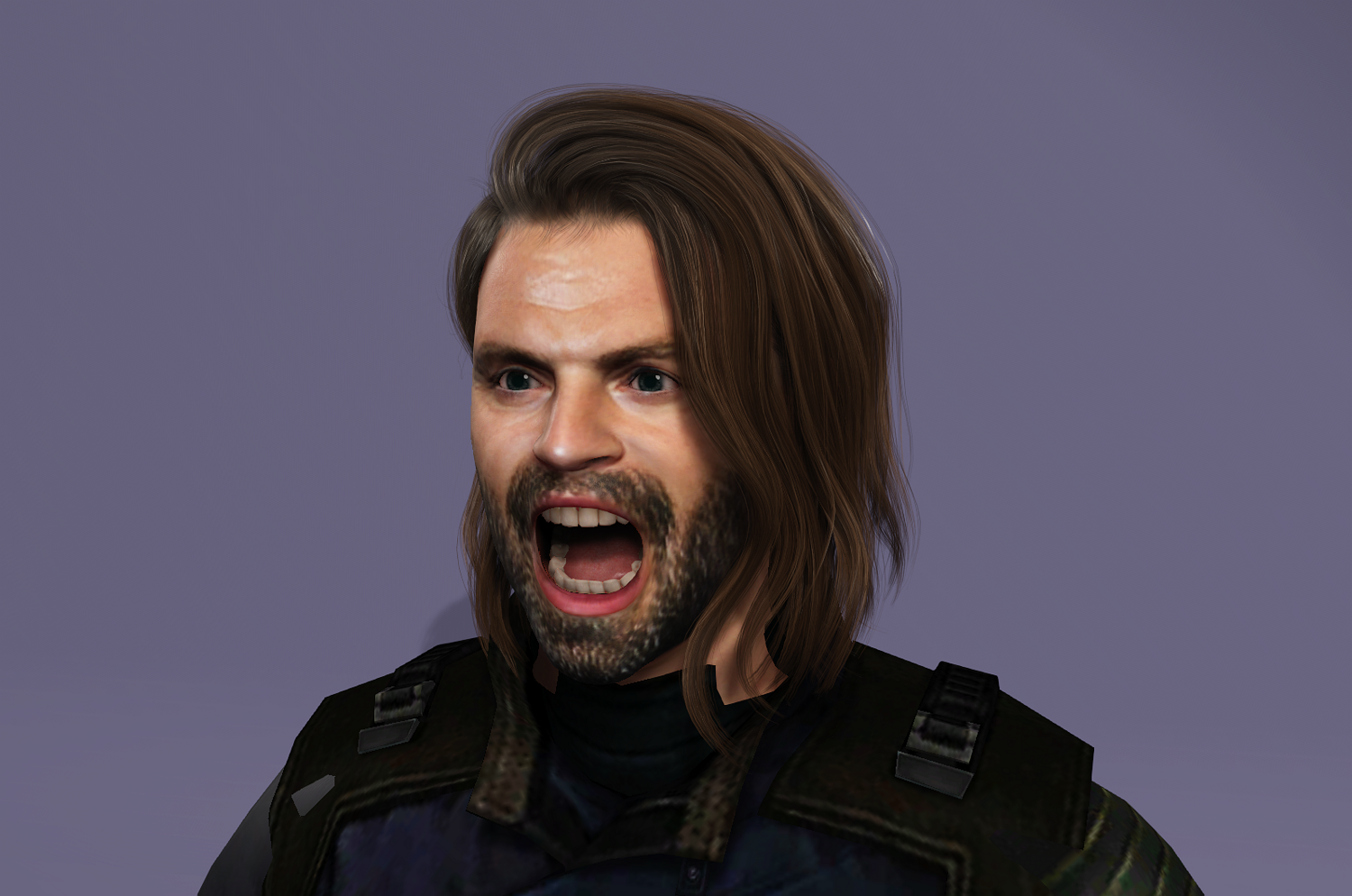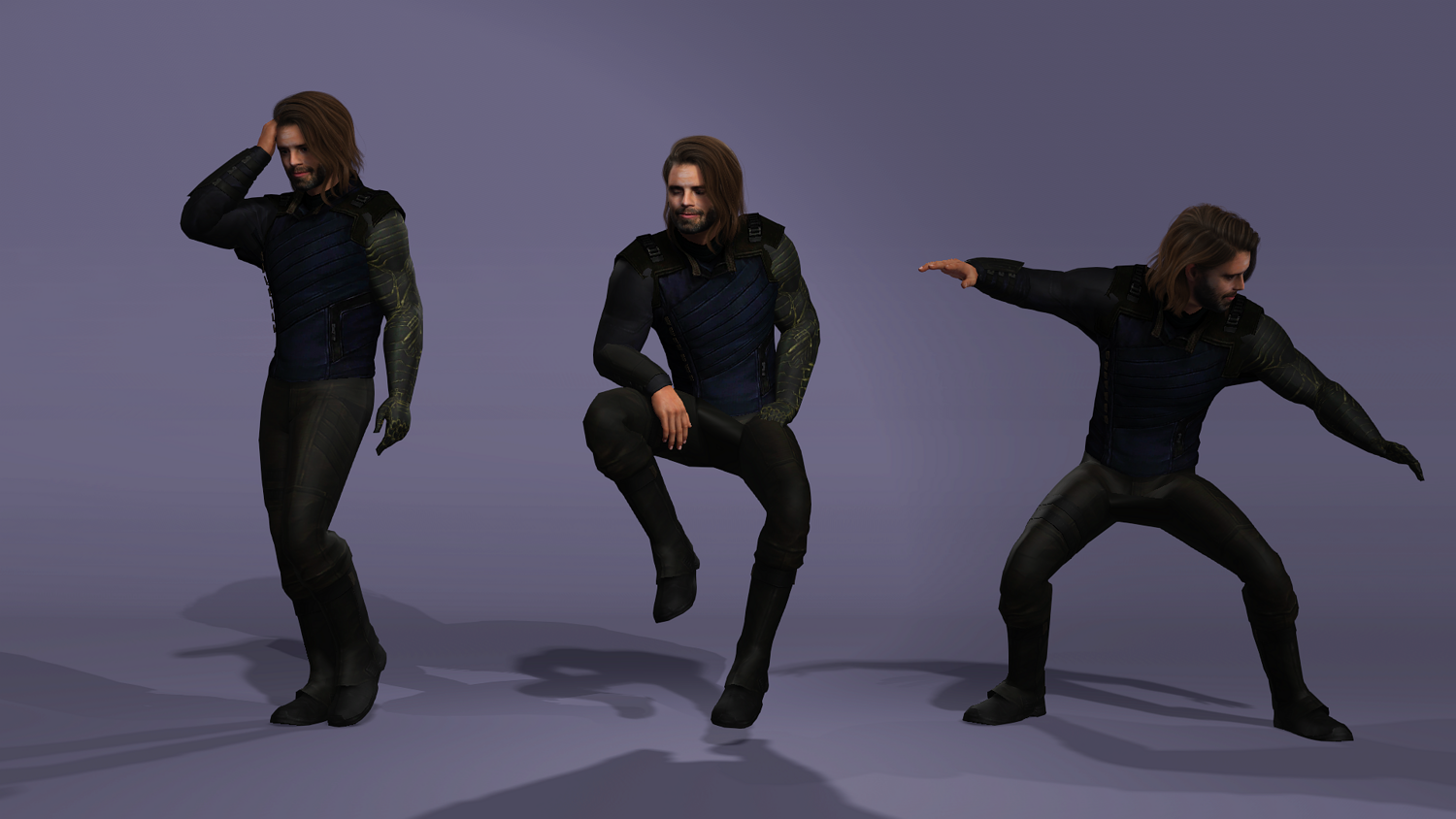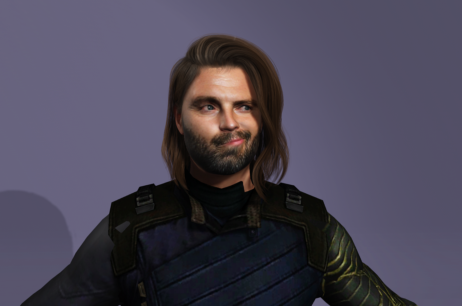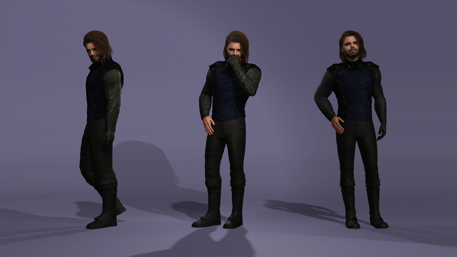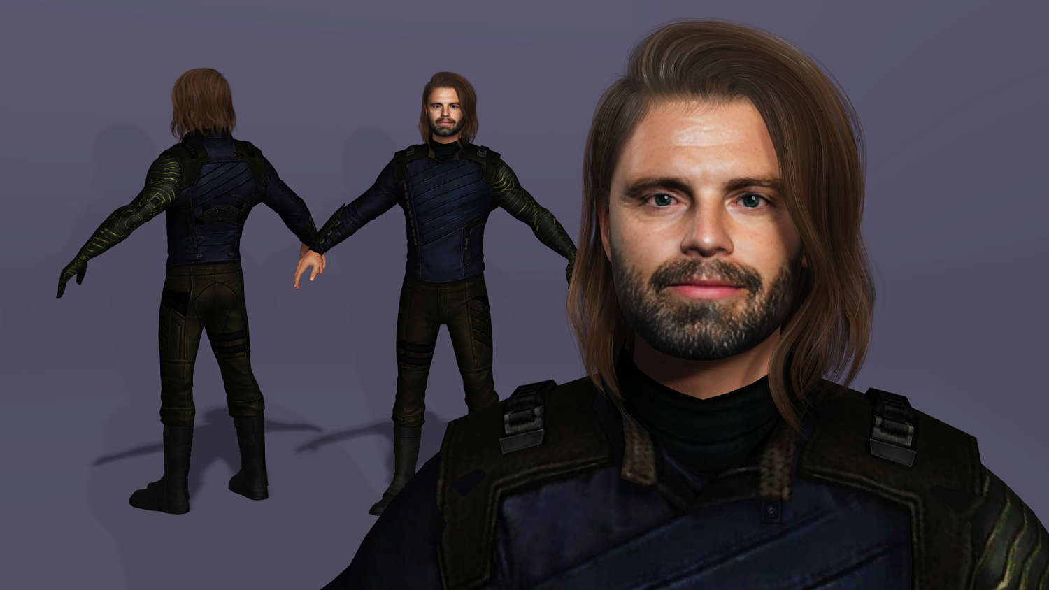 This is a realistic male superhero 3D model, inspired by Sebastian Stan’s portrayal of the Winter Soldier in Avengers 3.