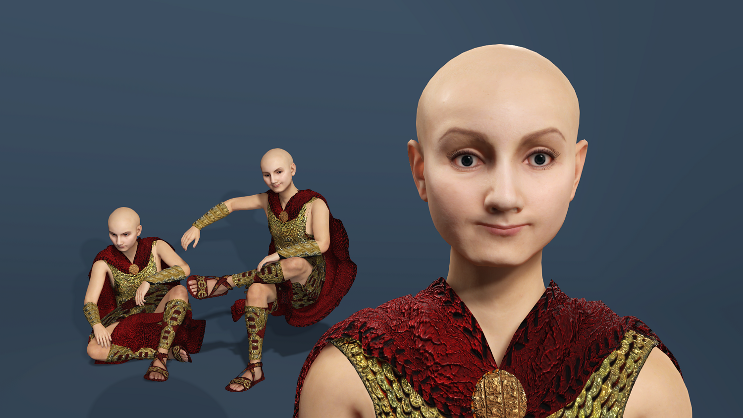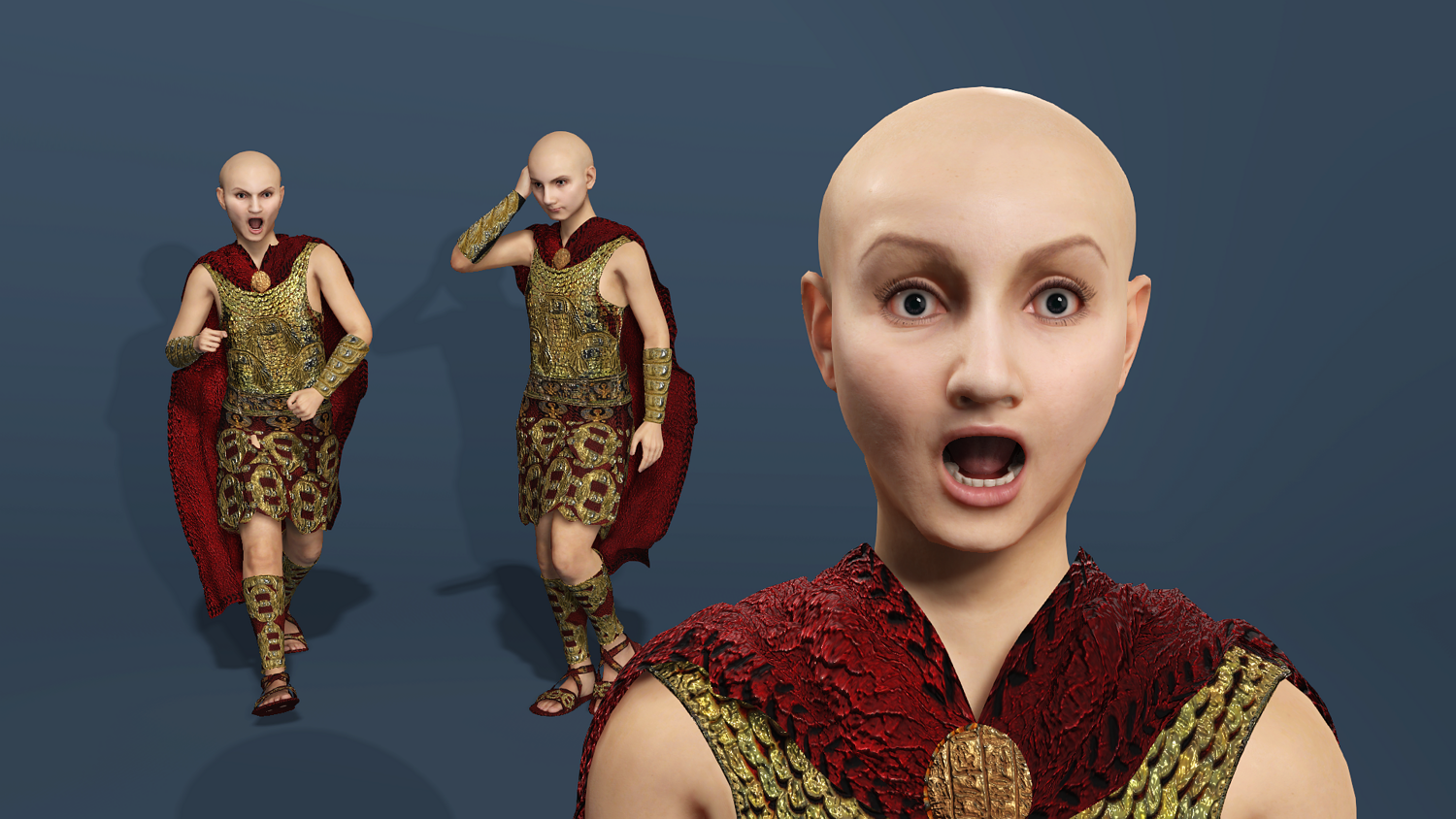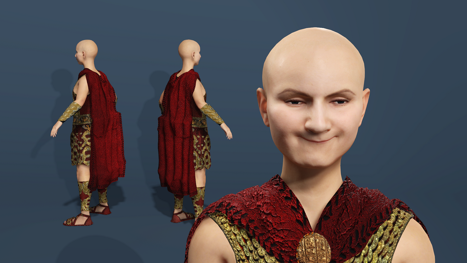 This is a high-quality boy character model blending ancient civilization with a fantasy flair. Adorned in ornate gold scale armor and a vibrant red cape, he exudes a noble and courageous spirit. Fully rigged for body and face, this model is ready for high-impact 3D projects. Key Features: Professional Rigging: Features a complete skeletal system, ready for standard animations like walking and running, as well as complex combat poses. Vivid Facial Expressions: Includes detailed Morph Targets to easily express complex emotions like contemplation, surprise, and determination. Ornate Next-Gen Textures: 4K PBR textures provide realistic rendering of metallic scale armor, fabric cape textures, and lifelike skin. Compatible formats: FBX,blender. Applications: games, animation, VR, AR, education. Optimized: lightweight and efficient for real-time rendering. Notes: Does not include pre-made animations; fully customizable. Materials, clothing, and expressions are customizable.