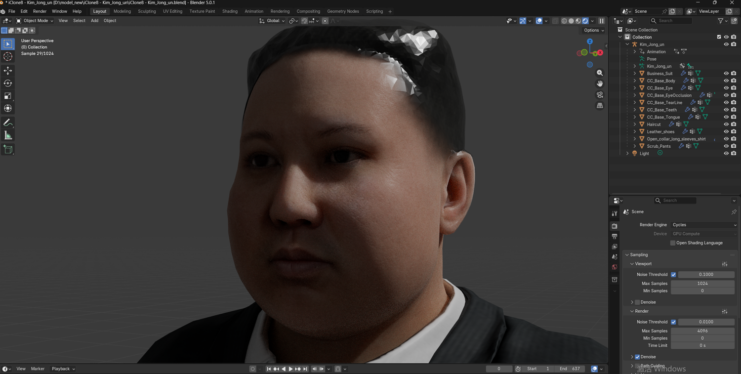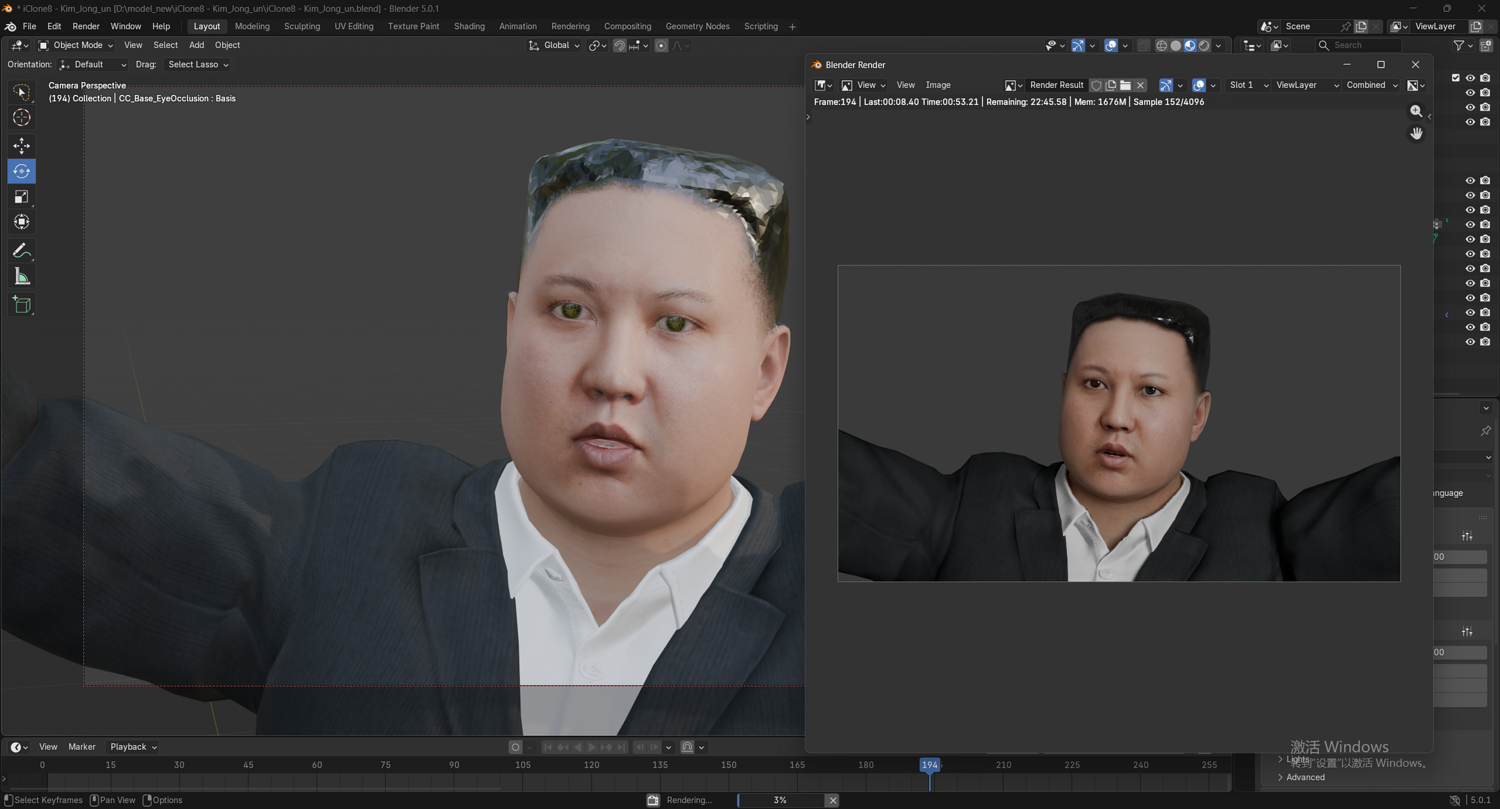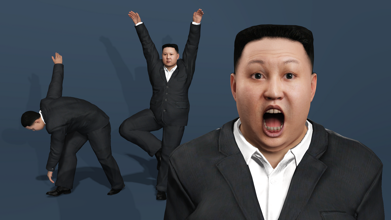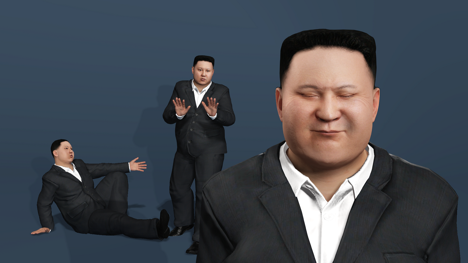 高精度写实金正恩(Kim Jong-un)西装3D模型。该资产具备完整的全身与面部绑定系统,可直接投入动画渲染、影视预演与游戏开发管线。