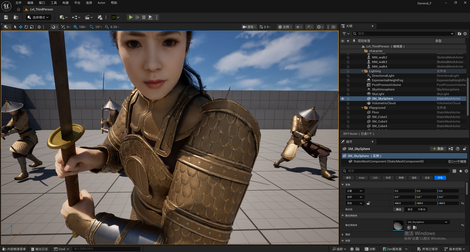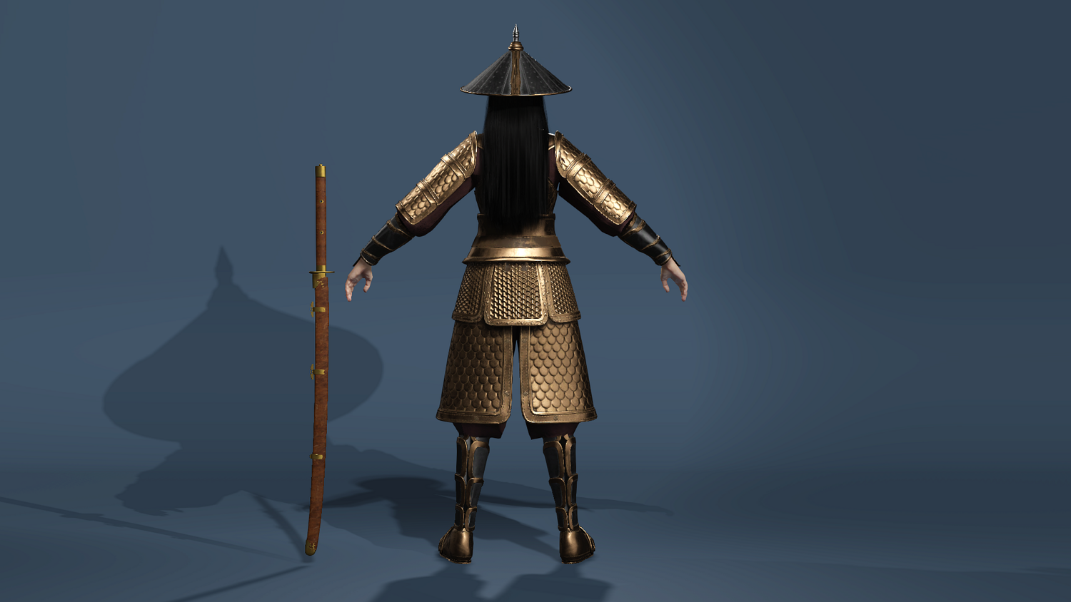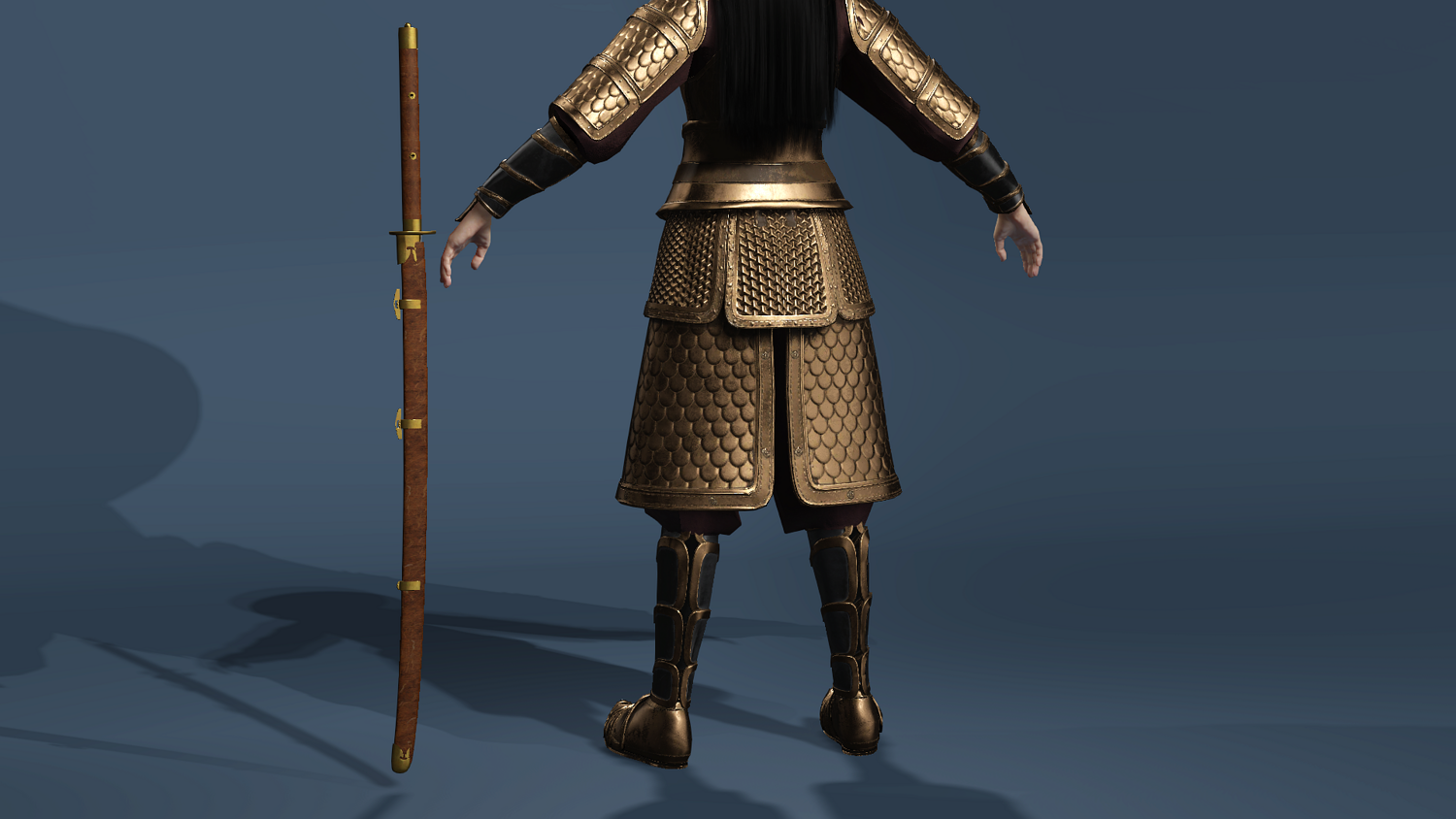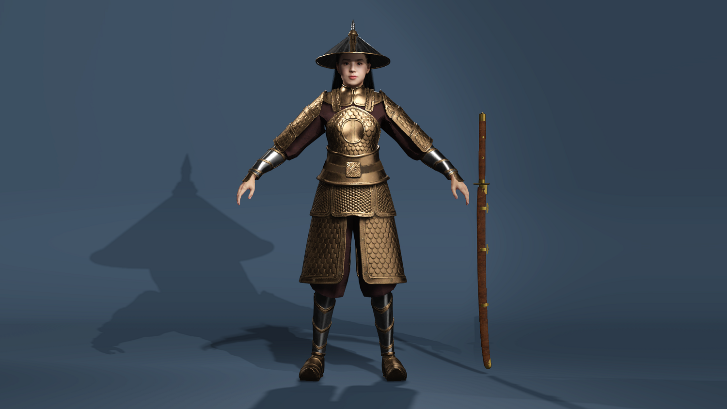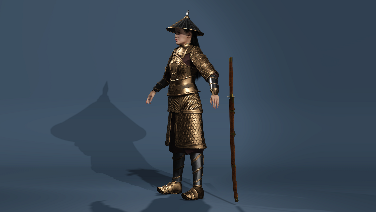Ancient Female General Golden Armor - UE5 ready - Sword 古代女将军陈丽君(金鳞甲)- 适配UE5骨骼 - 含刀术动作集