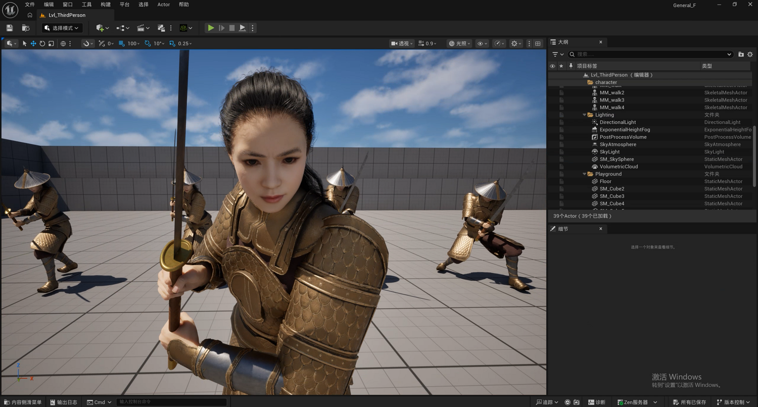 Within the UE5 project, the character is rigged to the standard UE5 skeleton and supports WASD player control. A comprehensive sword (Dao) animation set is included for immediate use.