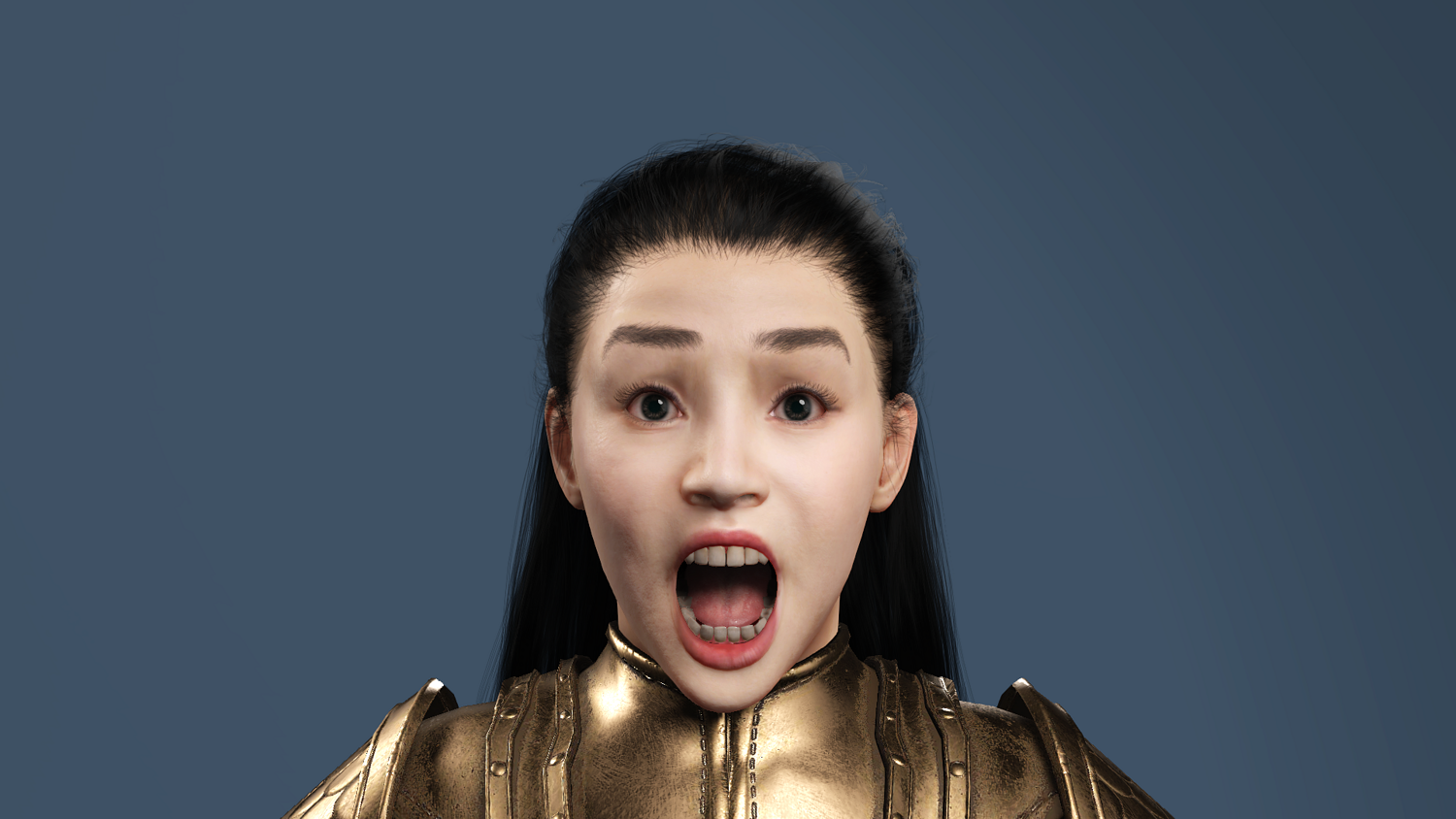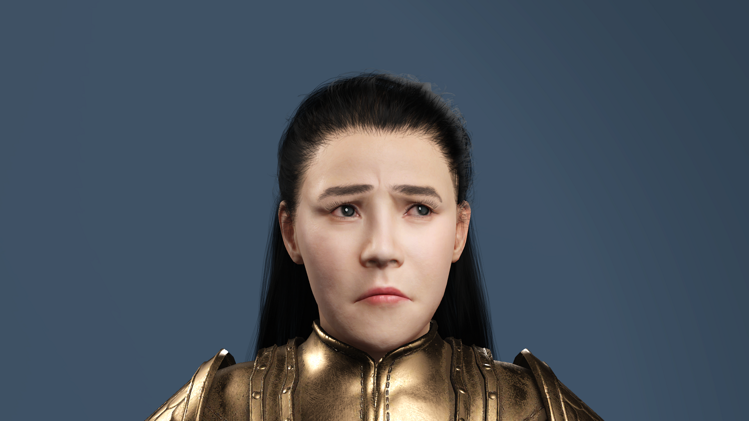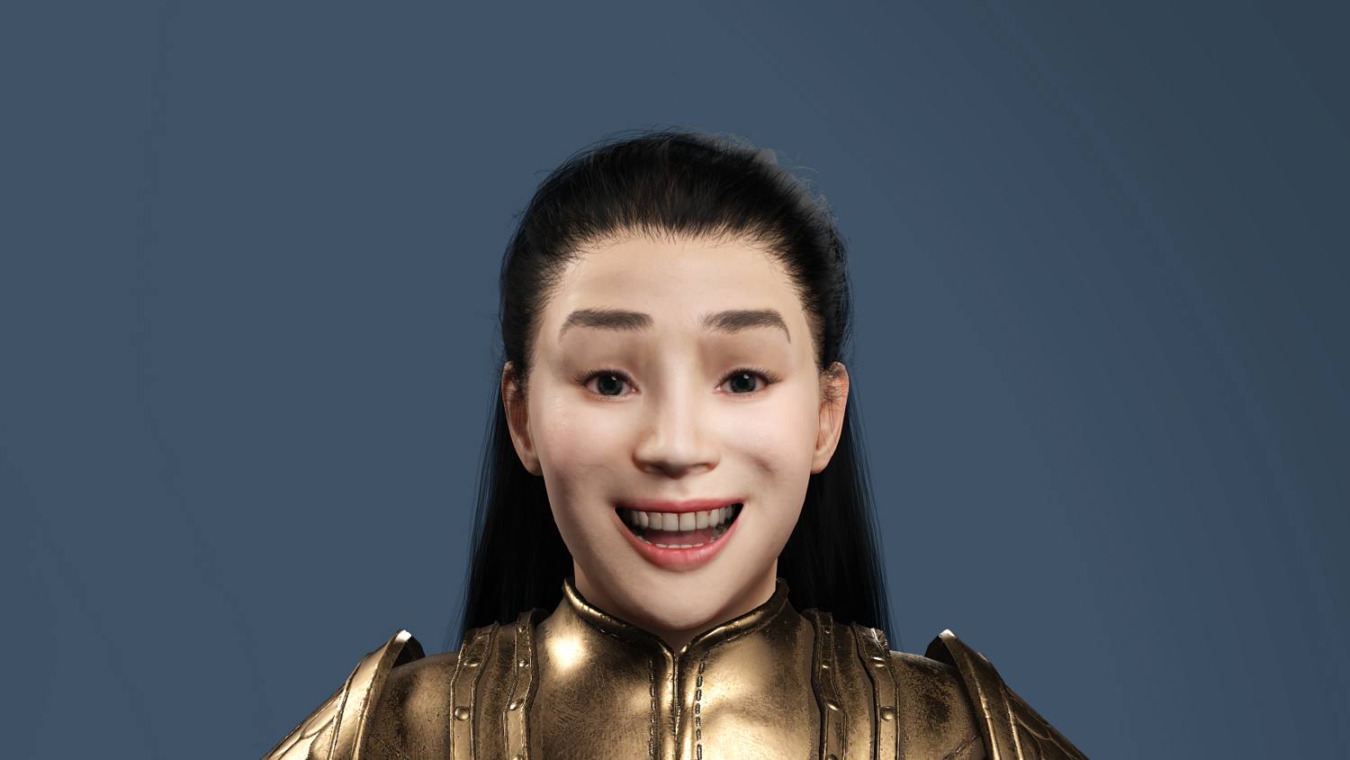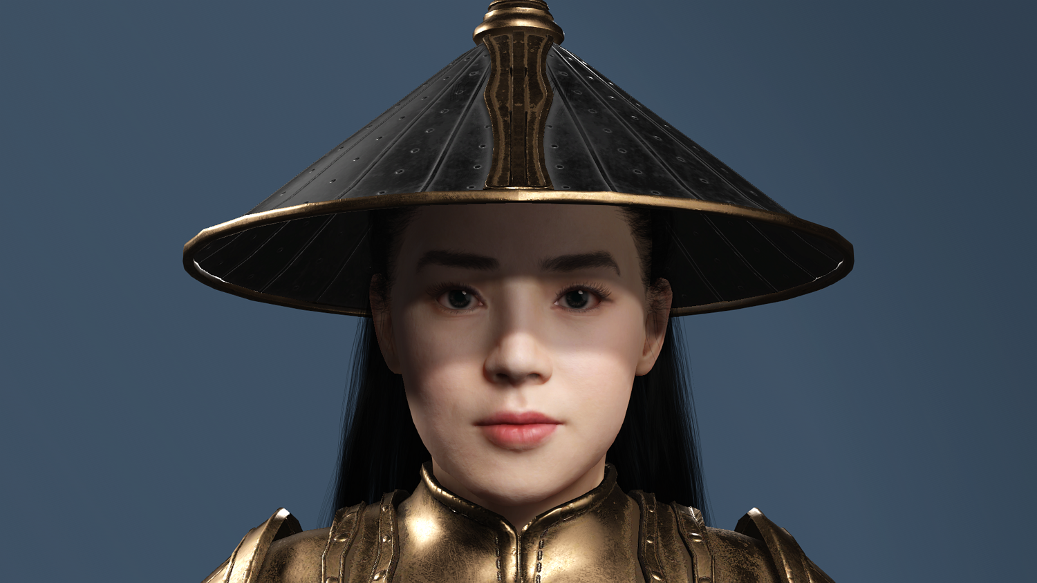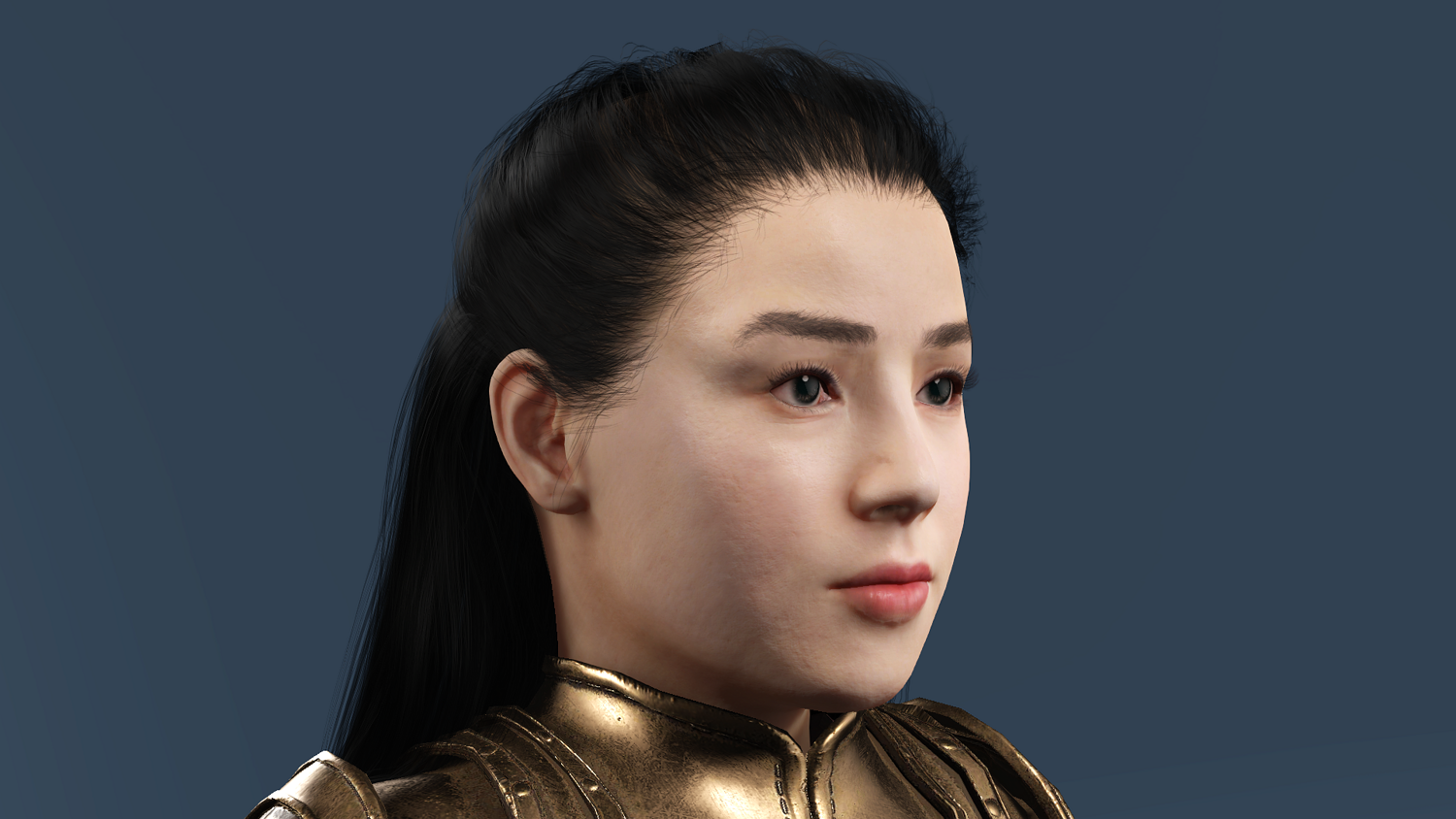 This 3D model features an ancient Chinese female general in golden scale armor, fully optimized for Unreal Engine 5 (UE5).