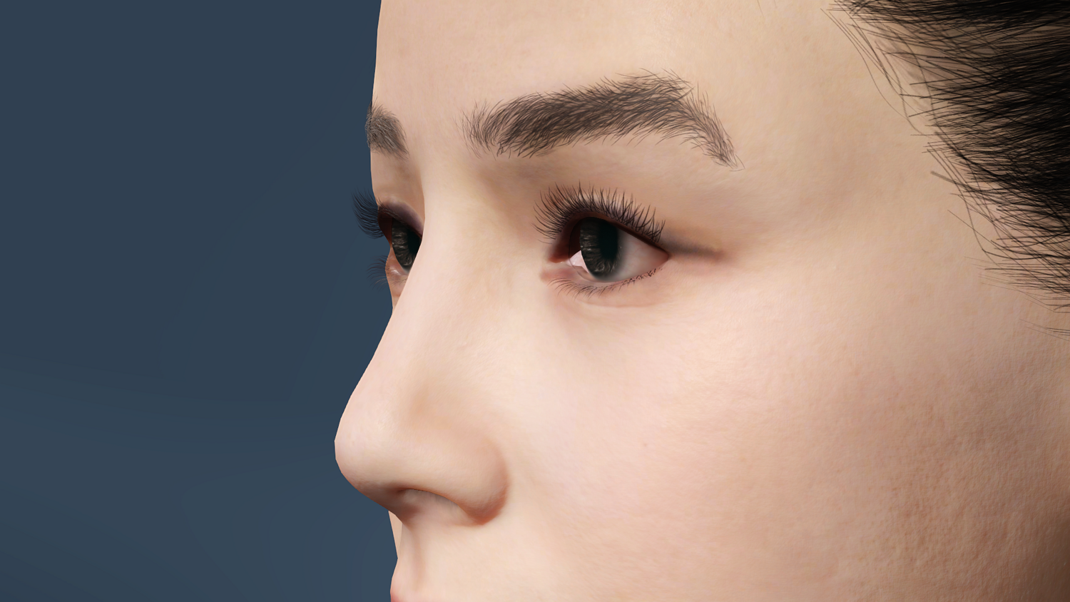 The character in UE5 features shoulder-length hair, while the character in the Blender and FBX files features waist-length hair.