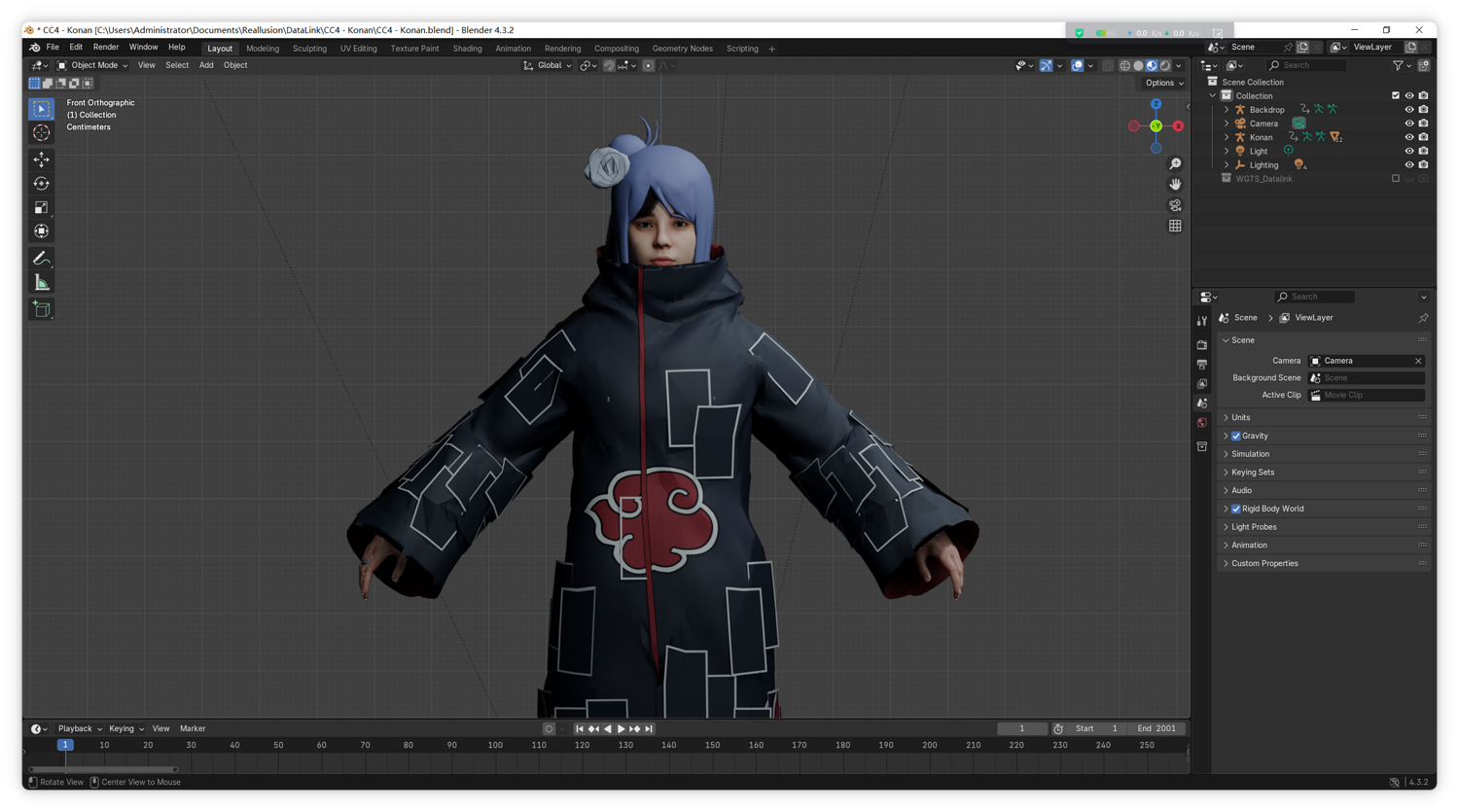 A high-fidelity 3D character model of the anime character Konan, featuring professional topology and rigorous rigging. Designed for high-quality animation production and Unreal Engine 5 development.