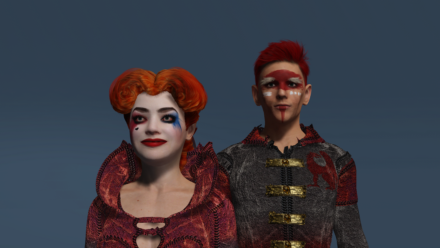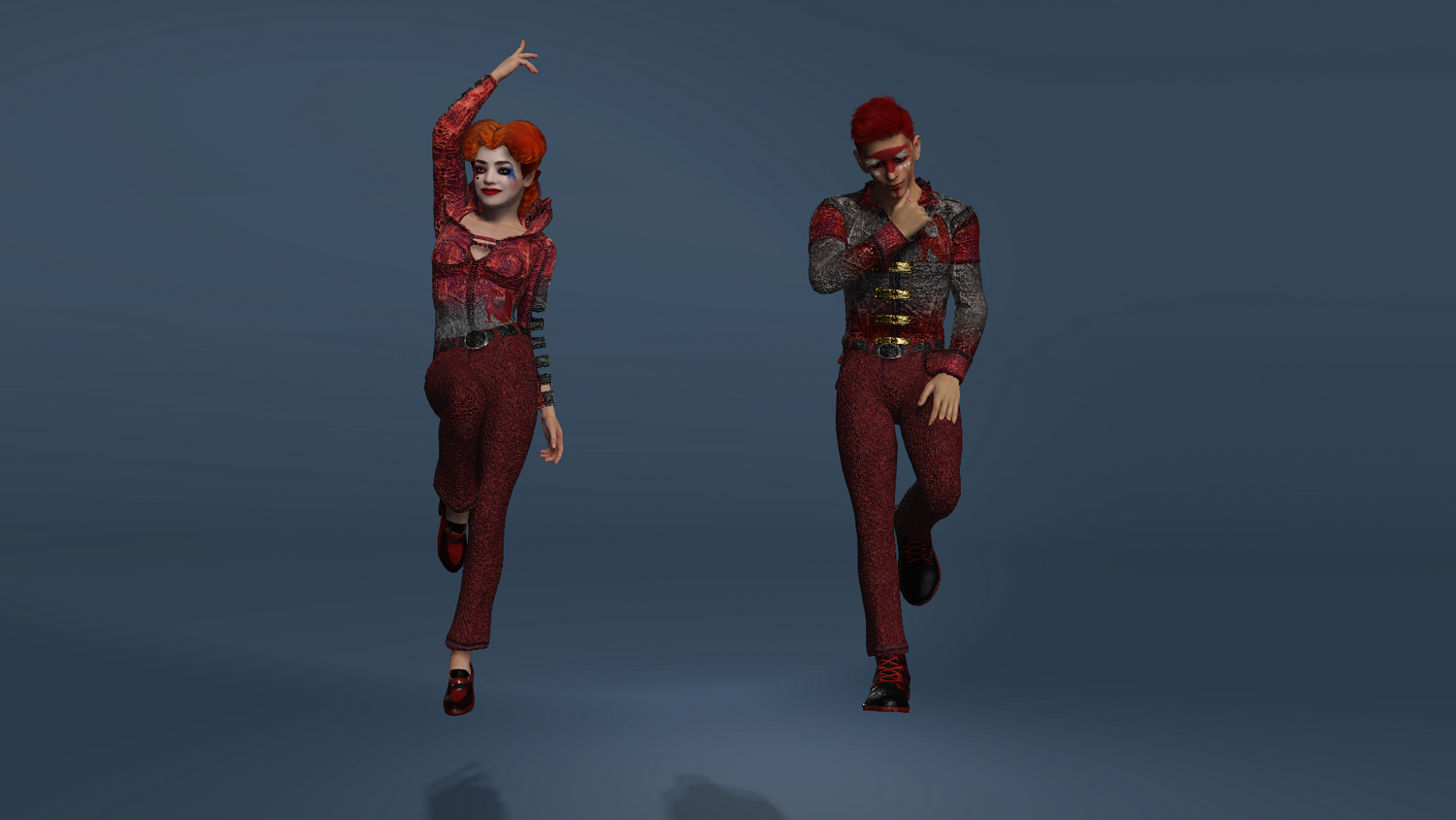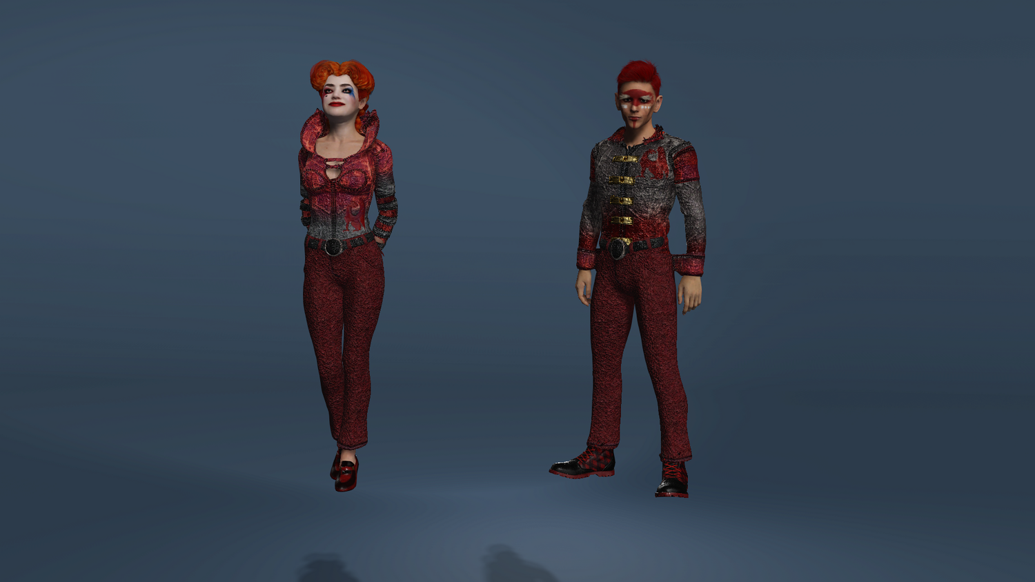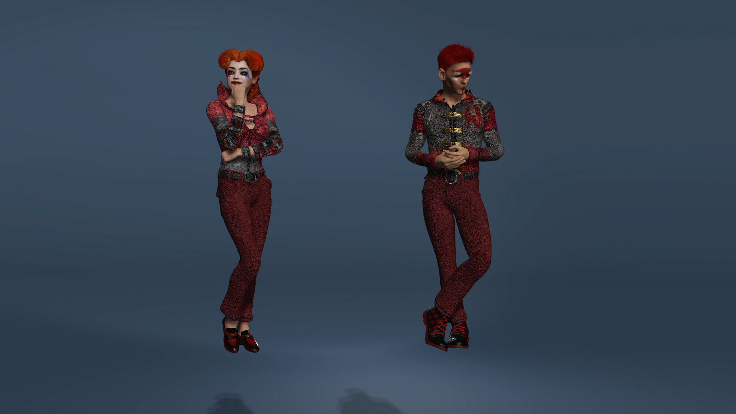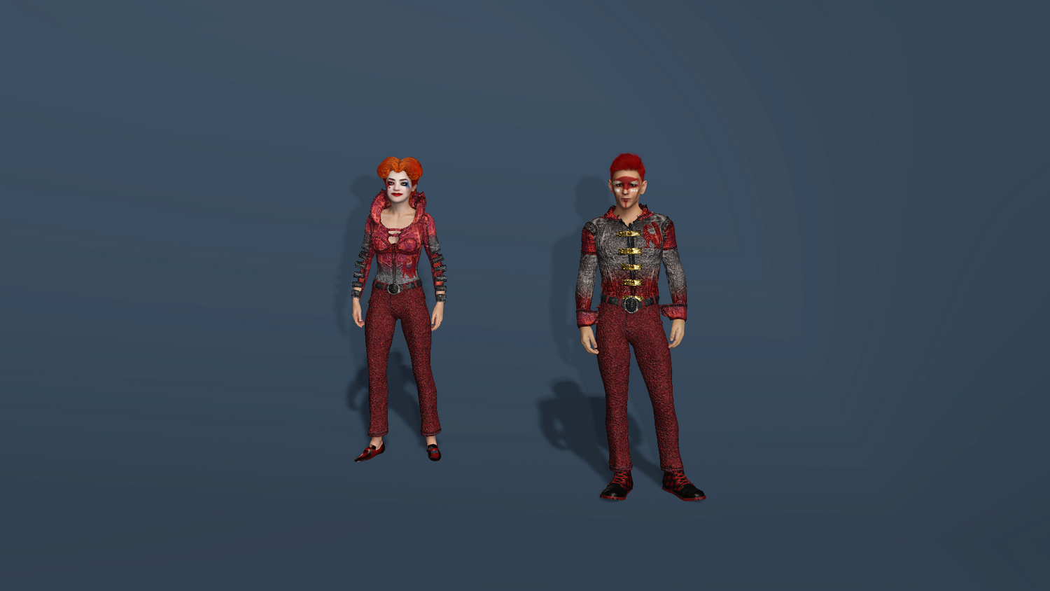 High-detail realistic clown duo with full rig and facial expressions, ready for dynamic movements and expressive animations. Suitable for games, animation, VR, and film projects. Detailed Description: Realistic models: detailed makeup, costumes, and body features. Fully rigged: ready for full-body animation. Facial rig: customize smiles, surprise, and exaggerated expressions. Versatile poses: walking, jumping, gestures, interactive actions. Compatible formats: FBX,blender. Applications: games, animation, VR, AR, film. Optimized: lightweight and efficient for real-time rendering. Notes: Does not include pre-made animations; fully customizable. Materials, clothing, and expressions are customizable.