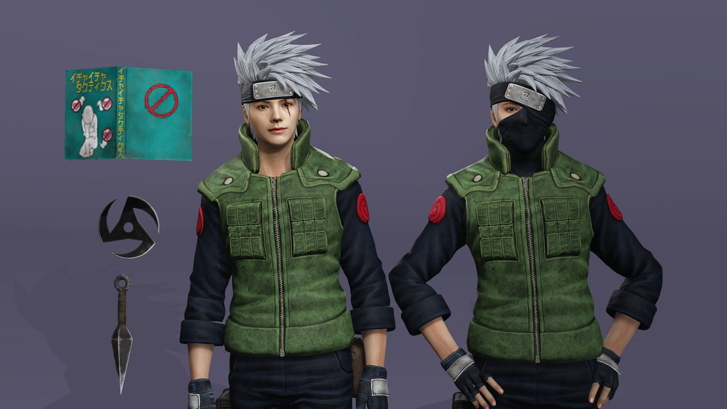 模型包含完整的木叶忍者制服、面罩、苦无、手里剑,以及卡卡西最具代表性的道具《亲热天堂》。
