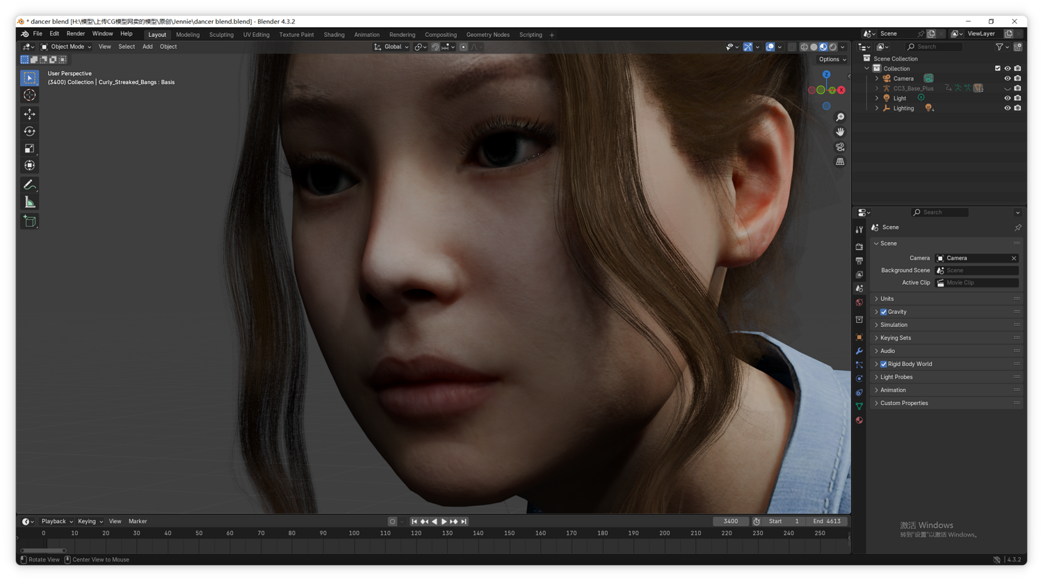 这是一个基于知名 K-Pop 偶像 Jennie 打造的高精度写实 3D 模型。模型具备极高的面部还原度与专业的绑定规格,适用于高品质音乐视频(MV)制作、时尚渲染及游戏开发。