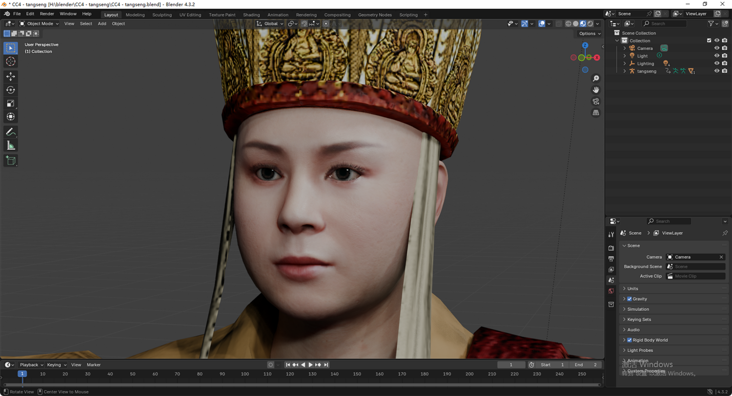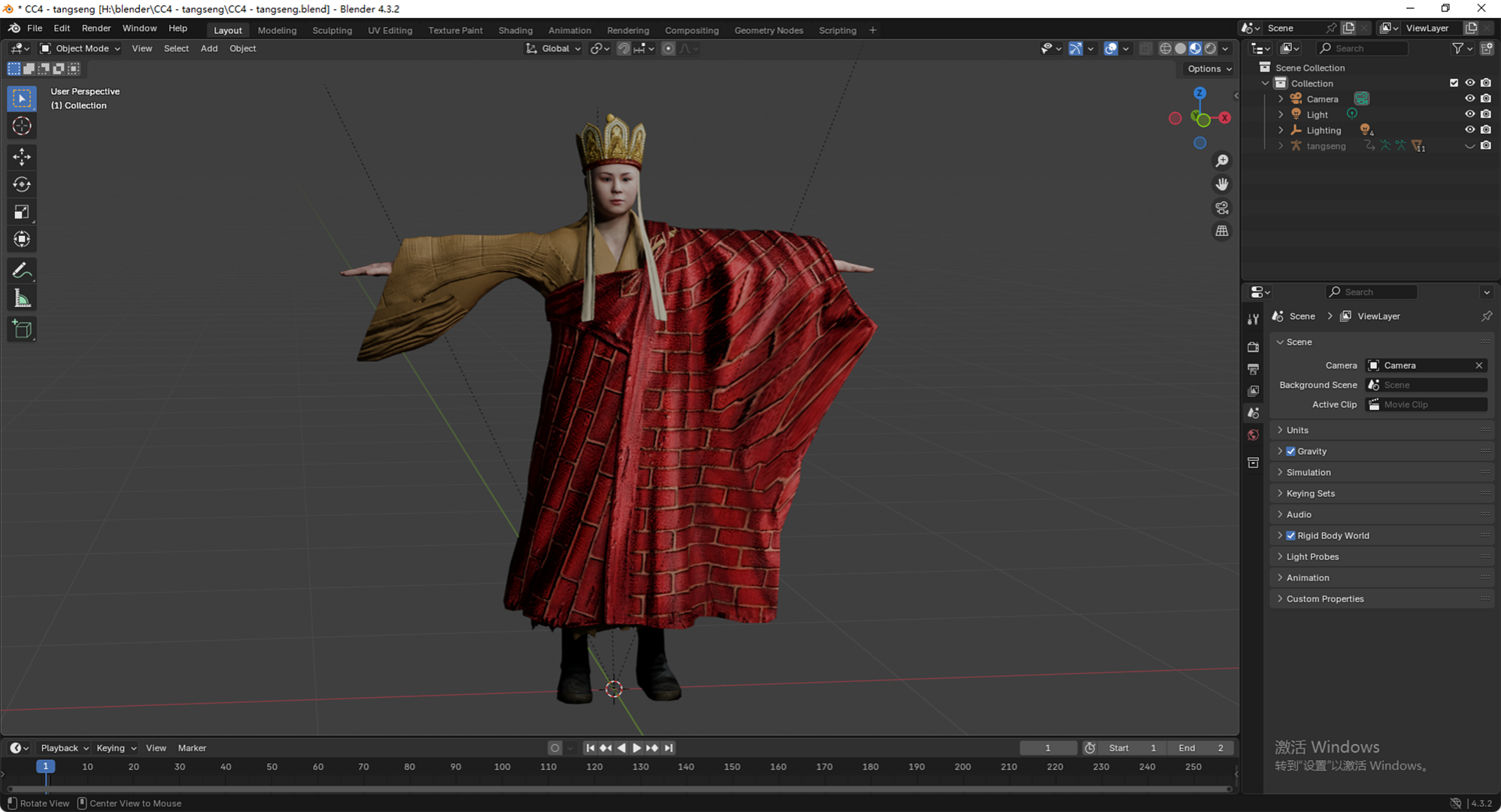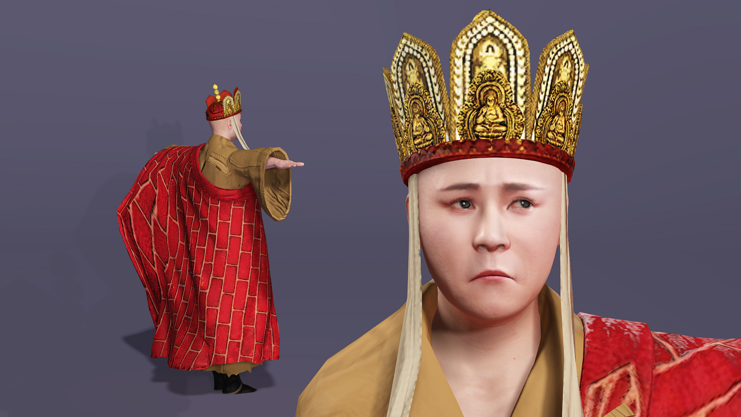 这是一个高度还原 1986 版《西游记》唐僧经典造型的 3D 角色模型。模型具备细腻的面部结构,旨在还原观众记忆中的经典形象。