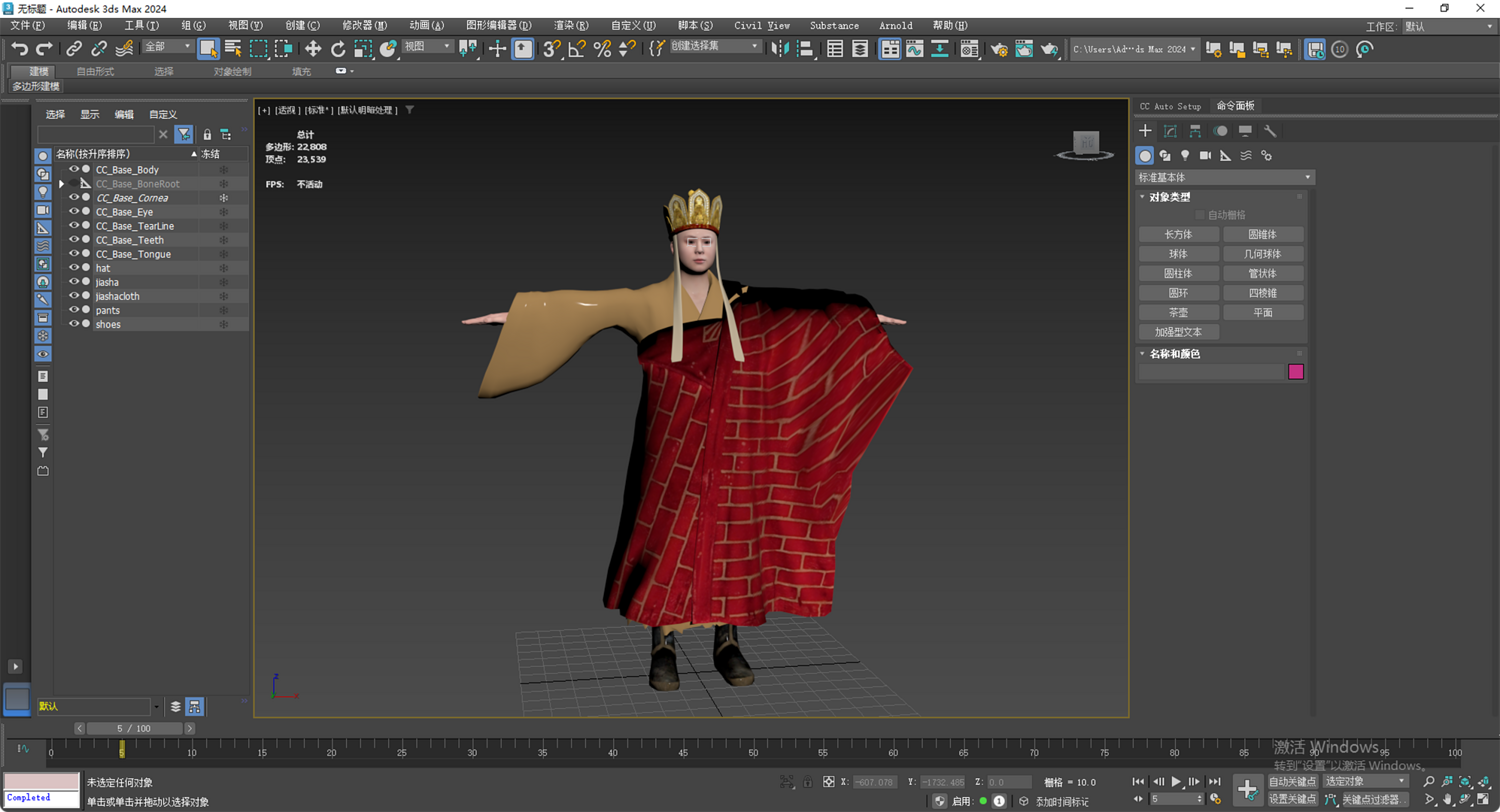 高精度绑定: 包含完整的标准全身骨骼及精细面部控制器,可实现丰富的表情与肢体动画。