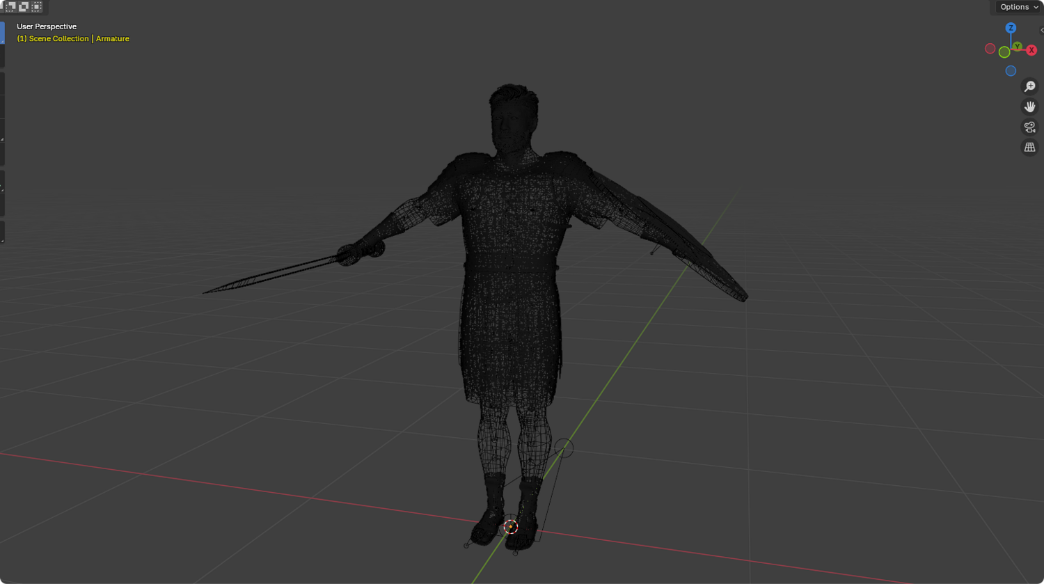 包含一套持剑格斗动画(攻击、格挡、闪避等)及两个版本:半裸(FBX)和全套盔甲(FBX、Blender 4.3.2、Max 2019、Maya 2022)。