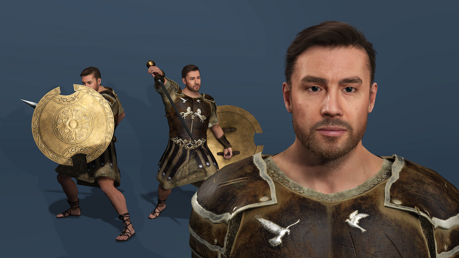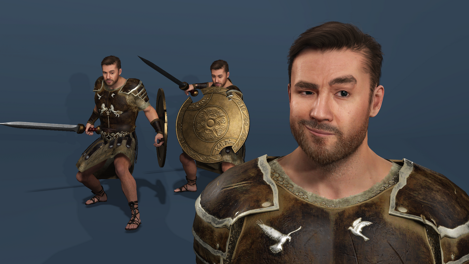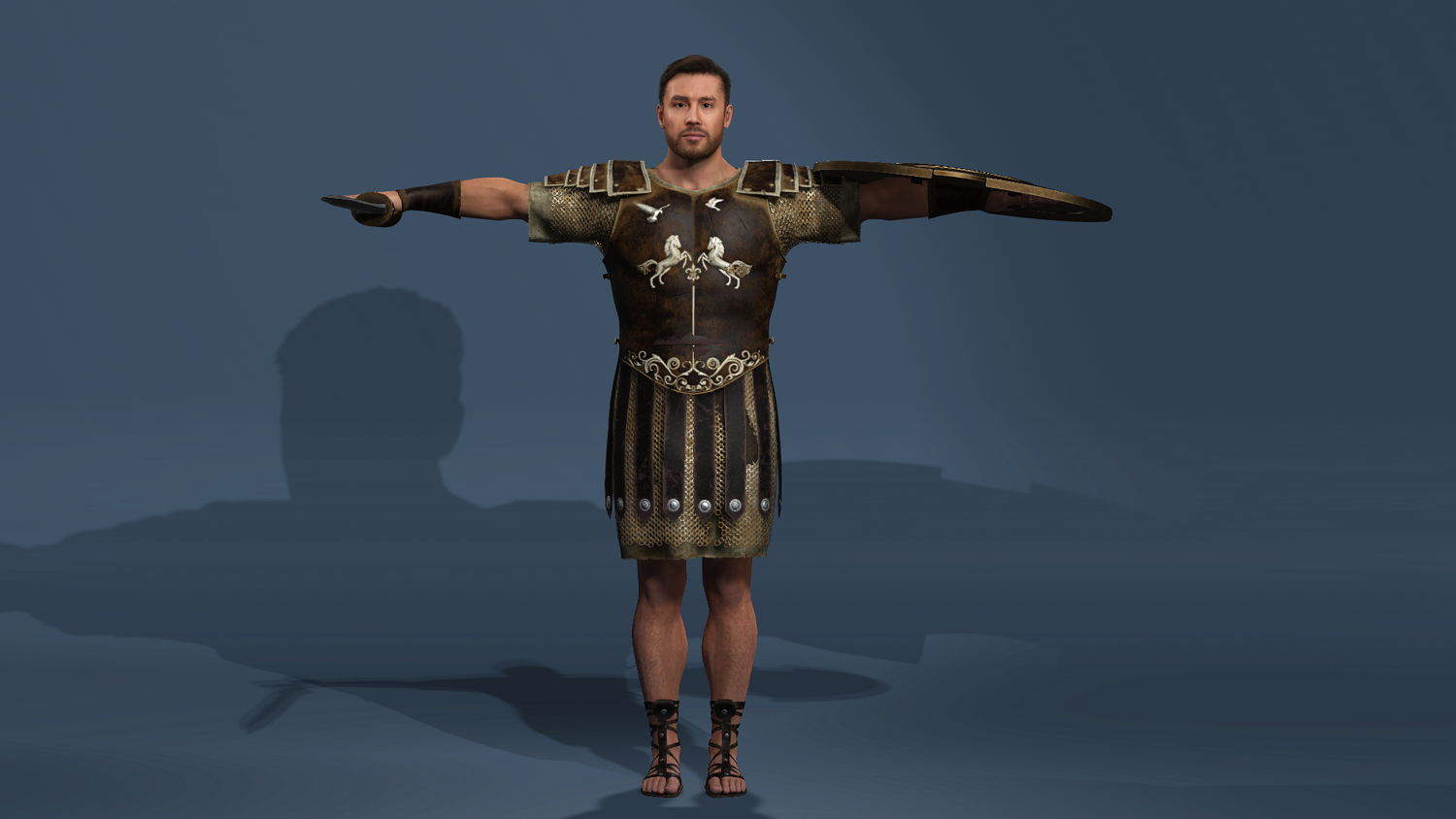 High-detail realistic Roman gladiator warrior model, fully rigged (body + face) and compatible with UE5.5 mannequin skeleton.