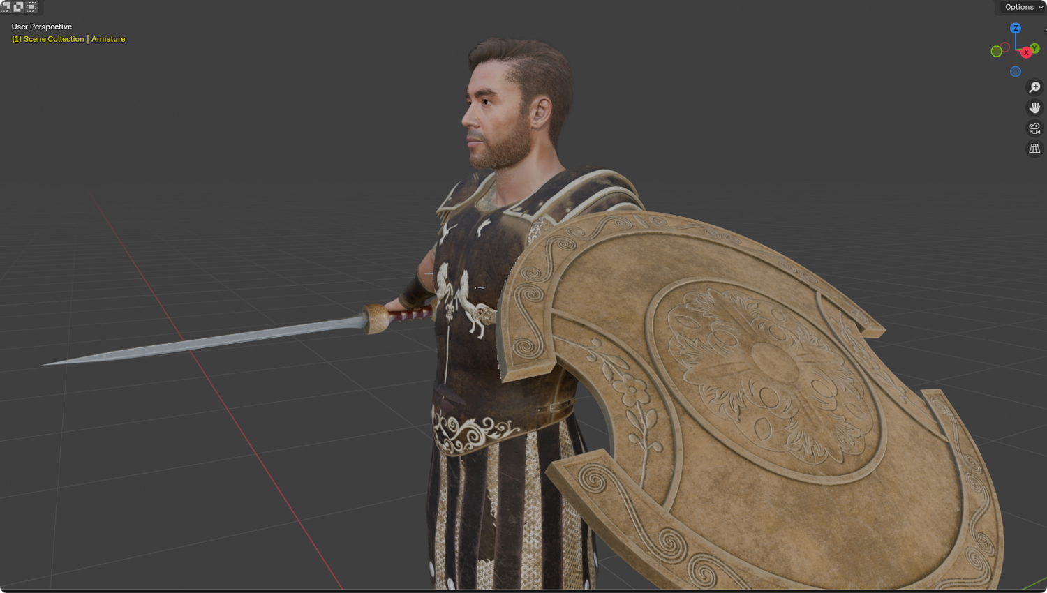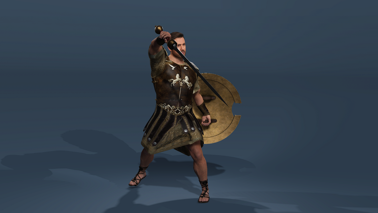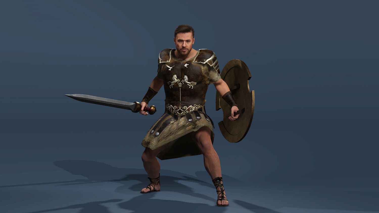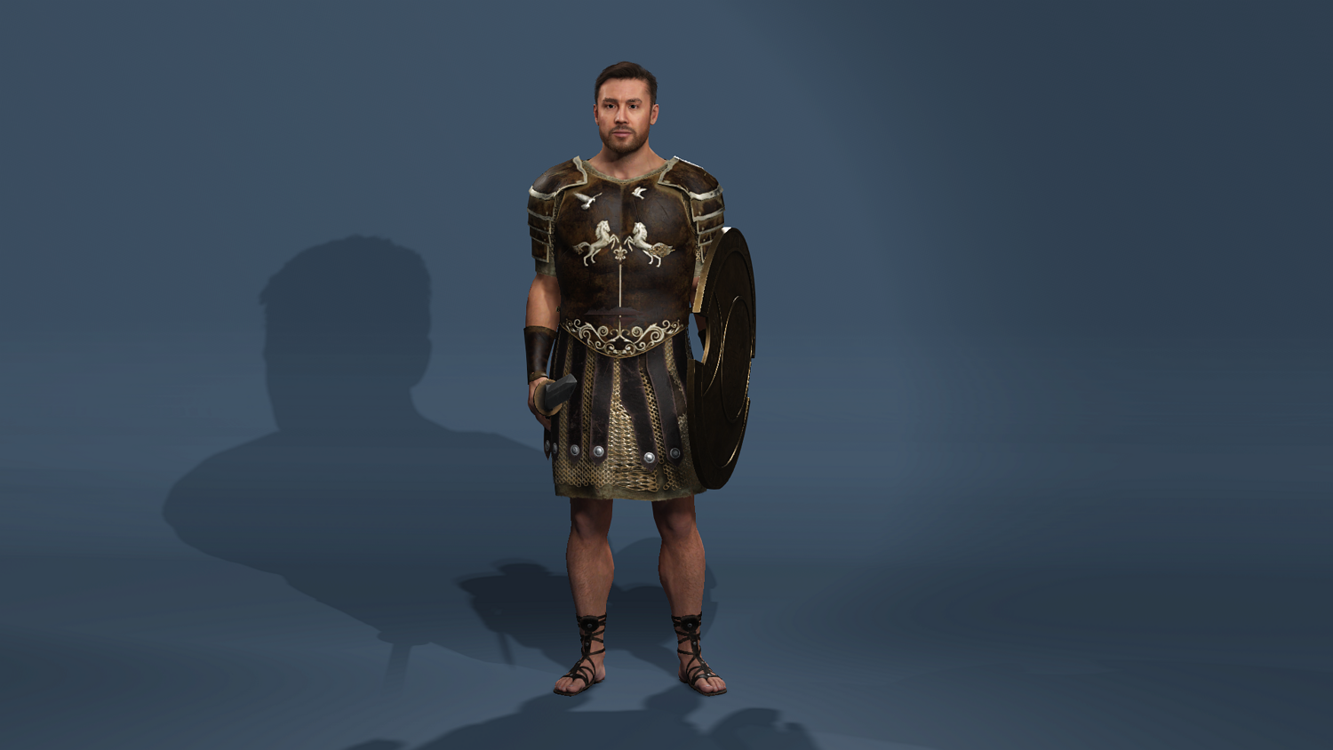 High-detail realistic Roman gladiator warrior model, fully rigged (body + face) and compatible with UE5.5 mannequin skeleton.