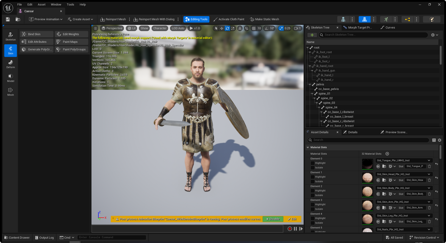 高细节写实古罗马角斗士肌肉猛男模型,全身+面部骨骼绑定,完美兼容UE5.5标准骨骼。