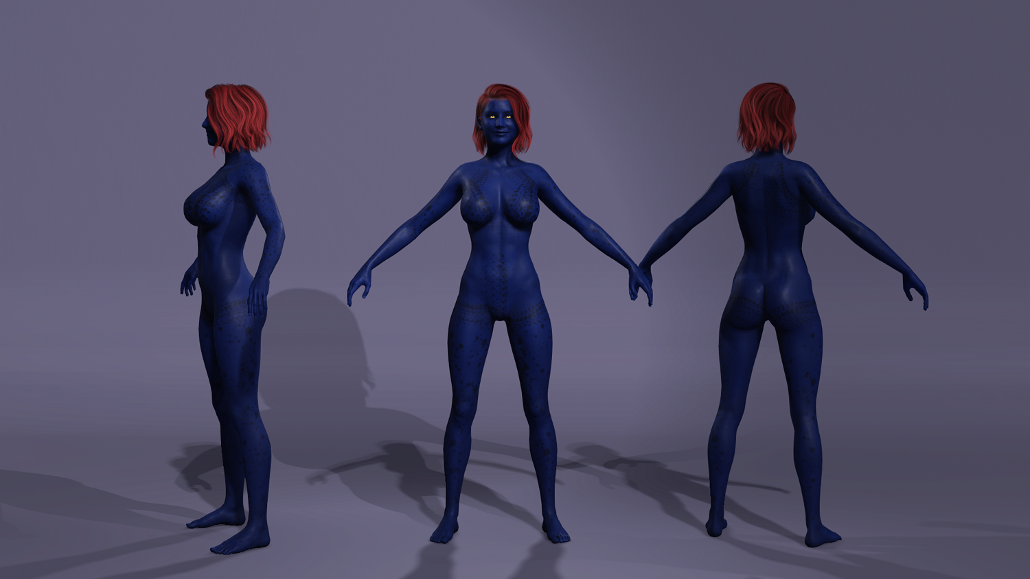 Realistic Female 3D Model, the character is 90% similar to the Mystique (Raven) from X-Men: Days of Future Past.