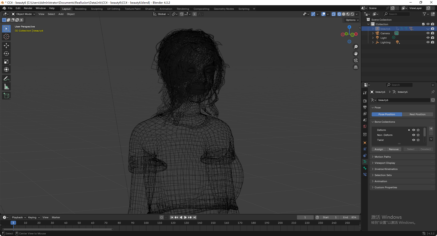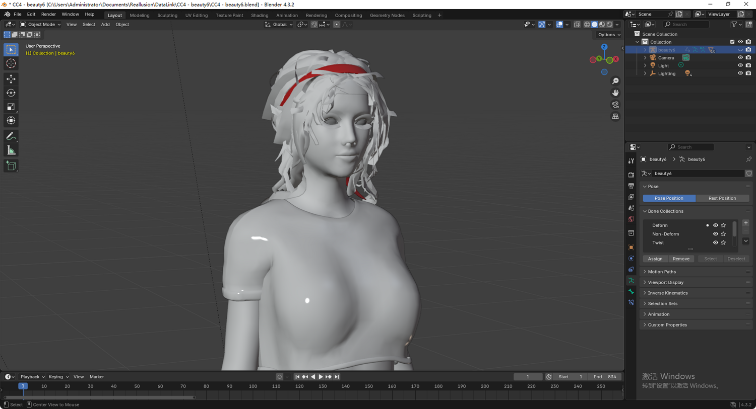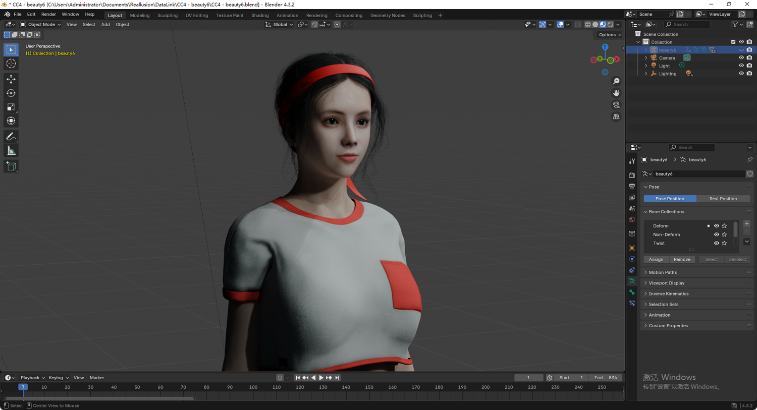 产品详情: 本产品是一个高精度写实女性 3D 角色模型。采用专业级绑定流程,支持复杂的面部表情及肢体动画展示。模型深度适配虚幻引擎(UE)骨骼体系,可无缝调用引擎动作库资产。