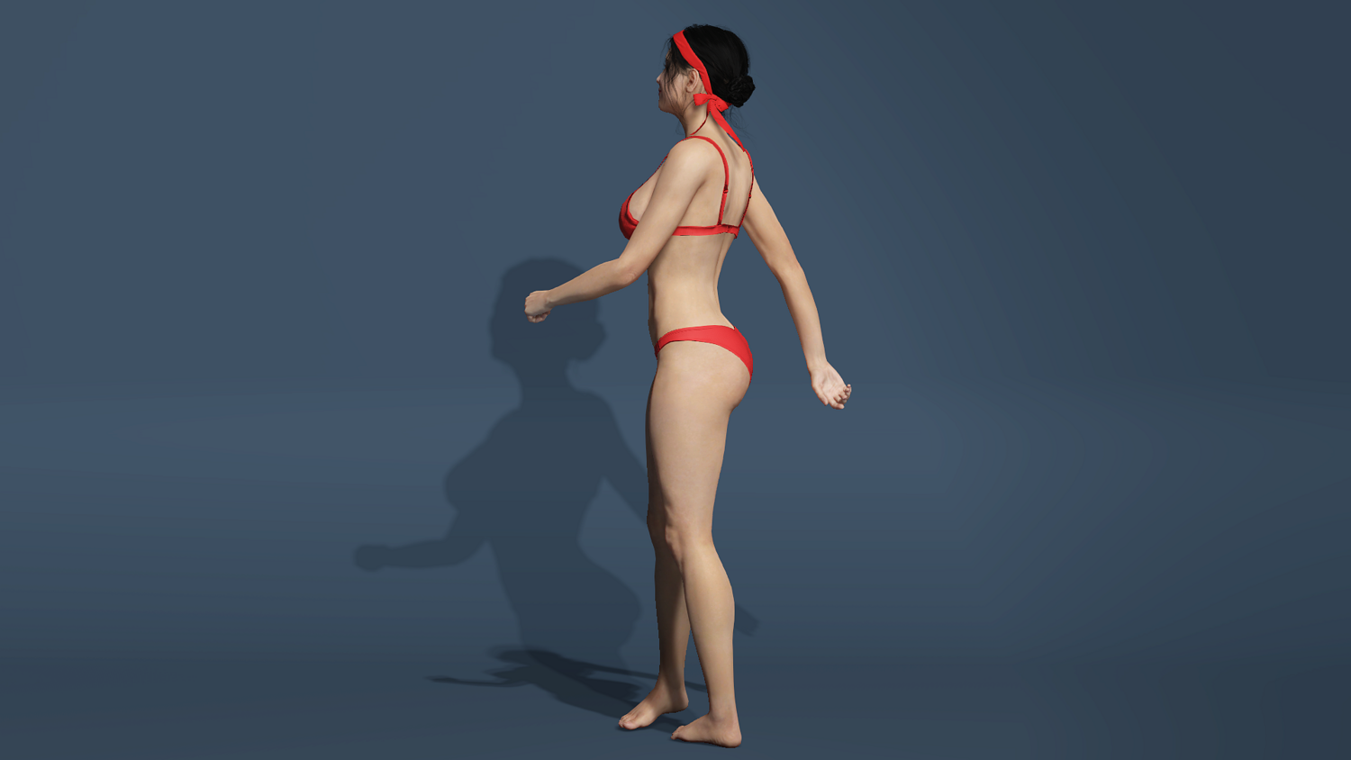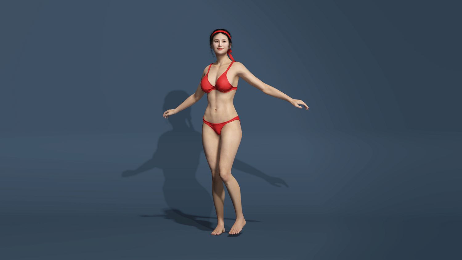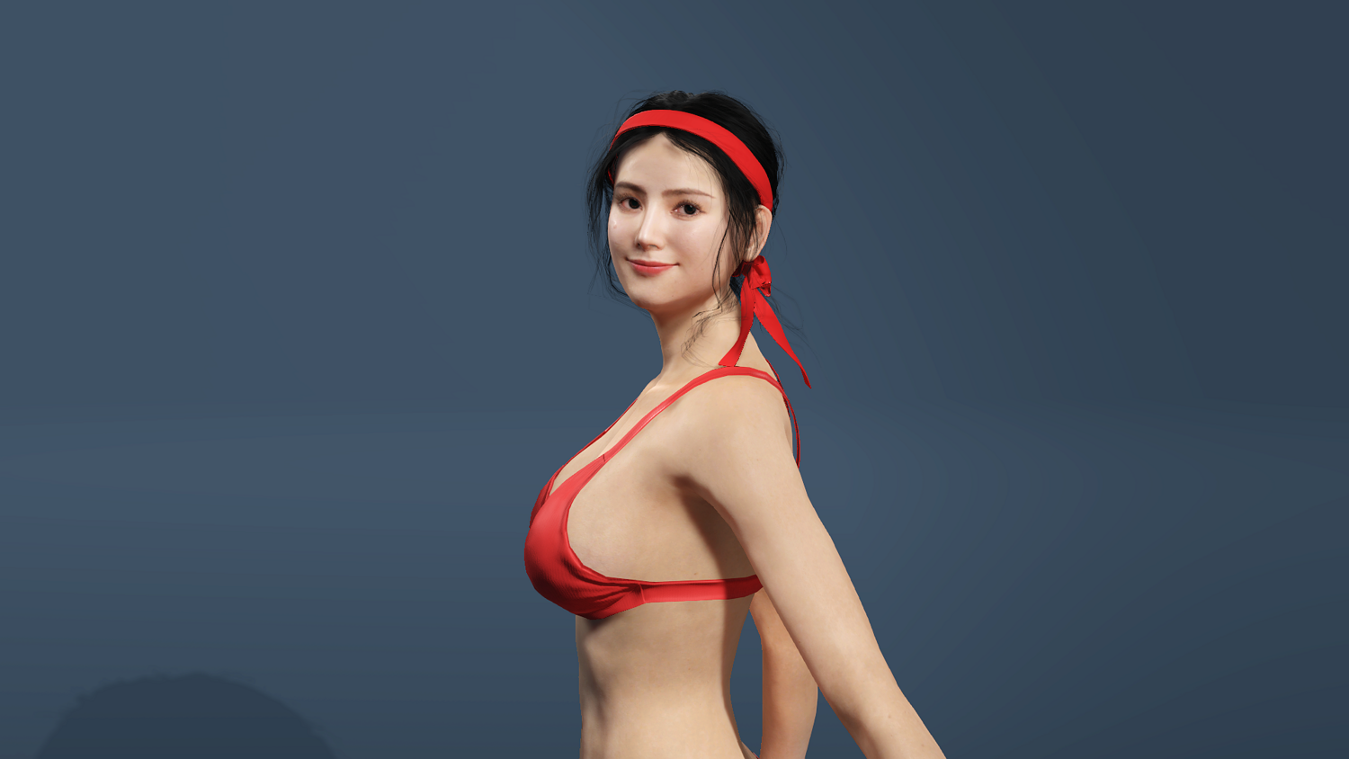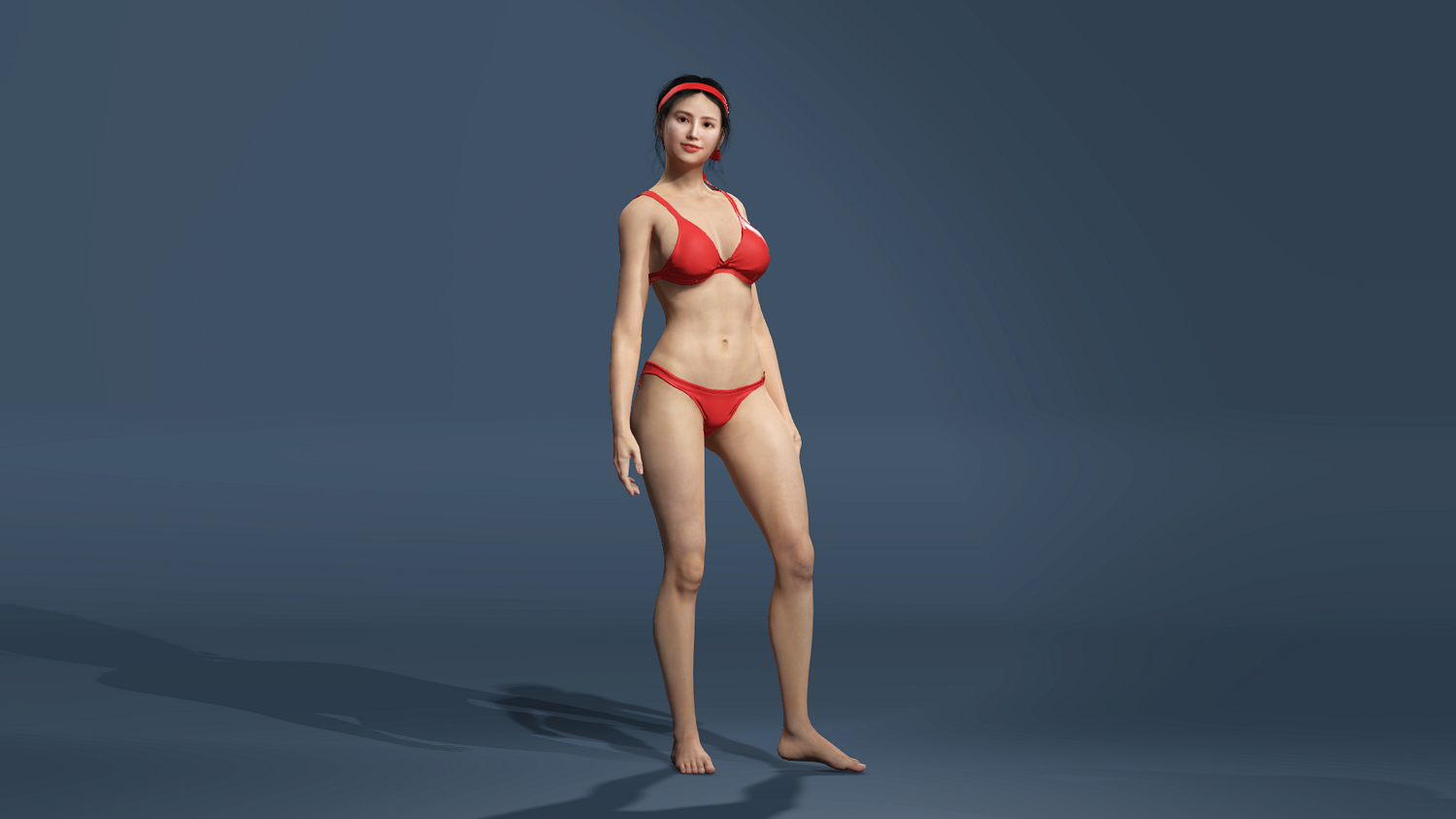 Realistic Asian Beauty in Red Bikini Rigged for UE5 unity low-poly 3d model
