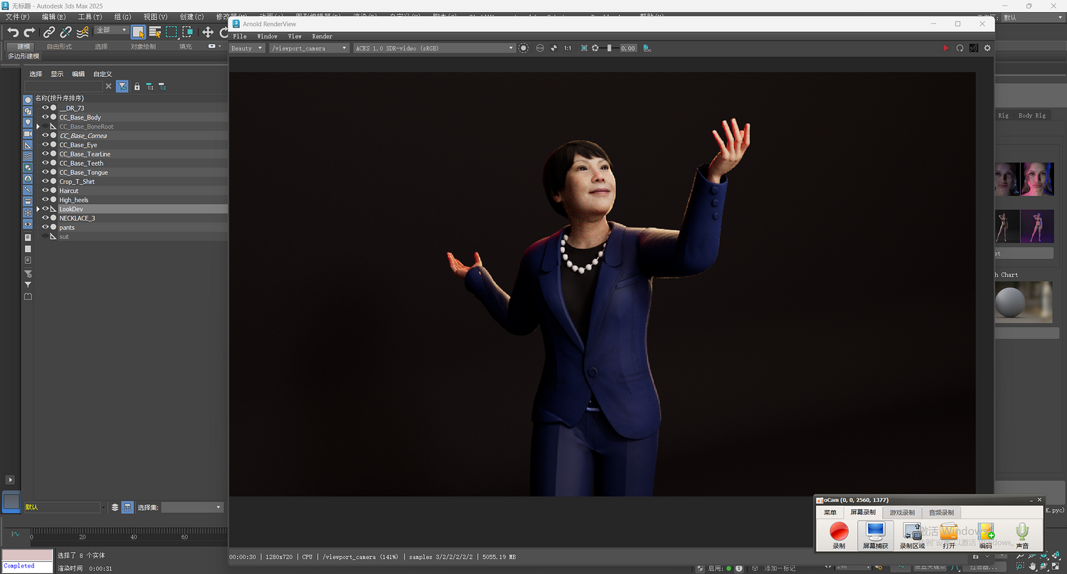 AAA级次世代!亚洲精明女精英 3D 模型 - 蓝色西装,全 PBR 贴图,高精度面部绑定!
