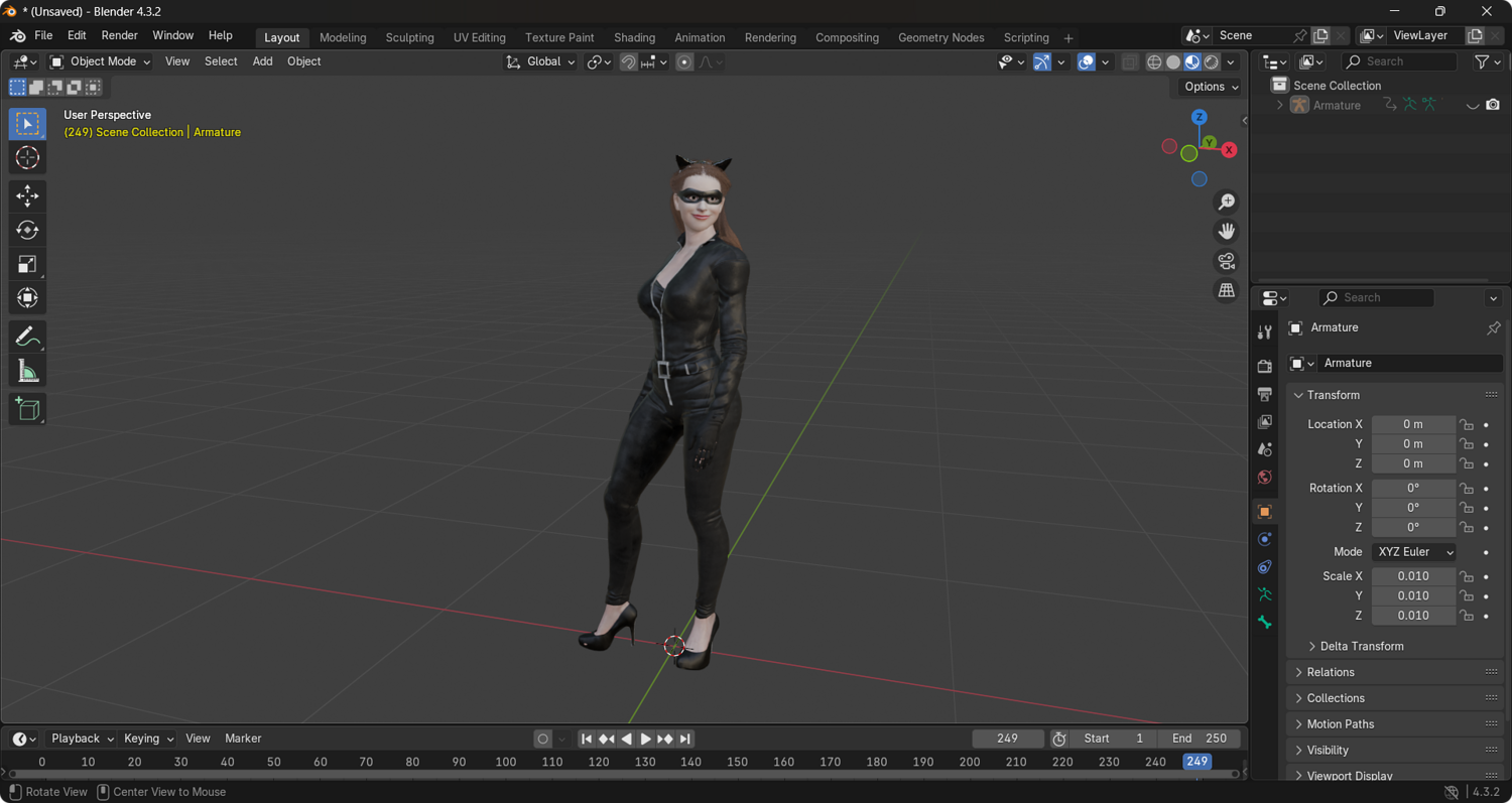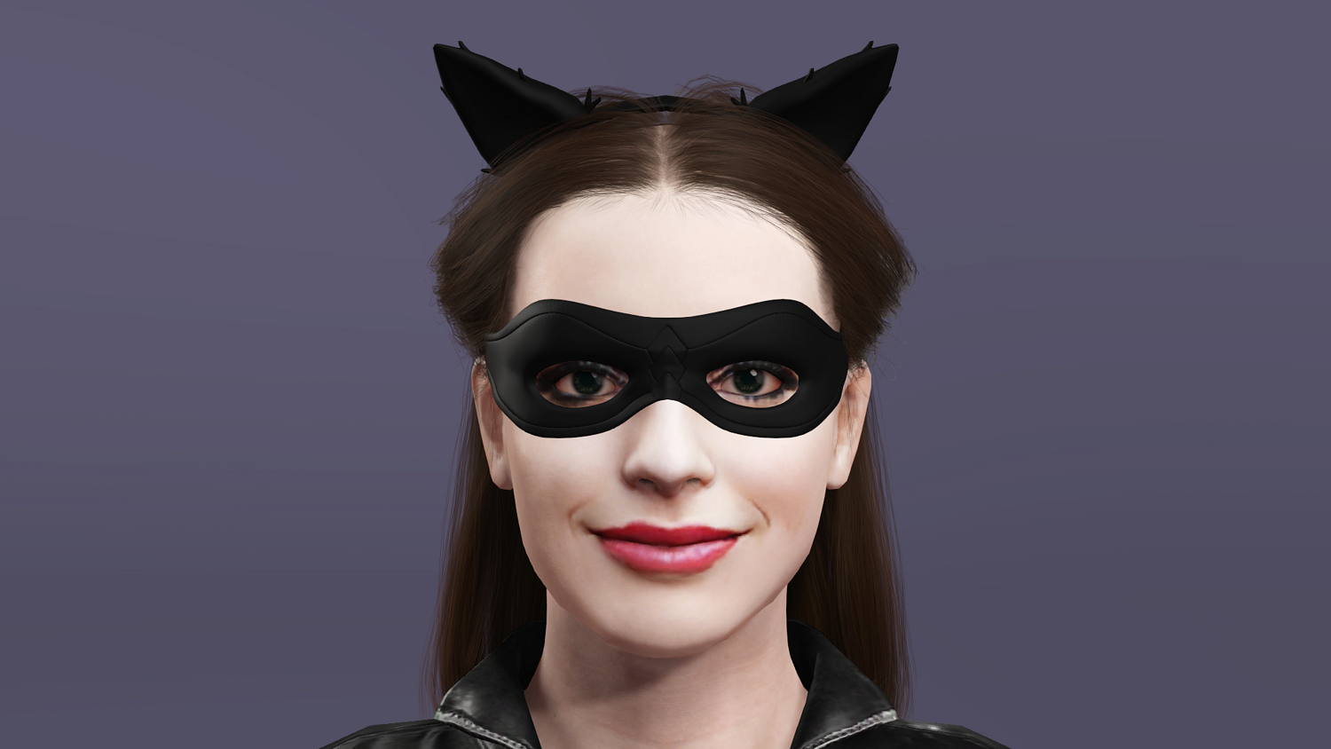 This 3D model faithfully recreates Anne Hathaway’s iconic Catwoman look from The Dark Knight Rises: