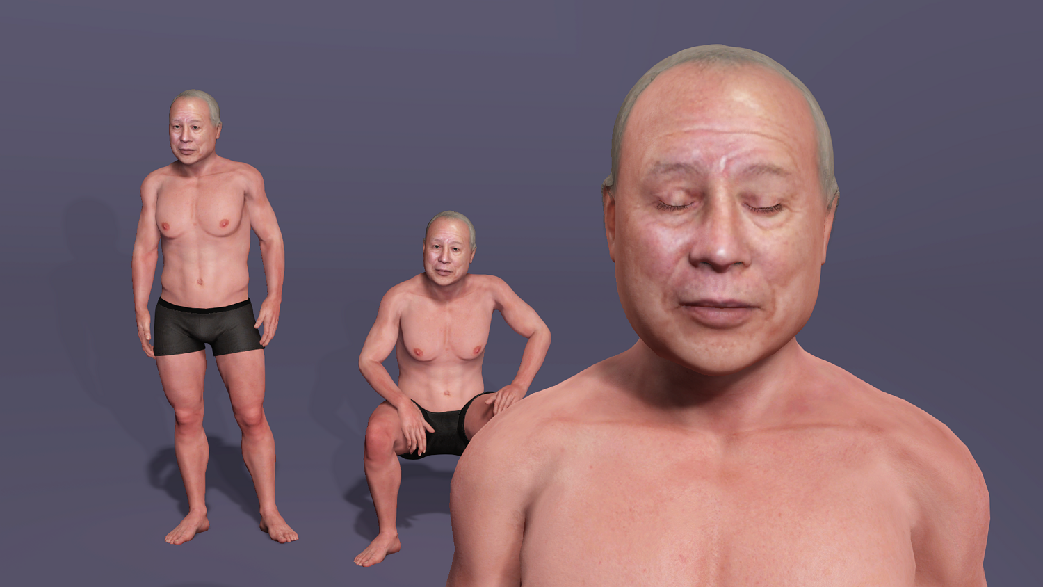 This Asian elderly male model is based on Japanese AV actor Tezuka Shigeo, using the UE standard Mannequin skeleton system.