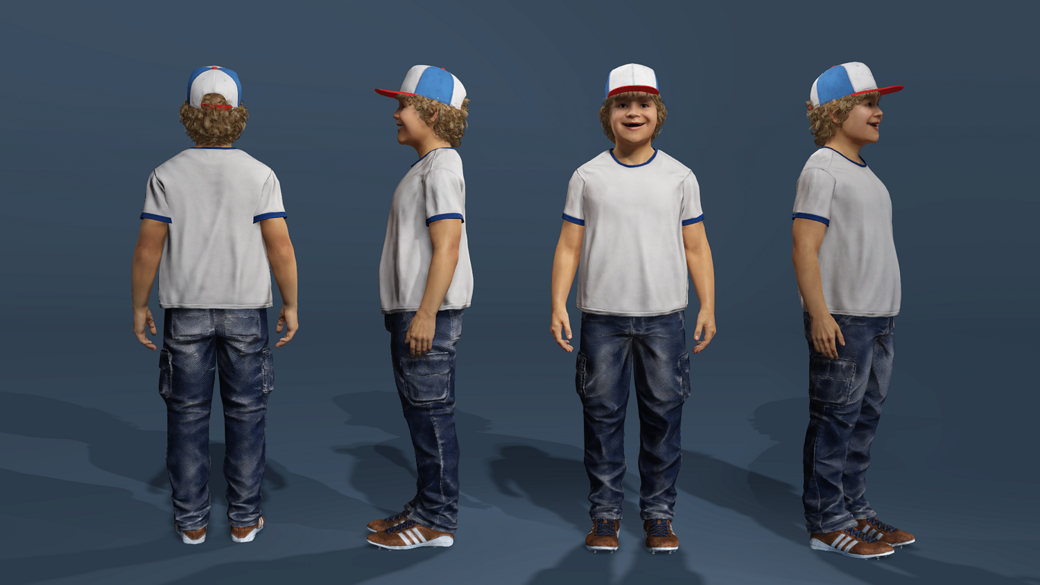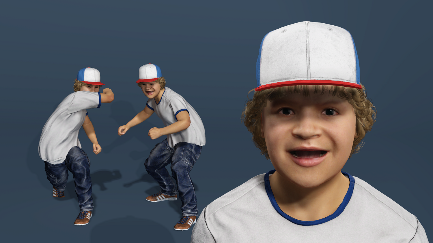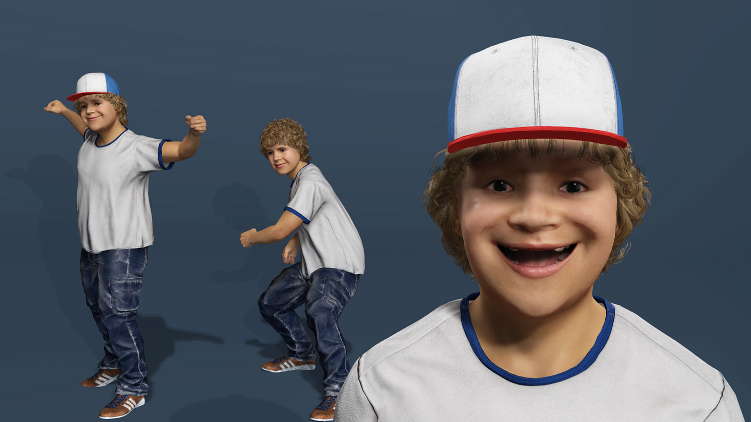 高度相似Gaten Matarazzo肖像:卷发、棒球帽、白T蓝边T恤、牛仔裤、运动鞋,一比一还原剧中造型。 细致面部细节:标志性缺牙大笑、丰富表情控制(Blendshapes,支持各种开心、惊讶表情)。 全身专业绑定(Rigged):支持Blender、Maya、3ds Max等软件,可轻松制作复杂动作。 独家附赠热舞动画:一段活力满满的舞蹈循环,完美适合粉丝动画、游戏或渲染! 多格式支持:FBX、OBJ、Blender、Maya、MAX,原生文件完整交付。