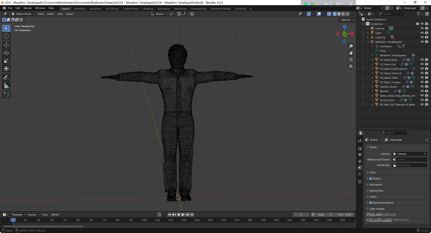 Realistic model of AV actor Masahiro Tanabayashi, fully rigged with body and facial bones, compatible with UE mannequin skeleton. Includes one sitting and talking animation. Polygon count: 608,562 polys / 1,223,157 verts. Formats: FBX, Blender 4.3.2, Unity, OBJ, 3ds Max 2019. Suitable for games, VR/AR, animations, and adult content projects. AV男优田渊正浩写实模型,全身+面部骨骼绑定,兼容UE标准骨骼体系。 附带一段坐姿讲话动画。 多边形数:608,562 多边形 / 1,223,157 顶点。 格式:FBX、Blender 4.3.2、Unity、OBJ、3ds Max 2019。 适用于游戏、VR/AR、动画和成人内容项目。