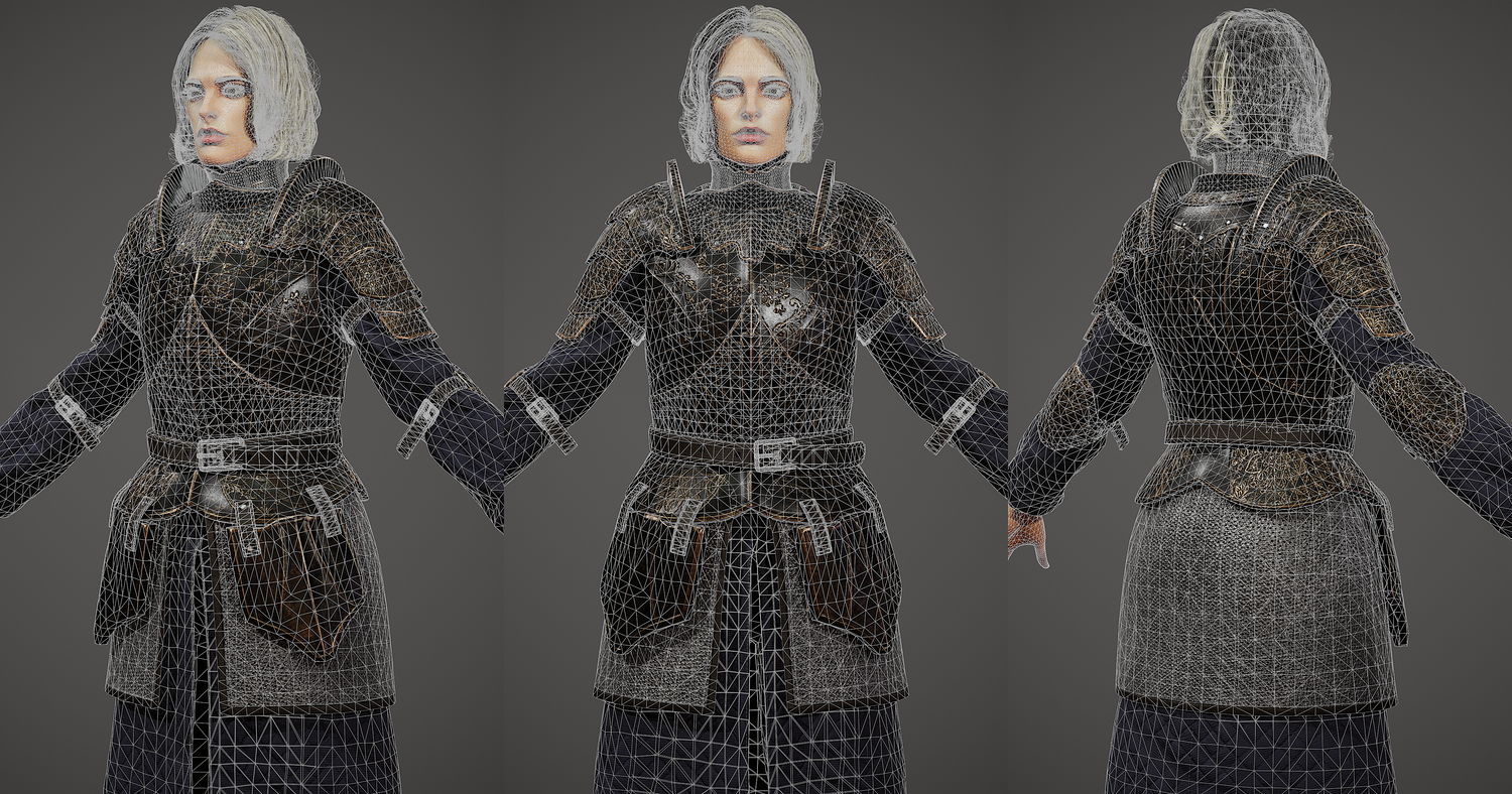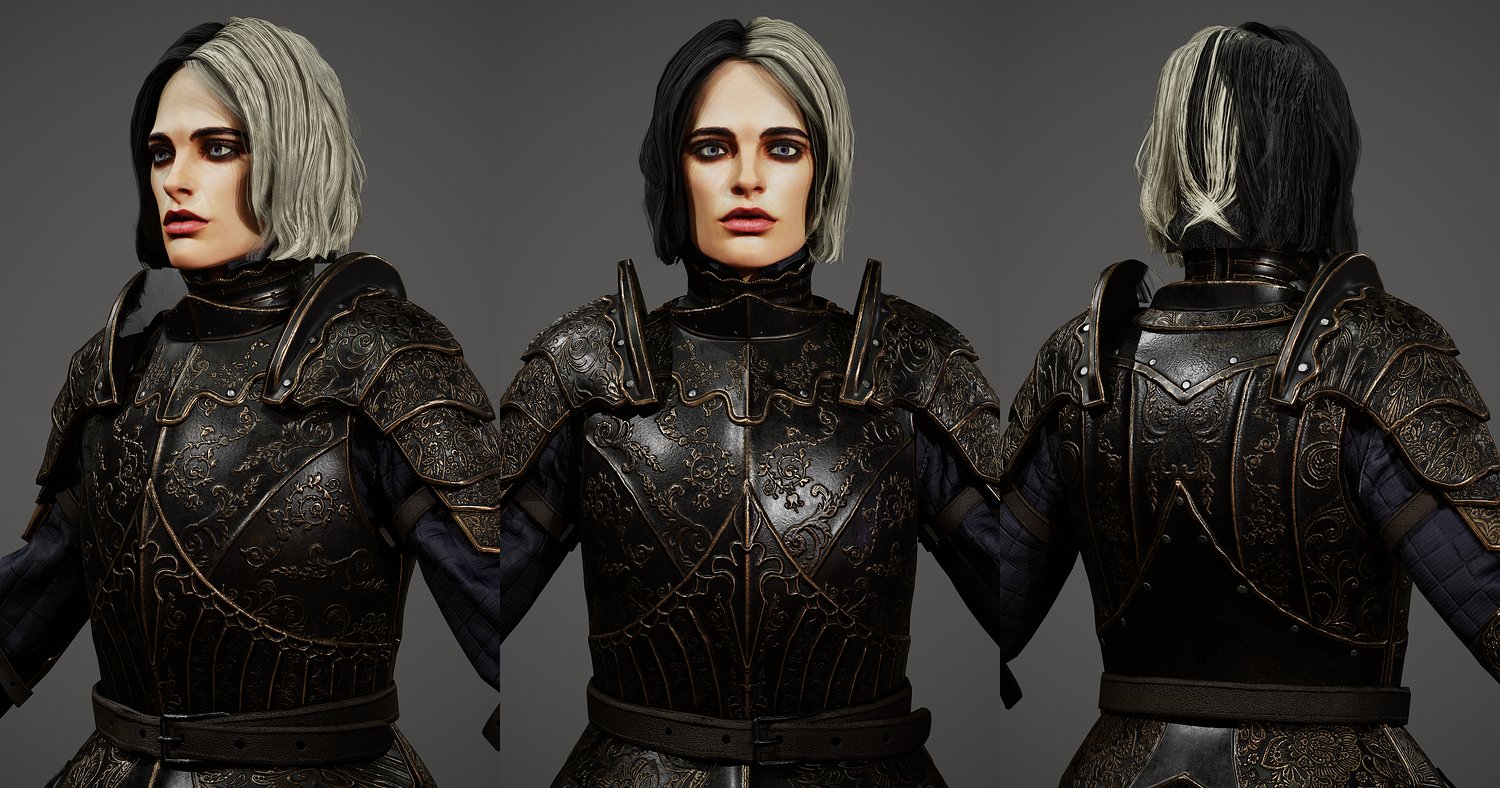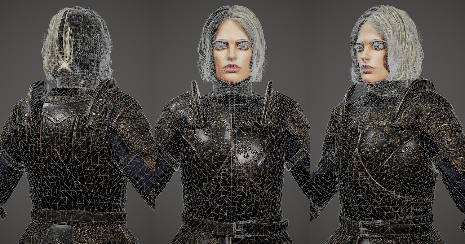 Girl Knight character 3d model, pbr textures, game-ready. Low-poly