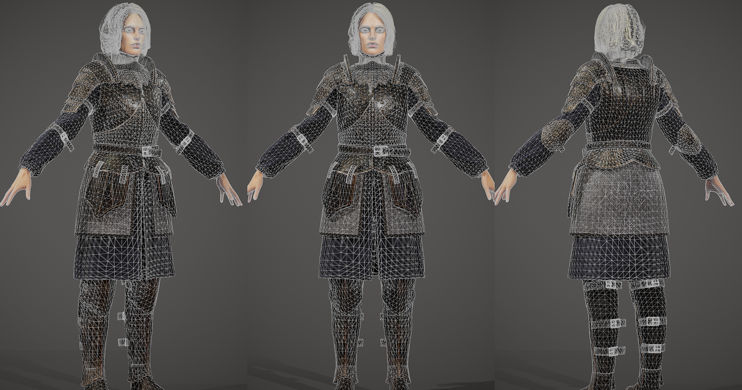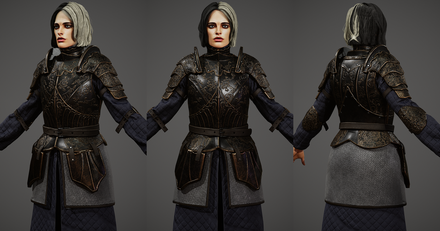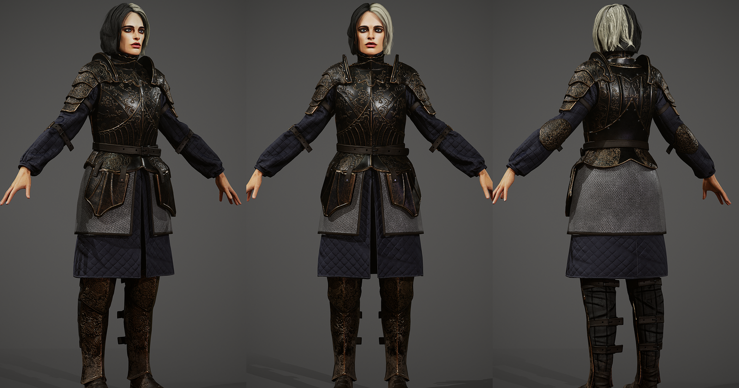 Girl Knight character 3d model, pbr textures, game-ready. Low-poly