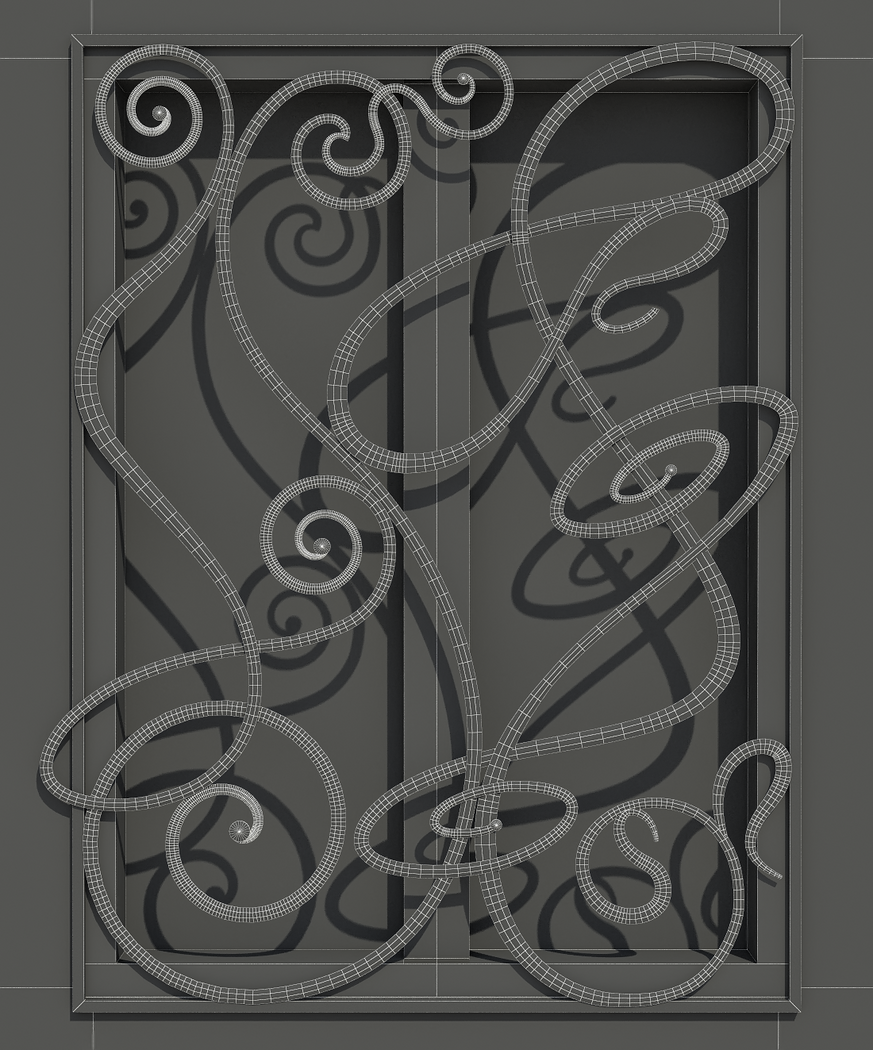 Wrought Iron Grating on The Window. Stage lighting HDR and VraySun. Program: 3ds Max Design 2013. Plugins: v-ray 2.0, SolidRocks 2.0.5.
