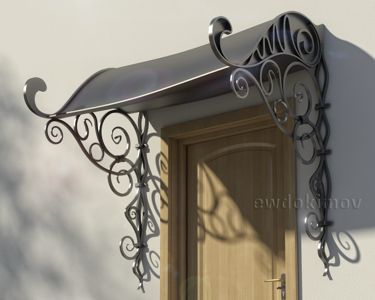 Wrought iron canopy over the entrance to the house. Stage lighting HDR and VraySun. Program: 3ds Max Design 2013. Plugins: v-ray 2.0, SolidRocks 2.0.5.