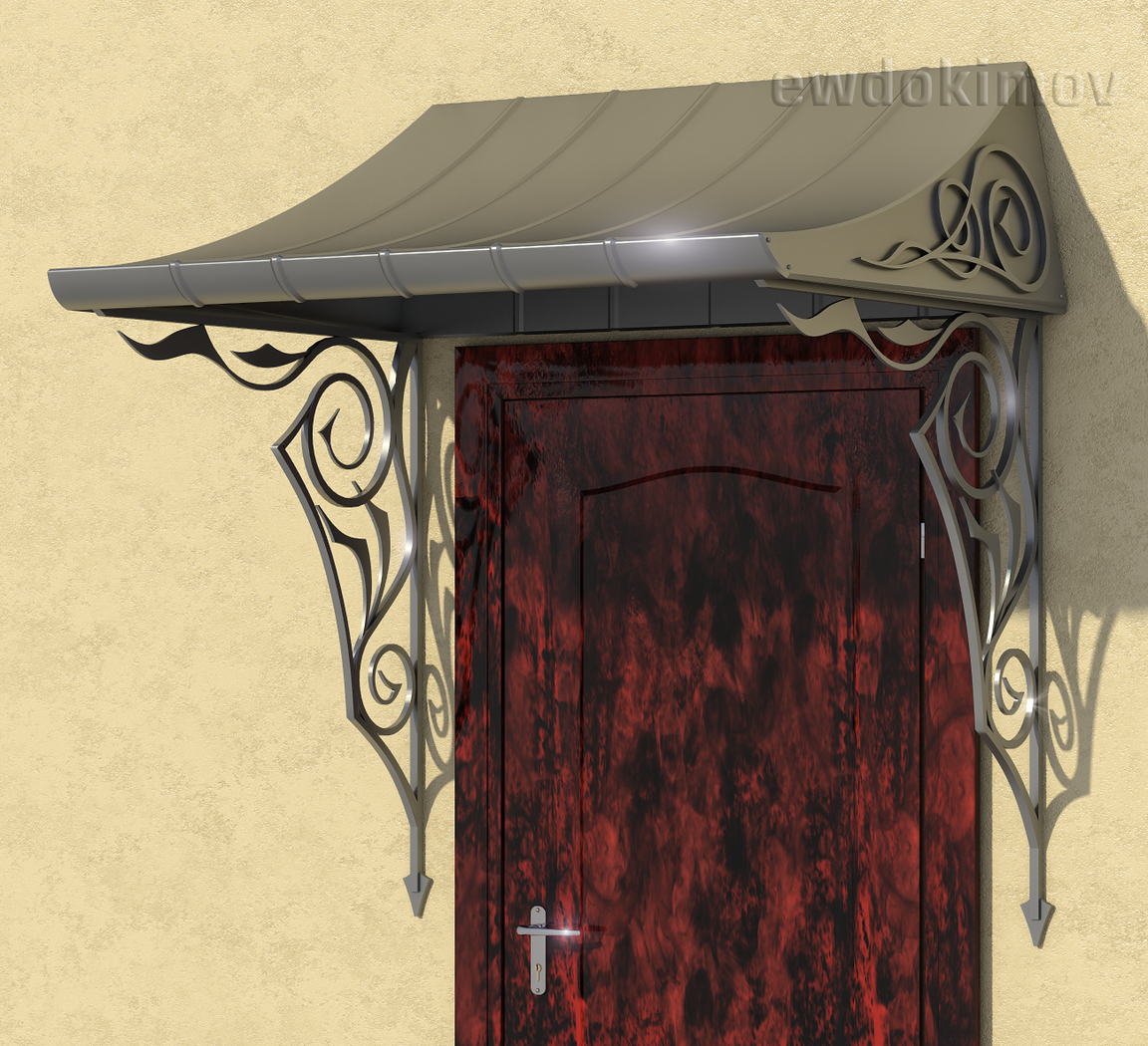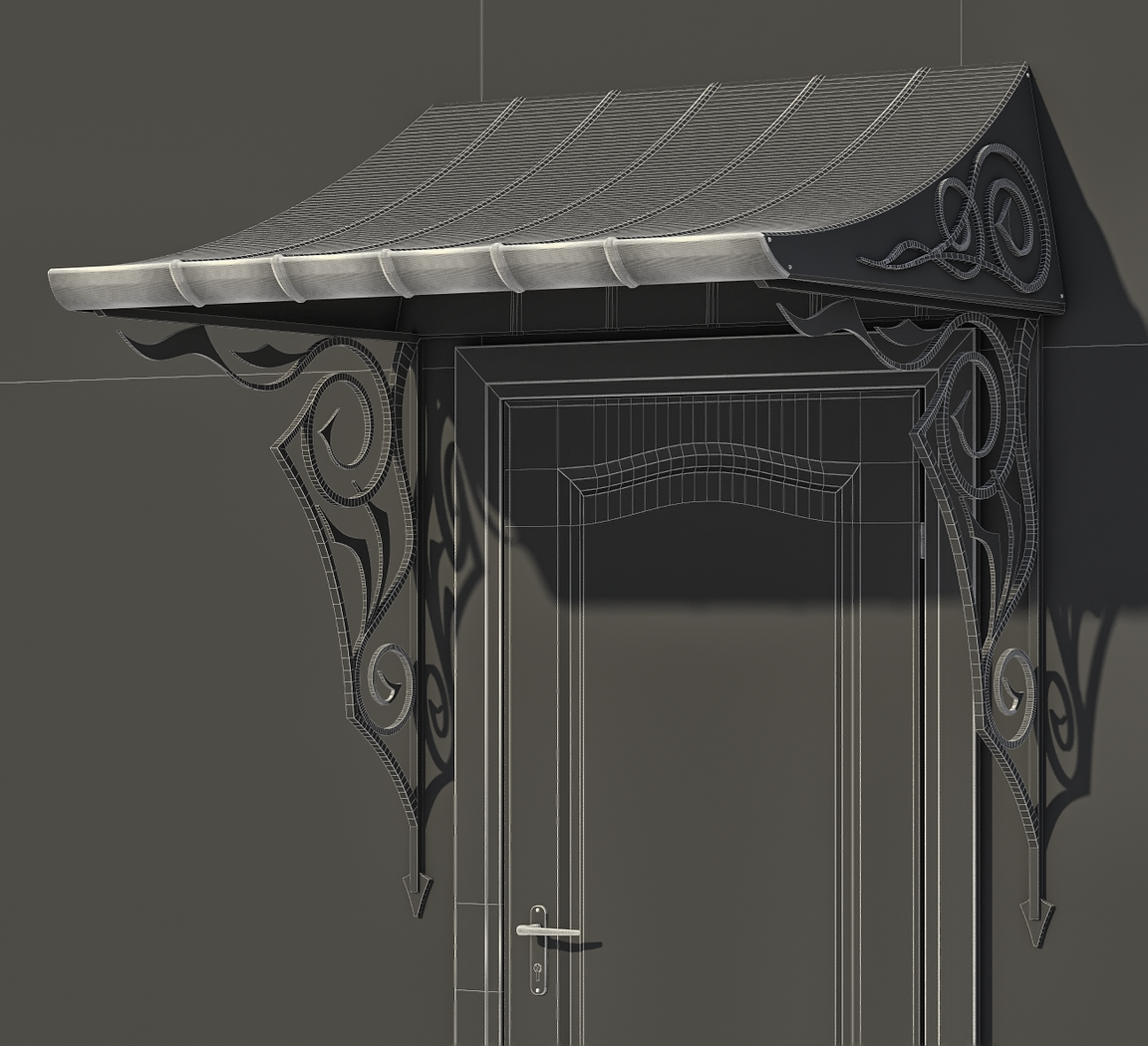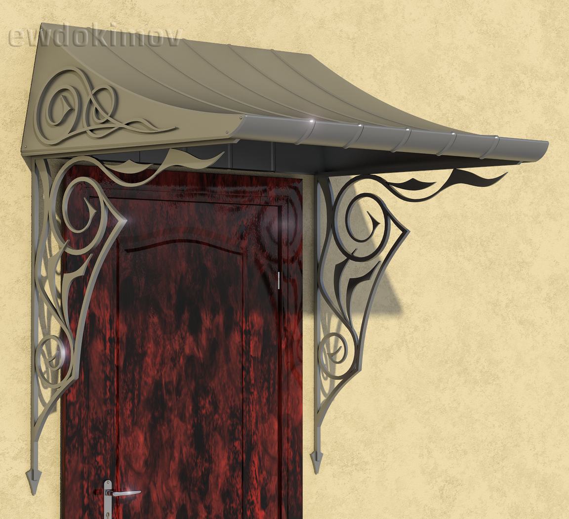 Wrought iron canopy over the entrance to the house. Stage lighting HDR and VraySun. Program: 3ds Max Design 2013. Plugins: v-ray 2.0, SolidRocks 2.0.5.