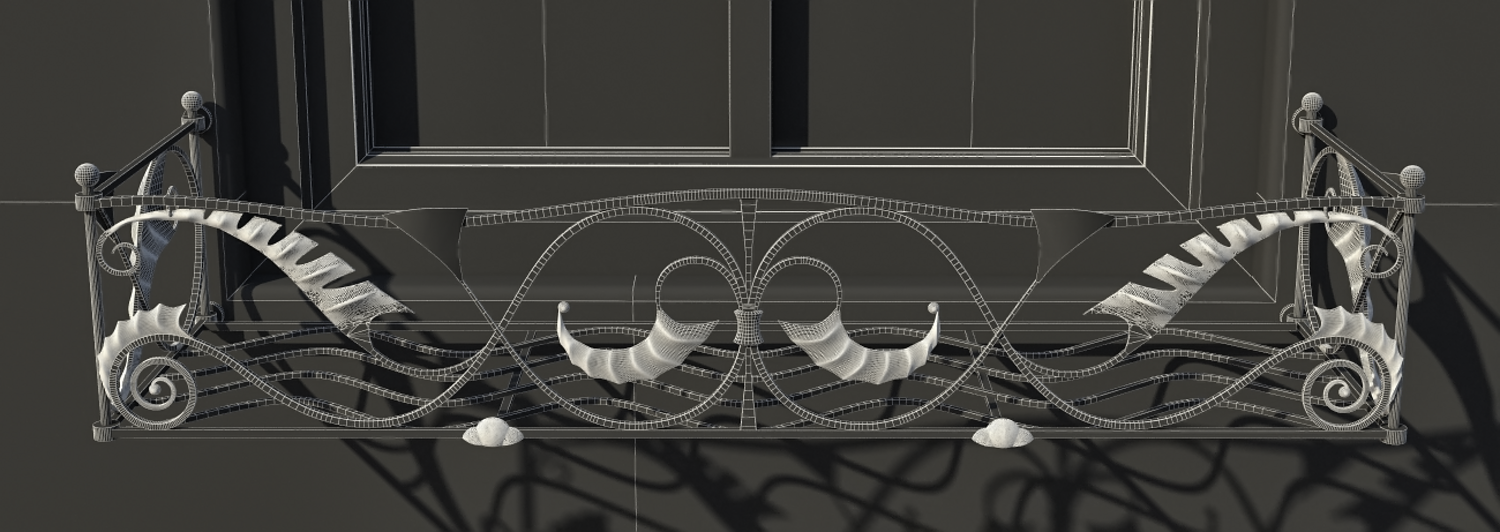 Forged flower stand outside the house window. Stage lighting HDR and VraySun. Program: 3ds Max Design 2013. Plugins: v-ray 2.0, SolidRocks 2.0.5.