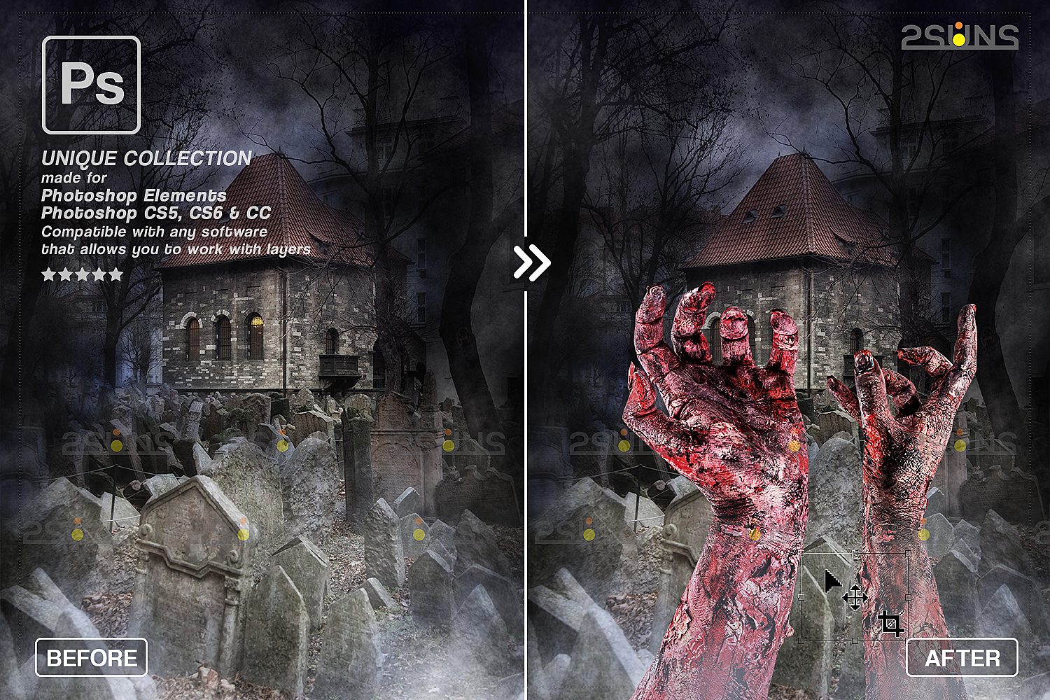 Halloween photo overlay & Halloween clipart: Zombie hands png, horror png overlays, hands clipart/ Zombie clipart, Photoshop overlay ✰Details: 23 Halloween clipart & png overlays pack 300DPI high resolution
