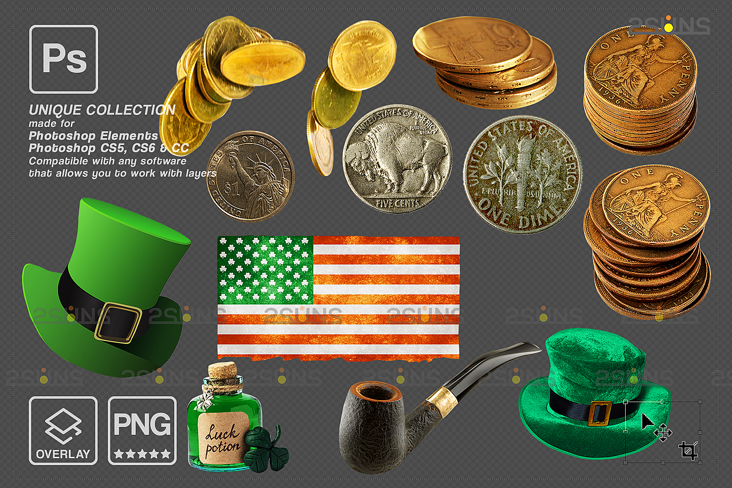 Saint Patricks Day, Photoshop overlay, Green fog overlays, St Patricks photo overlay, coins clipart, coins png, St Patricks rainbow