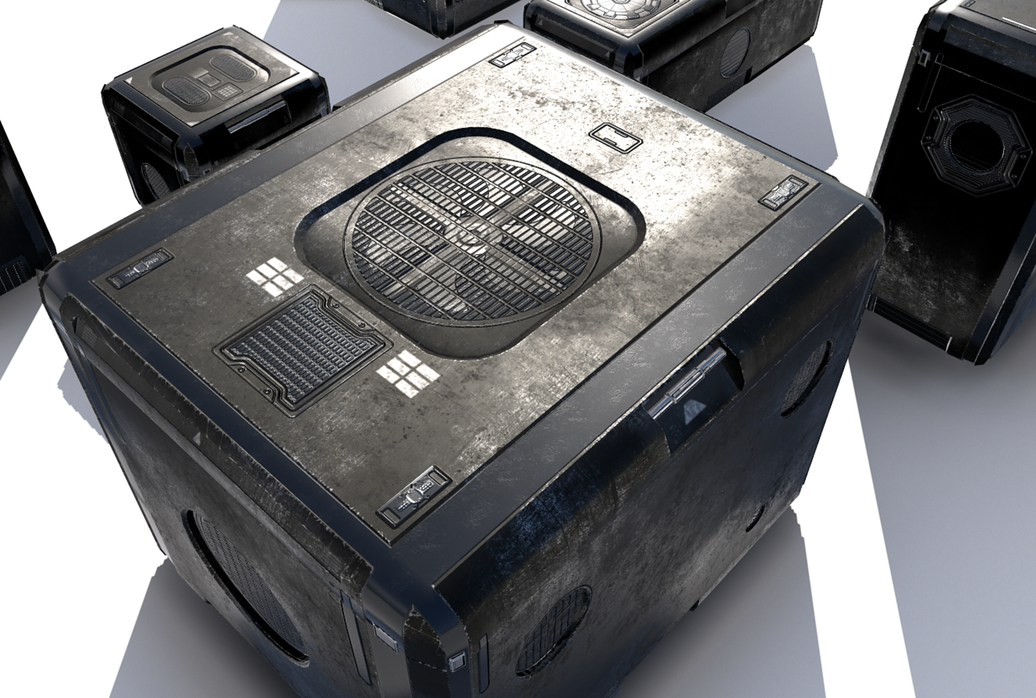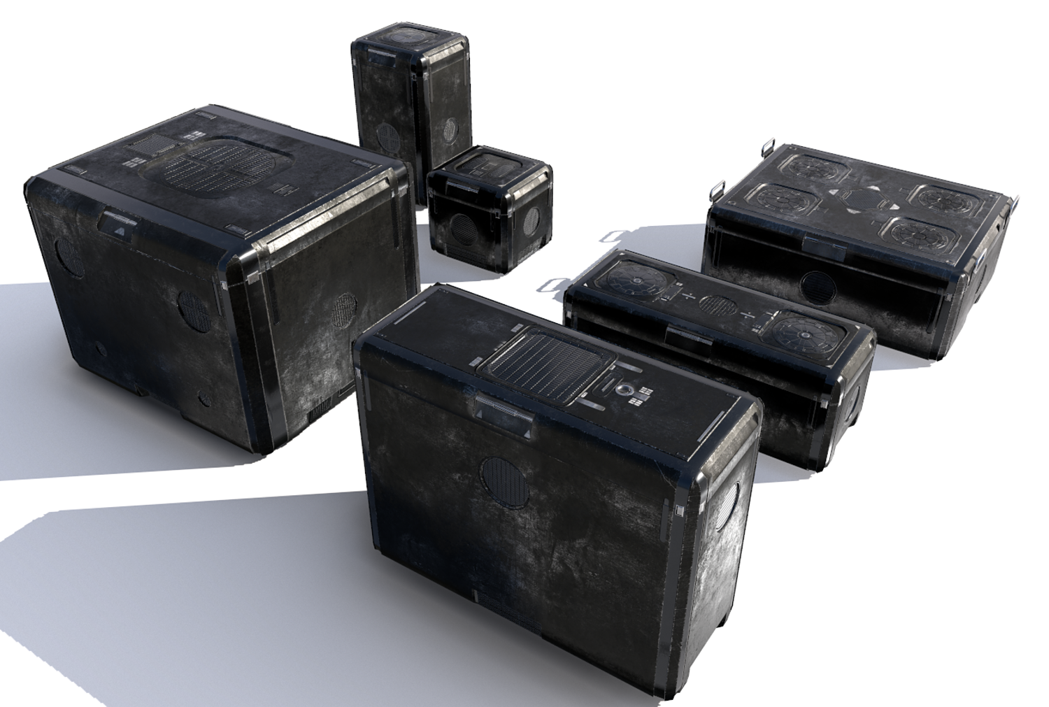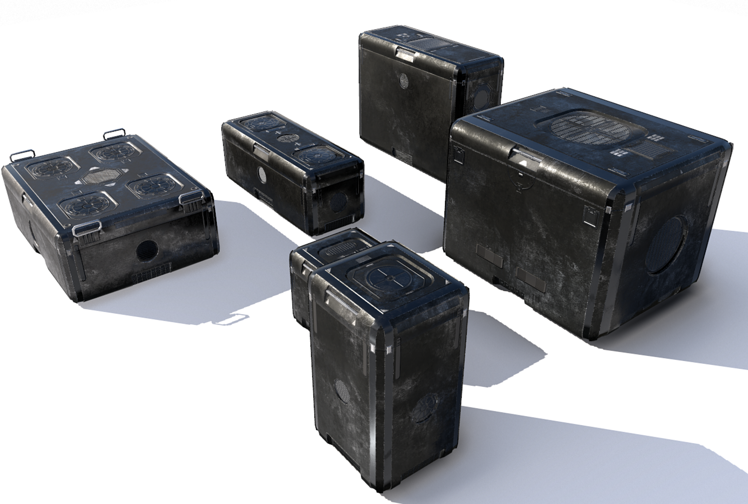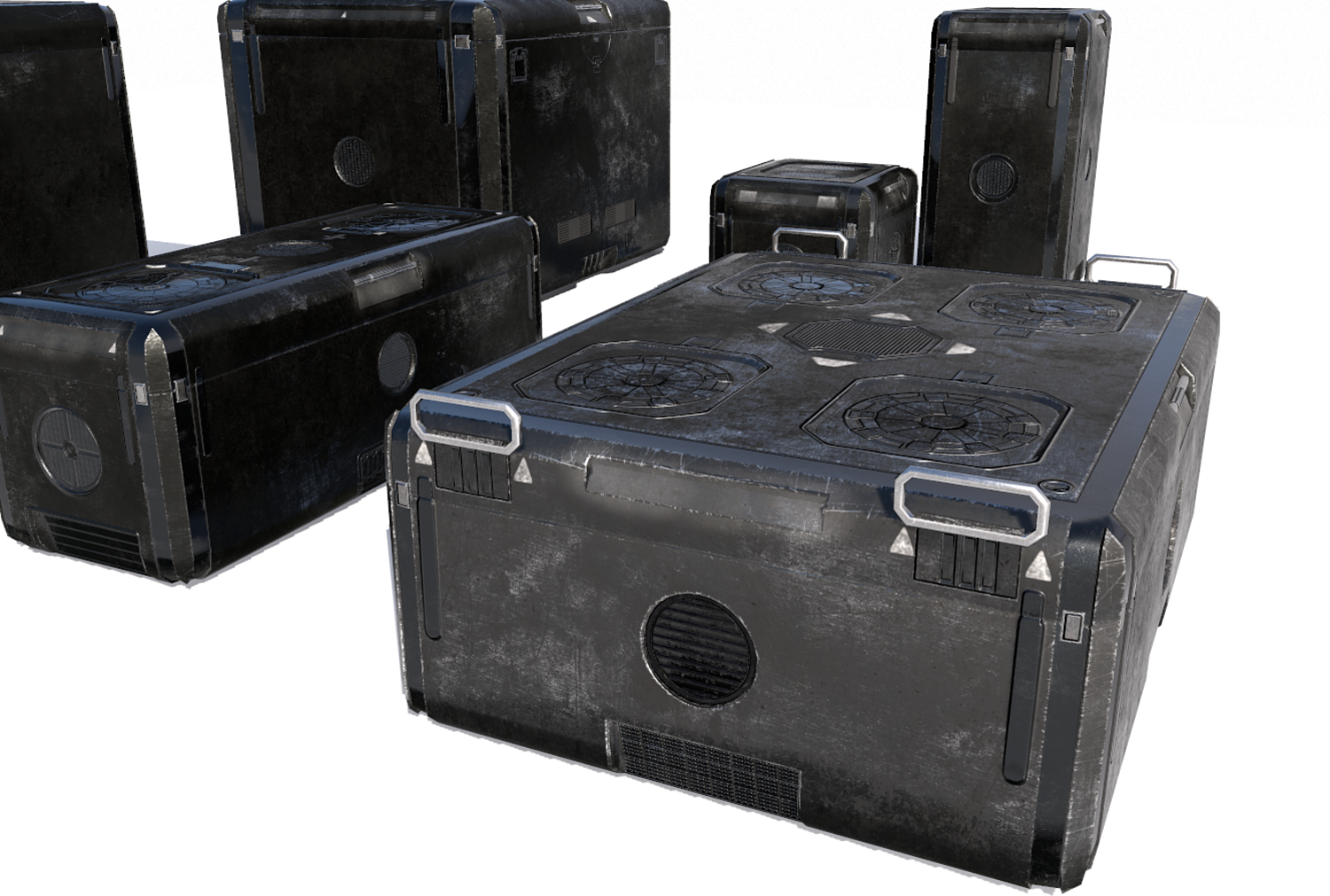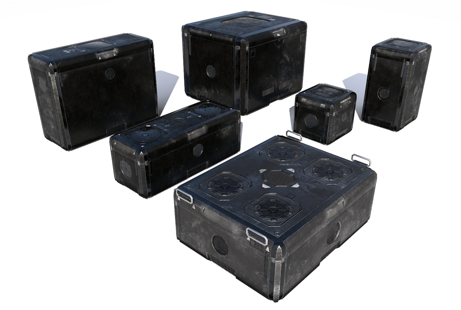 Sci Fi old black cargo crates