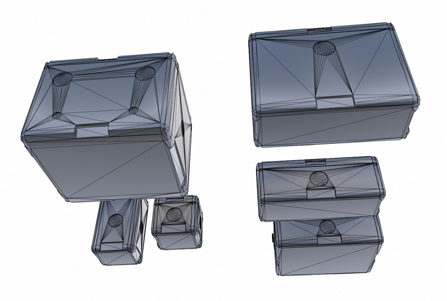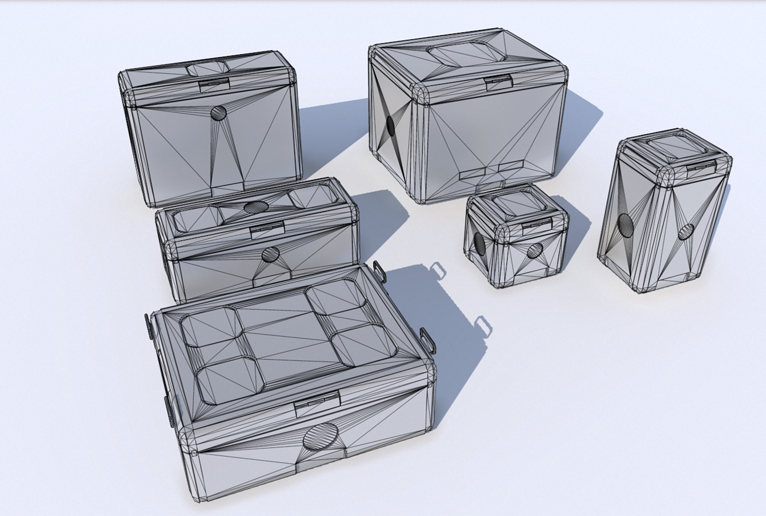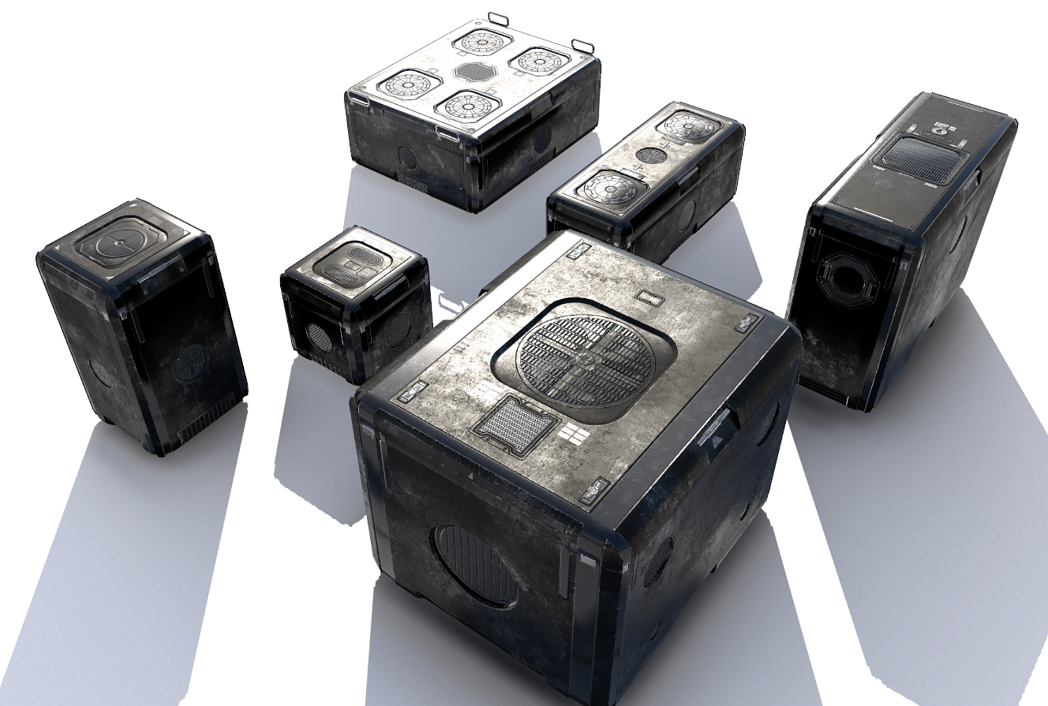 6 Futuristic cargo/storage crate suitable for science fiction or futuristic themes. It comes with 4096pix PBR textures including: Albedo , AO, Displacement , Metalness, Normal, Roughness. Separate meshes included and also all in one file (FBX,3DS,OBJ)