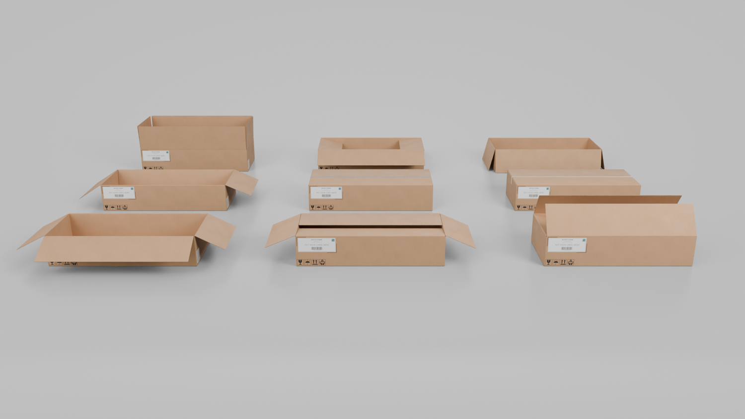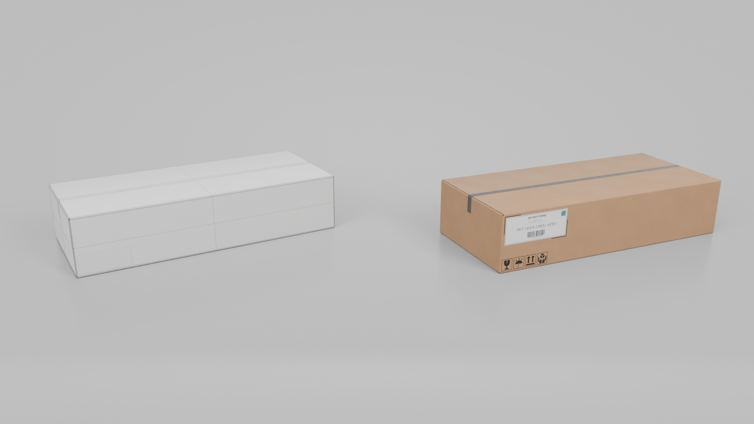 - Realistic Design: It depicts the real-world cardboard box surface look, bumps, and imperfections with the box flutes visible in the sidings of the box.