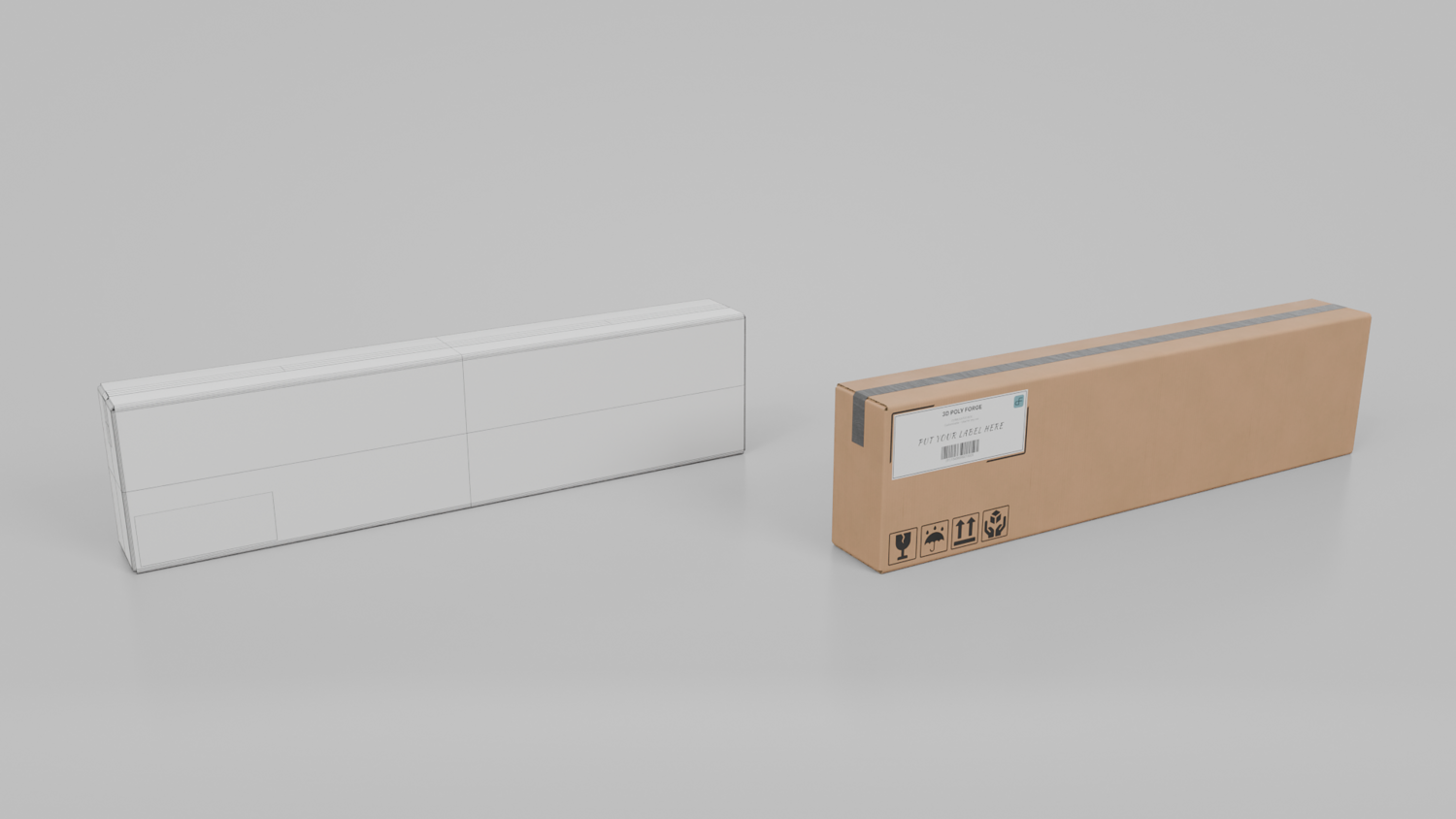 - Materials: It has four separate PBR materials (box, label, duct tape, and clear duct tape), all of which have several resolution options.