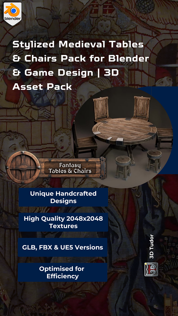 3DT Stylized Medieval Tables & Chairs Pack โ Stylized Game-Ready 3D Asset Pack (Blender, Unity, UE5)