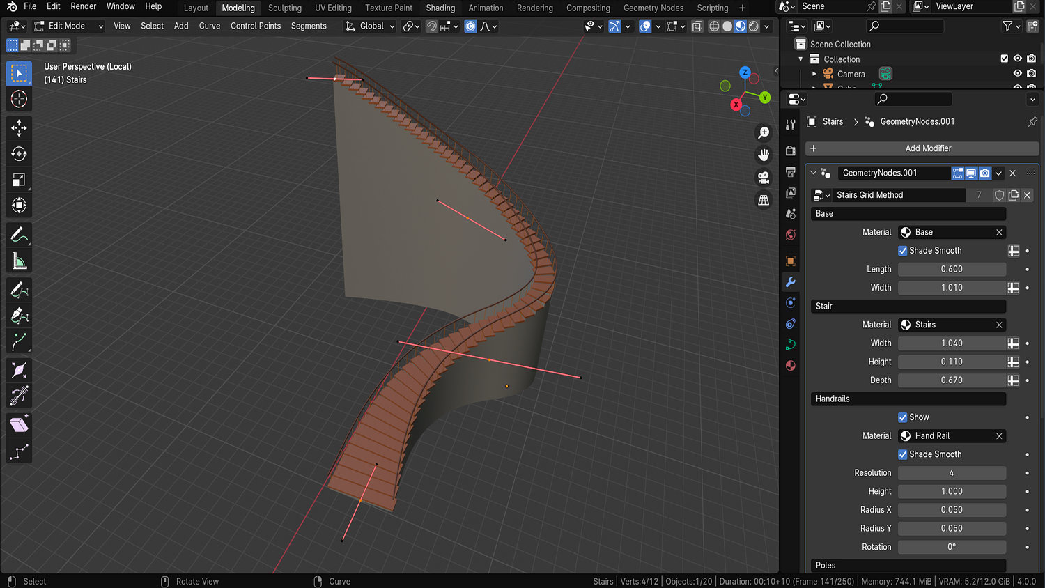 Use paths or bezier curves to create straight, circular, or spiraling staircases with adjustable width, height, materials, base, handrails, and pole frequency. One of the most beginner-friendly yet powerful stair generators available.