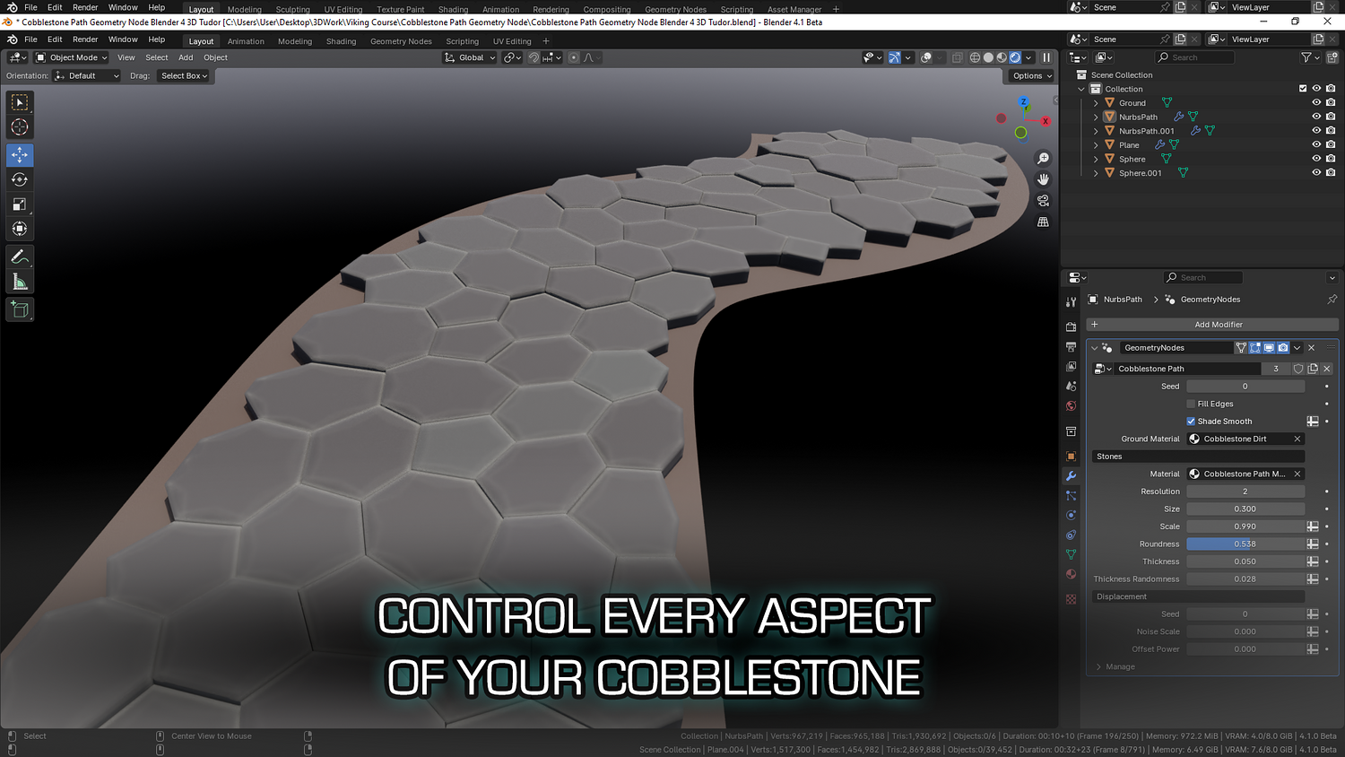 3DT Cobblestone Path Generator – Blender Geometry Node Procedural