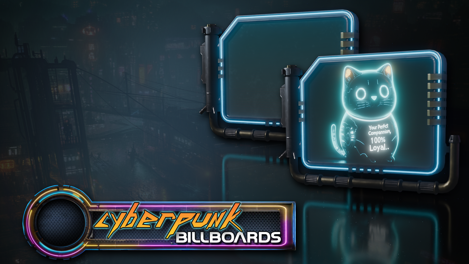 3DT Stylized Cyberpunk Billboard Pack โ Stylized Game-Ready 3D Asset Pack (Blender, Unity, UE5, Godot)