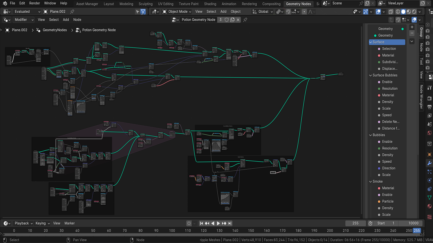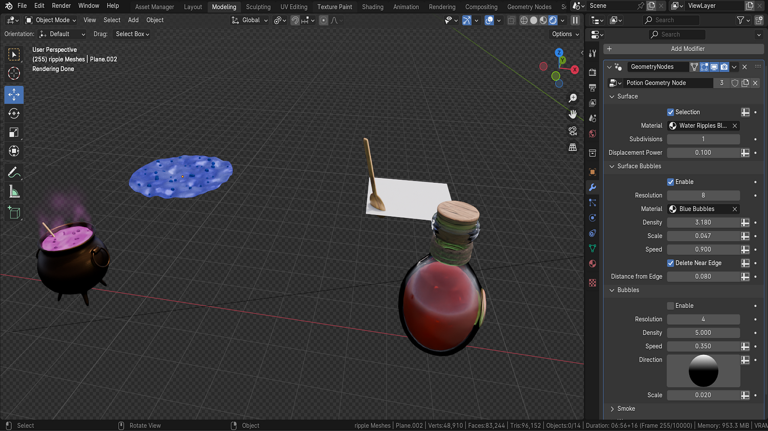 Designed for Blender 4.0+, this all-in-one geometry node setup lets you instantly create animated potions, bubbling cauldrons, magic spells, and ripple effects with real-time control — ideal for games, cinematics, and fantasy concept art.