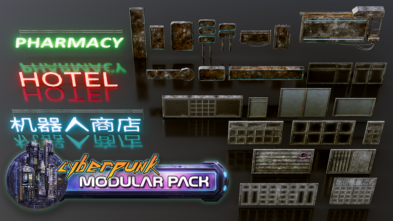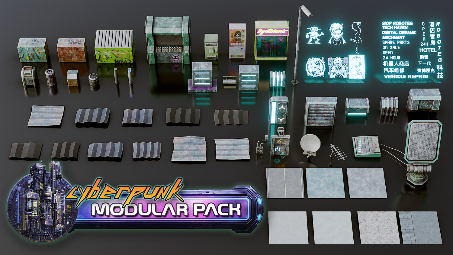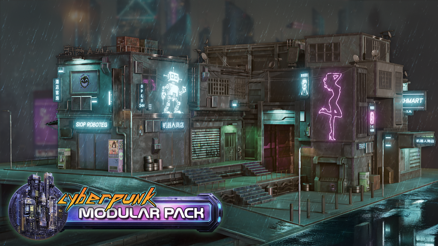 3DT Cyberpunk Downtown โ Stylized Modular Kitbash Pack